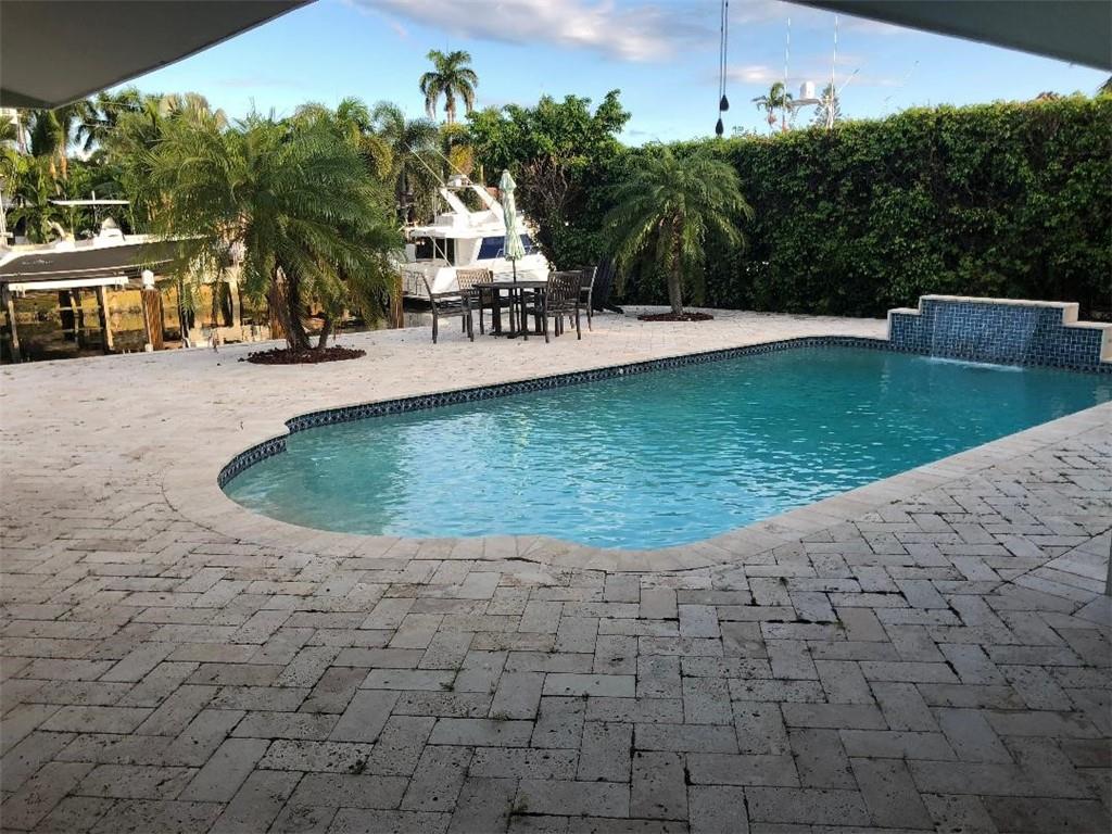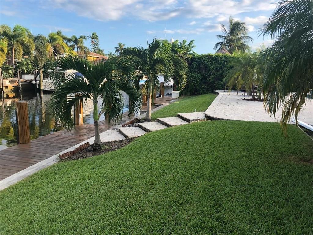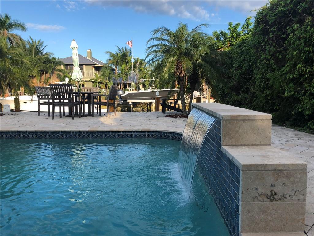 BRAND NEW ROOF completed Sept 2018-after 6 mos of waiting on tile, we now have a new roof ready for your buyer!! 4/3 Impact Doors and Windows Large kitchen w/ granite counters, movable center island, stainless steel appliances and pass through bar to pool and patio, Split bedrooms, tile and wood flooring, large laundry room, cabana bath, expansive patio for outdoor tropical entertaining overlooking 80 ft of dockage and heated pool with waterfall feature, sky high hedges on both sides of property for complete privacy from neighbors at this prime cul-de-sac location- water and electric at dock will accommodate a very large boat - water depth at dock is already good and deep EAST EXPOSURE