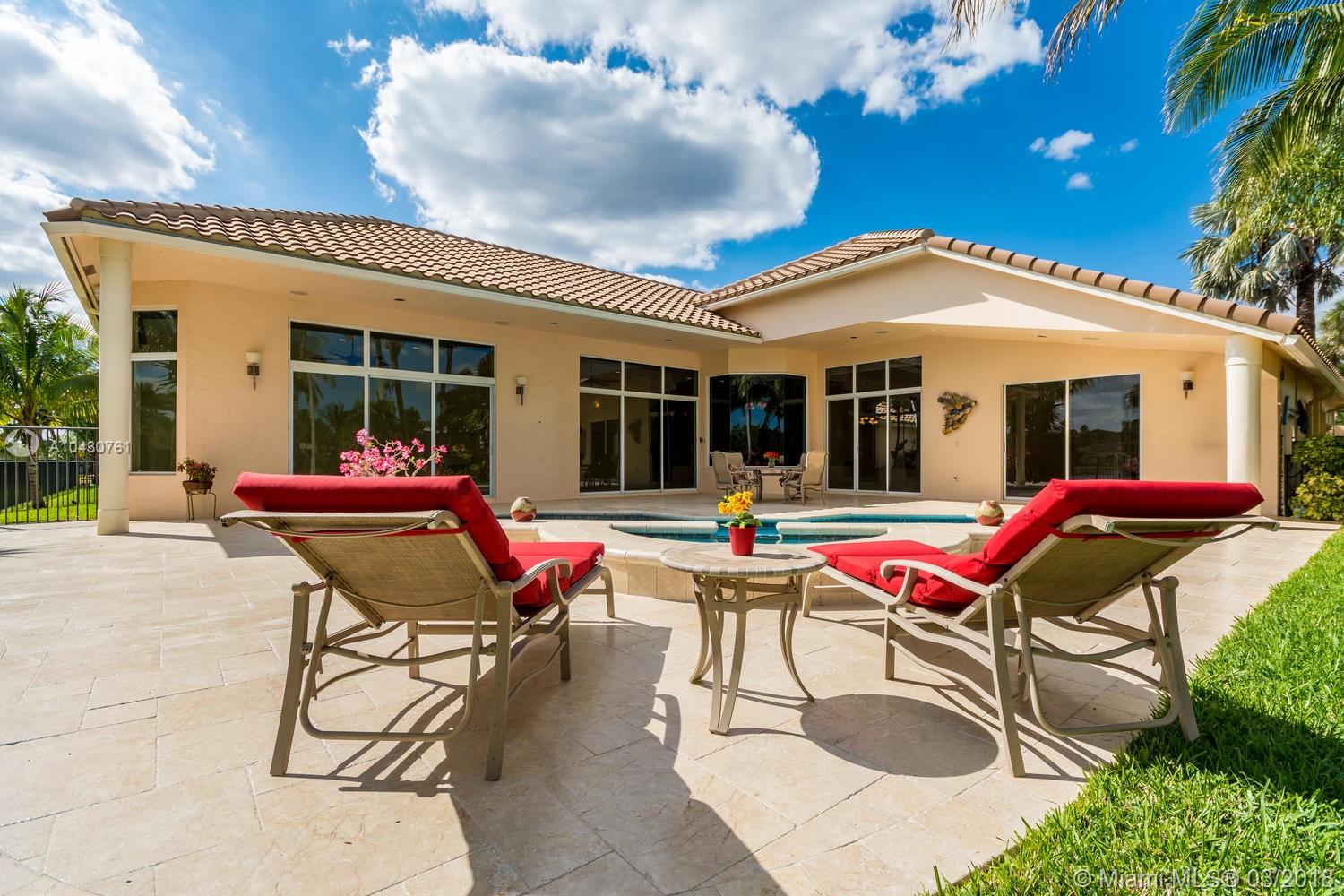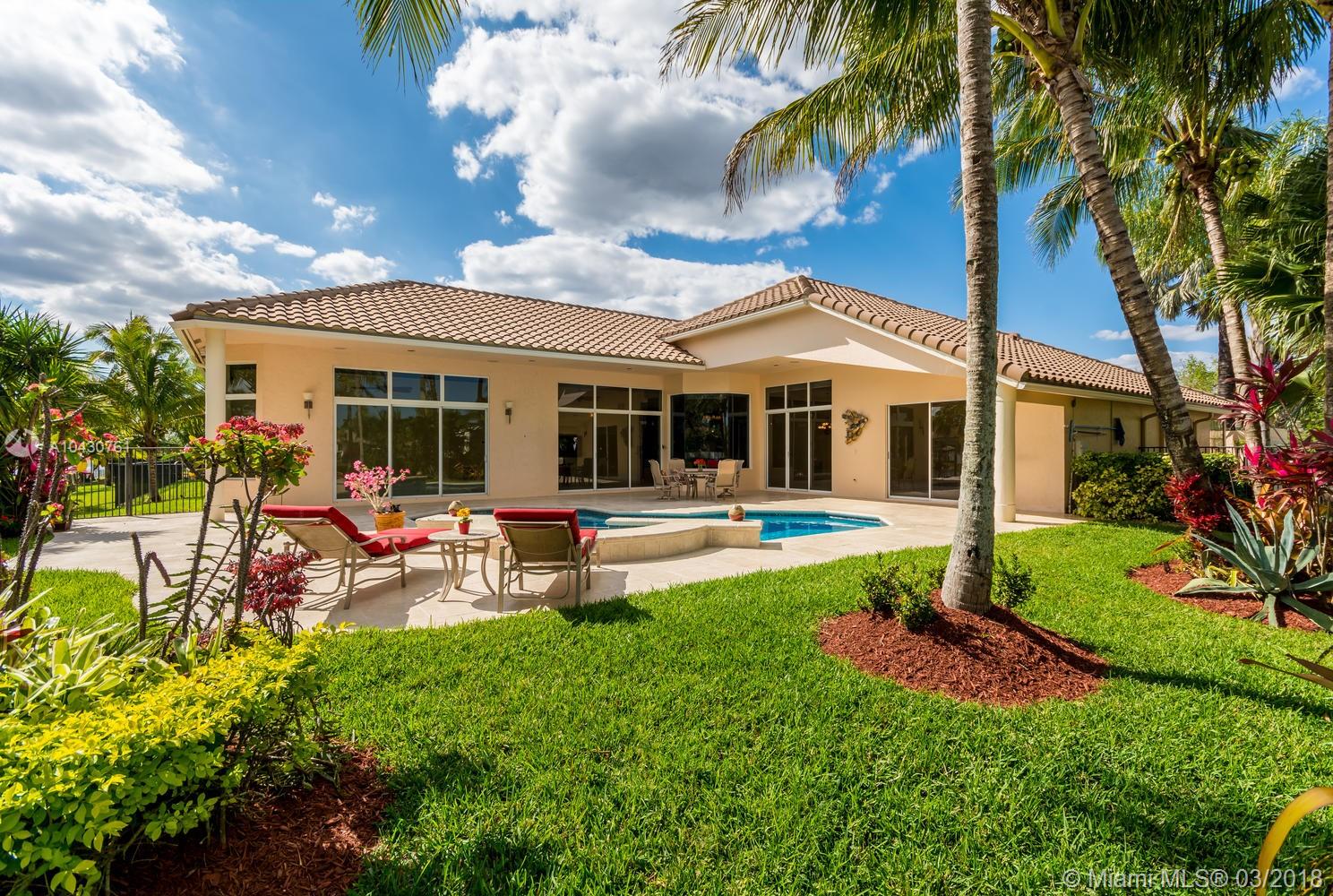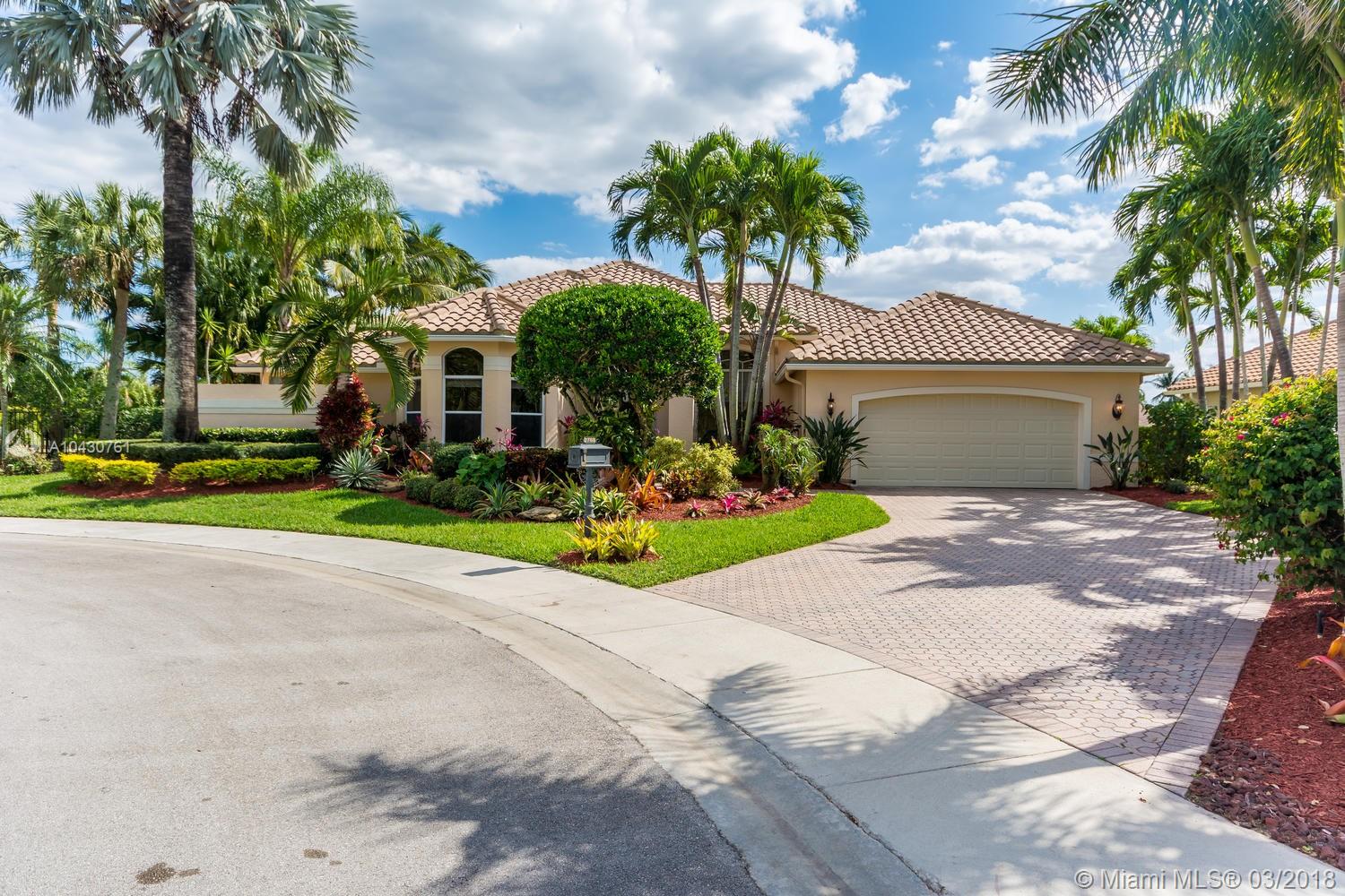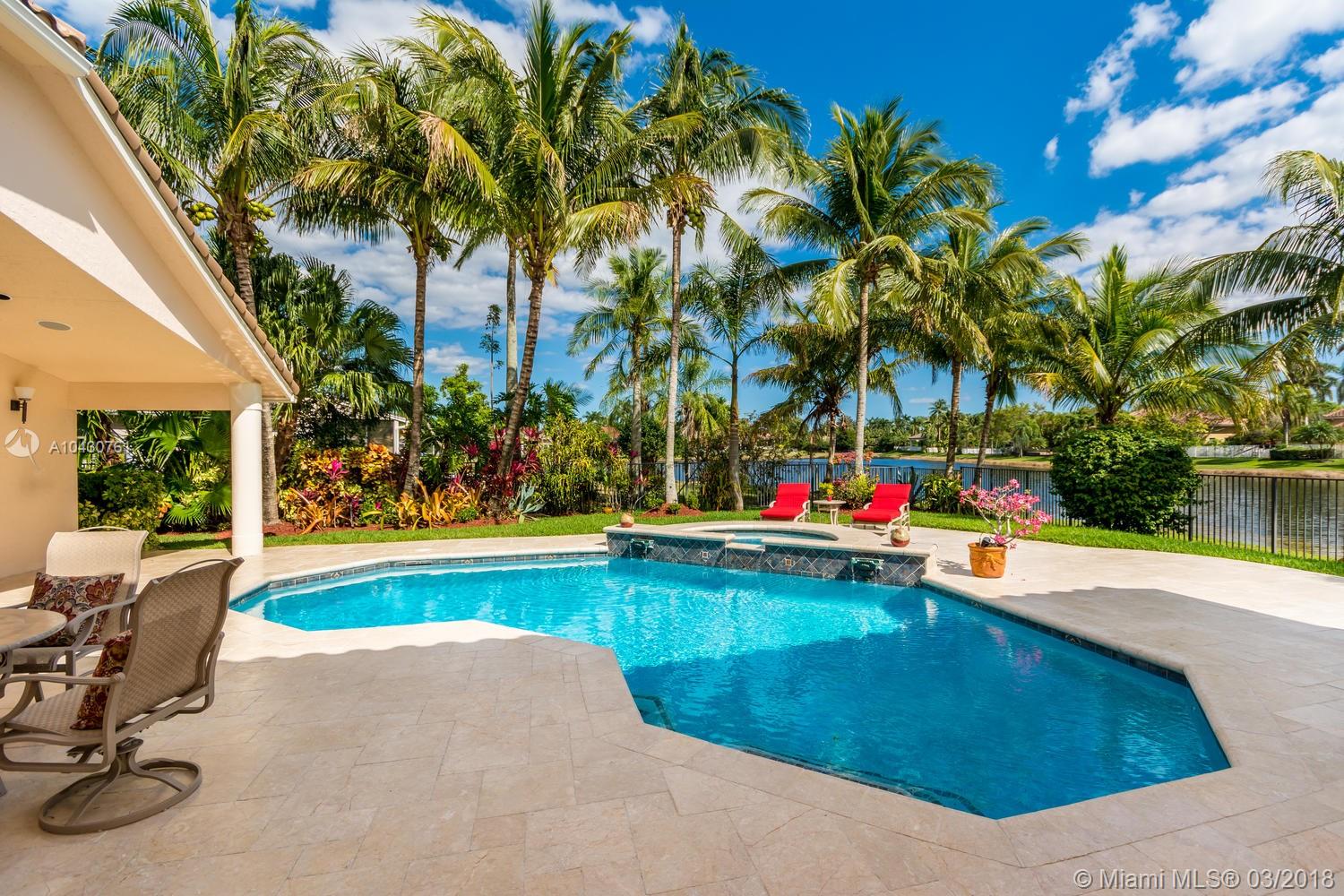 Tastefully upgraded, executive home nestled in the heart of Weston Hills Country Club, featuring a private cul-de-sac location with the best 270-degree water view in the community. Enjoy the mesmerizing sunrise & moon rise from the stunning pool area, boasting a salt pool with French marble designed deck surrounded by lush tropical landscape.This serene oasis features all common areas finished with Jerusalem stone. You will spend many cherished moments preparing gourmet meals in this chef’s kitchen. This home offers many spectacular upgrades including, but not limited to, motorized blinds, piano/pool room, impact windows & doors, master bath adorned with marble and onyx, wood flooring in all the bedrooms and library and a newer roof. Excellent school district & easy access to highways.