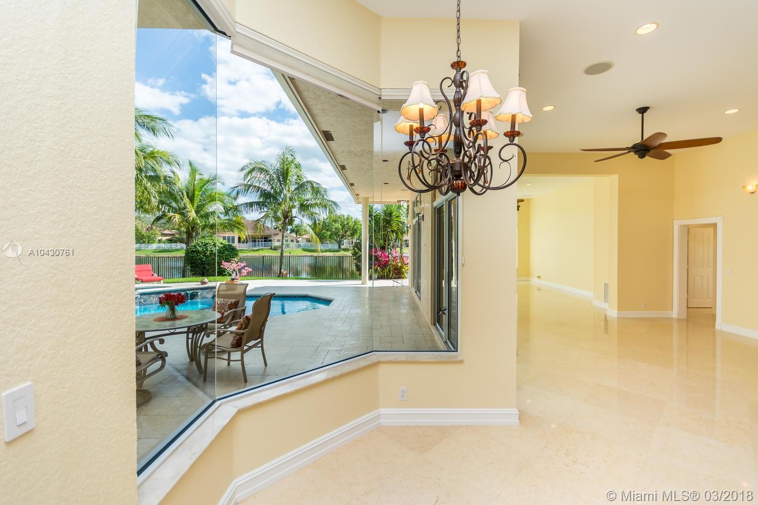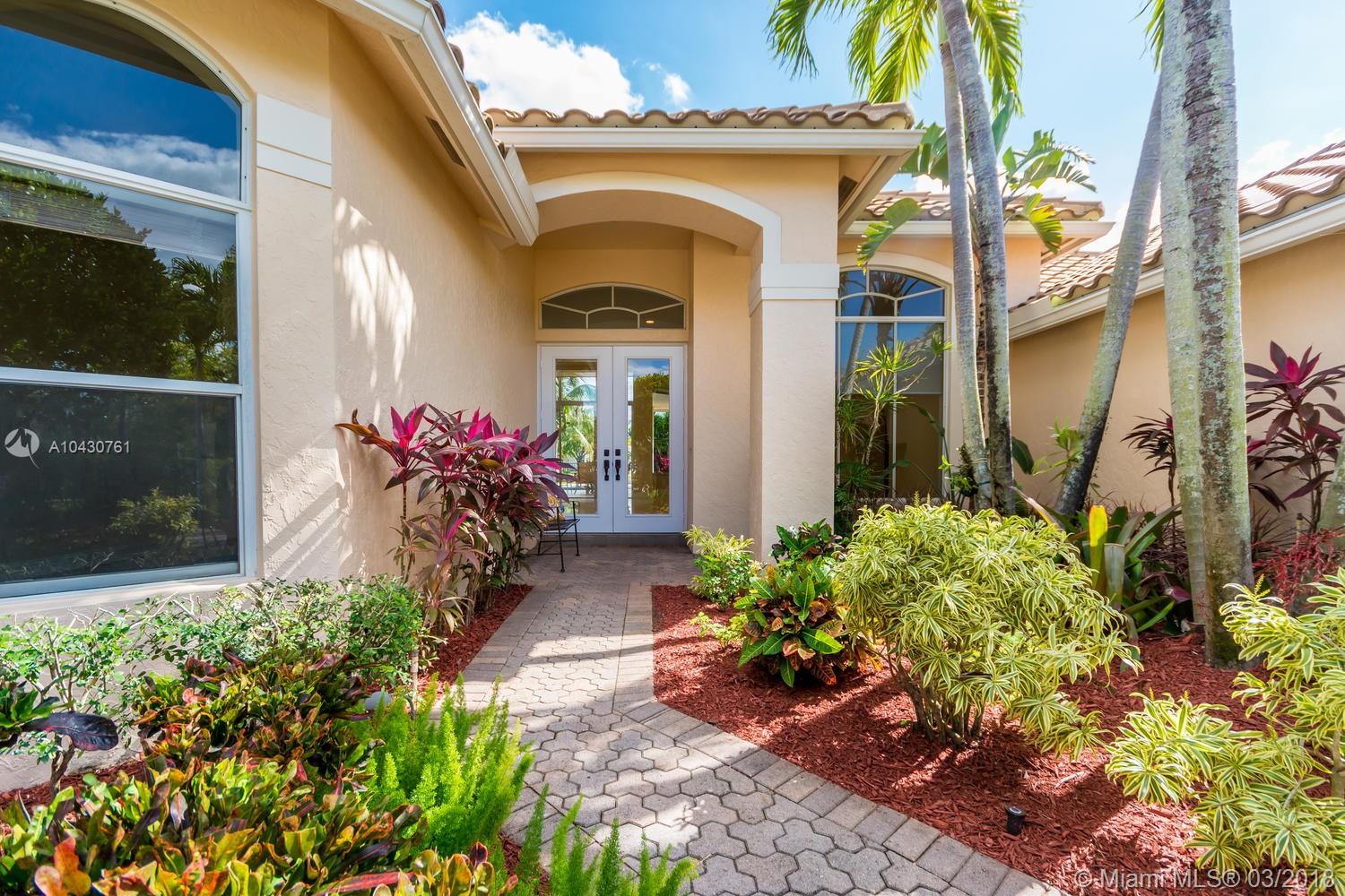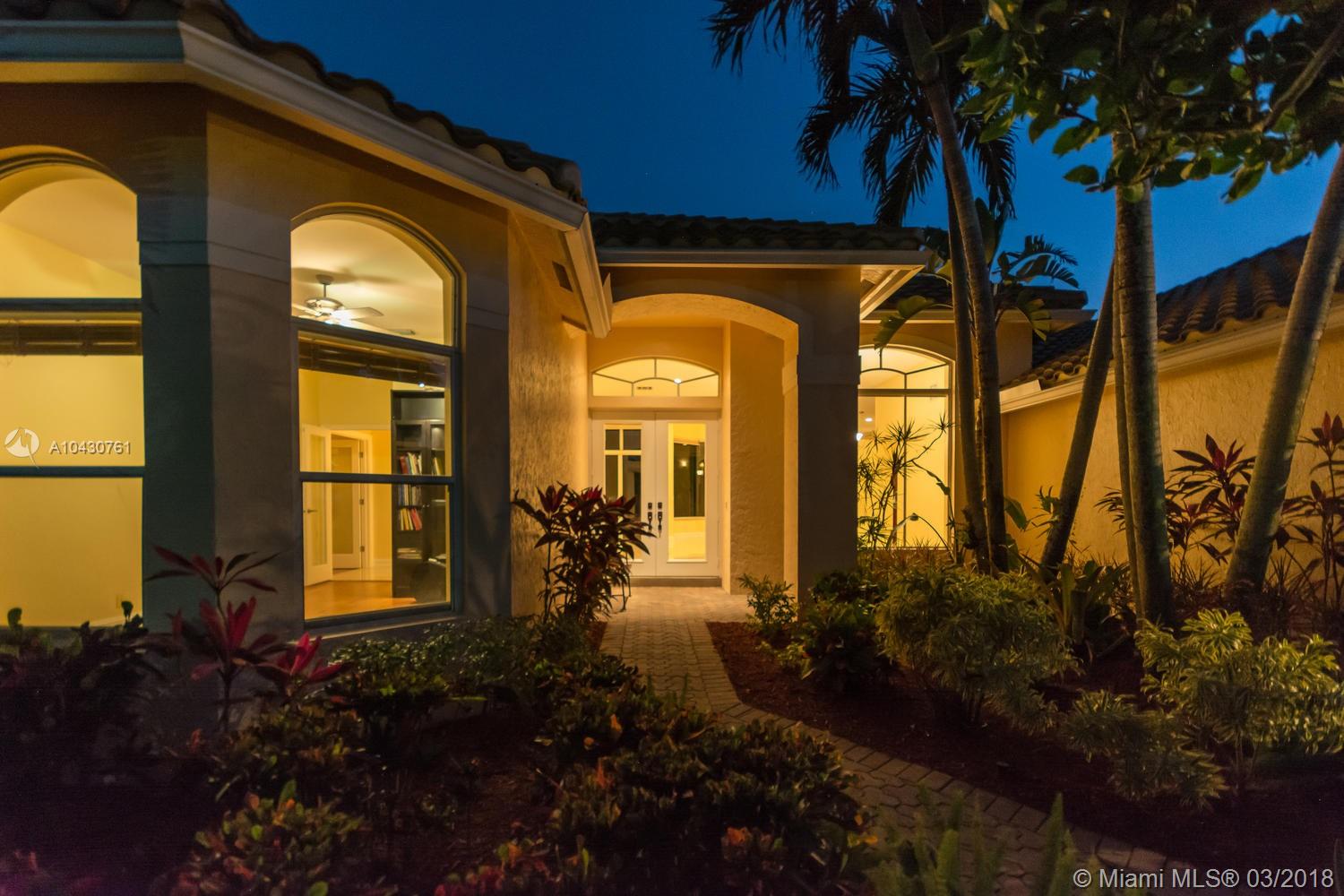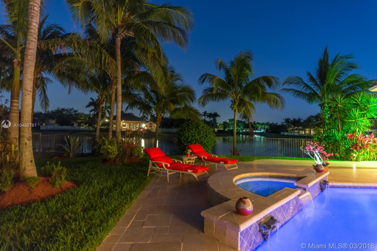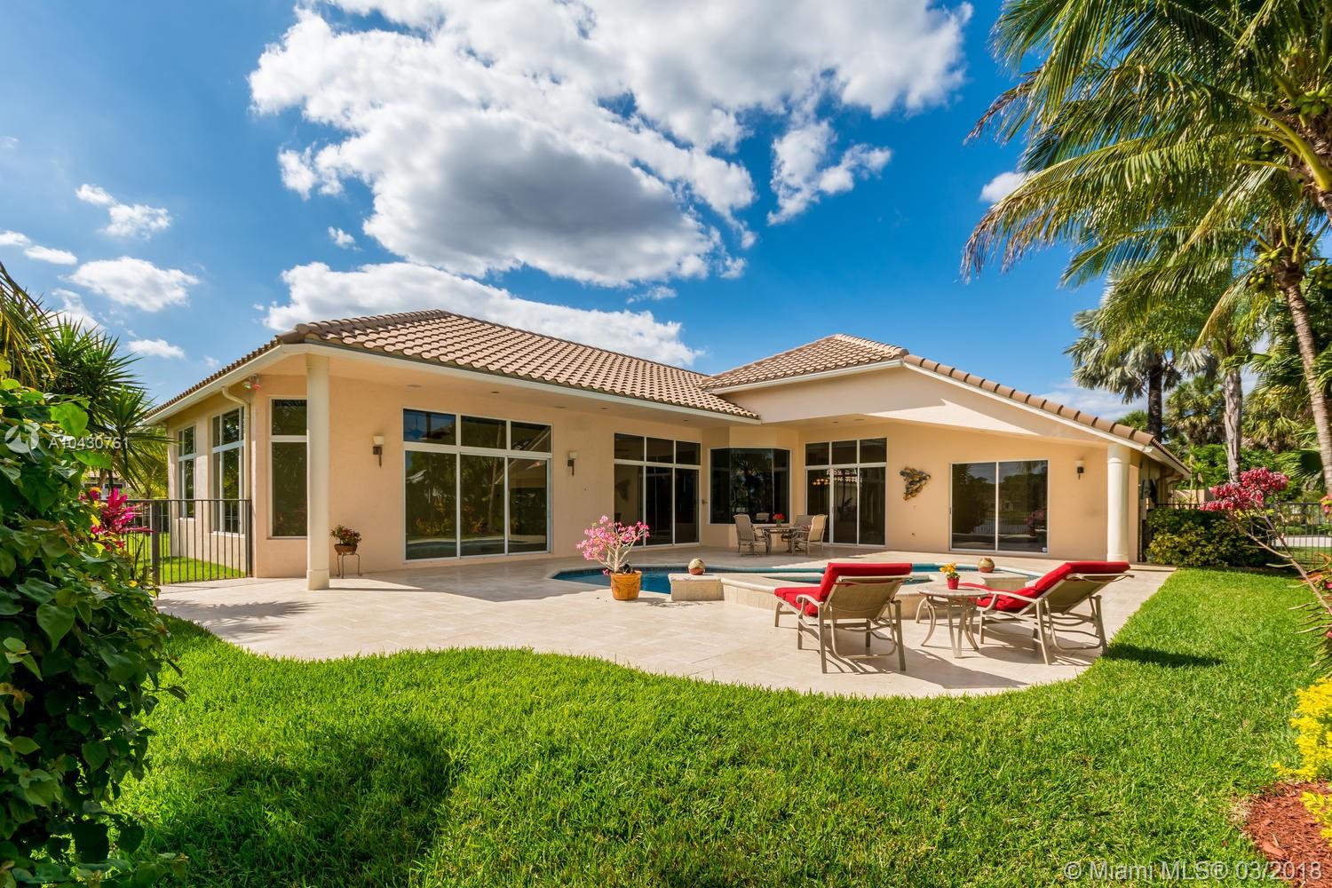 Tastefully upgraded, executive home nestled in the heart of Weston Hills Country Club, featuring a private cul-de-sac location with the best 270-degree water view in the community. Enjoy the mesmerizing sunrise & moon rise from the stunning pool area, boasting a salt pool with French marble designed deck surrounded by lush tropical landscape.This serene oasis features all common areas finished with Jerusalem stone. You will spend many cherished moments preparing gourmet meals in this chef’s kitchen. This home offers many spectacular upgrades including, but not limited to, motorized blinds, piano/pool room, impact windows & doors, master bath adorned with marble and onyx, wood flooring in all the bedrooms and library and a newer roof. Excellent school district & easy access to highways.