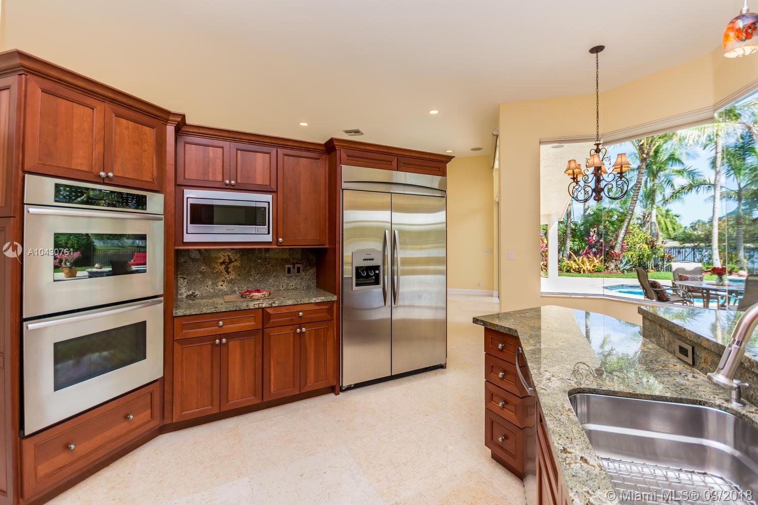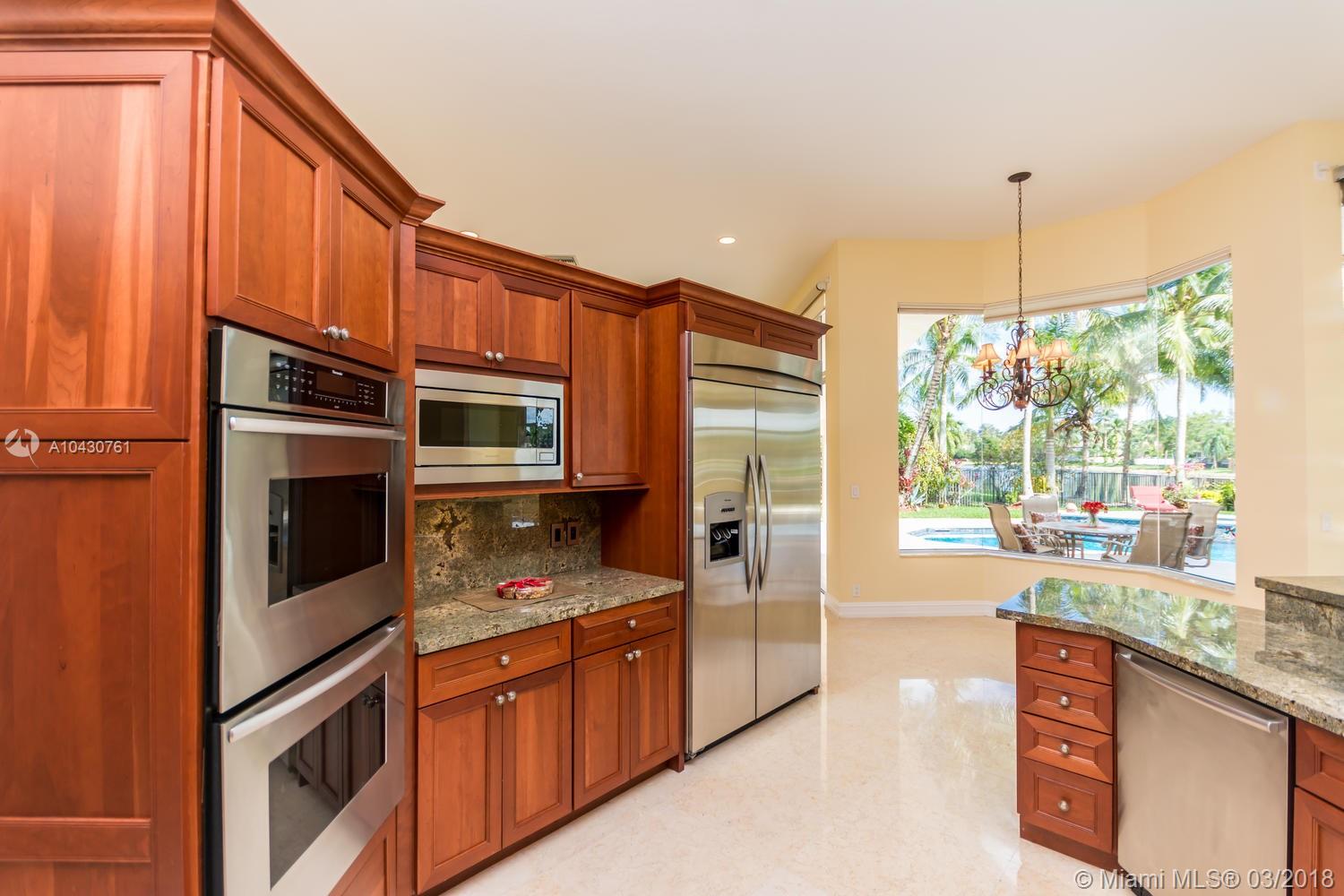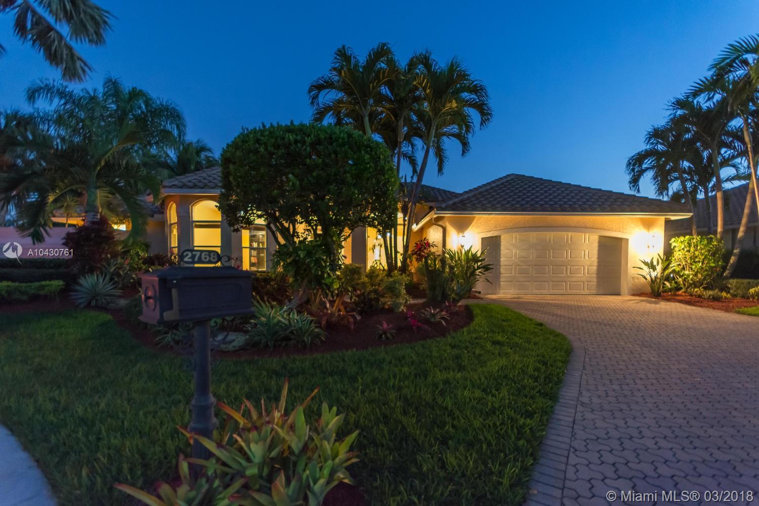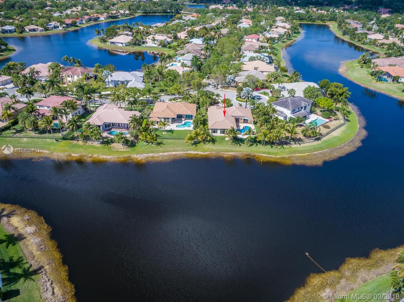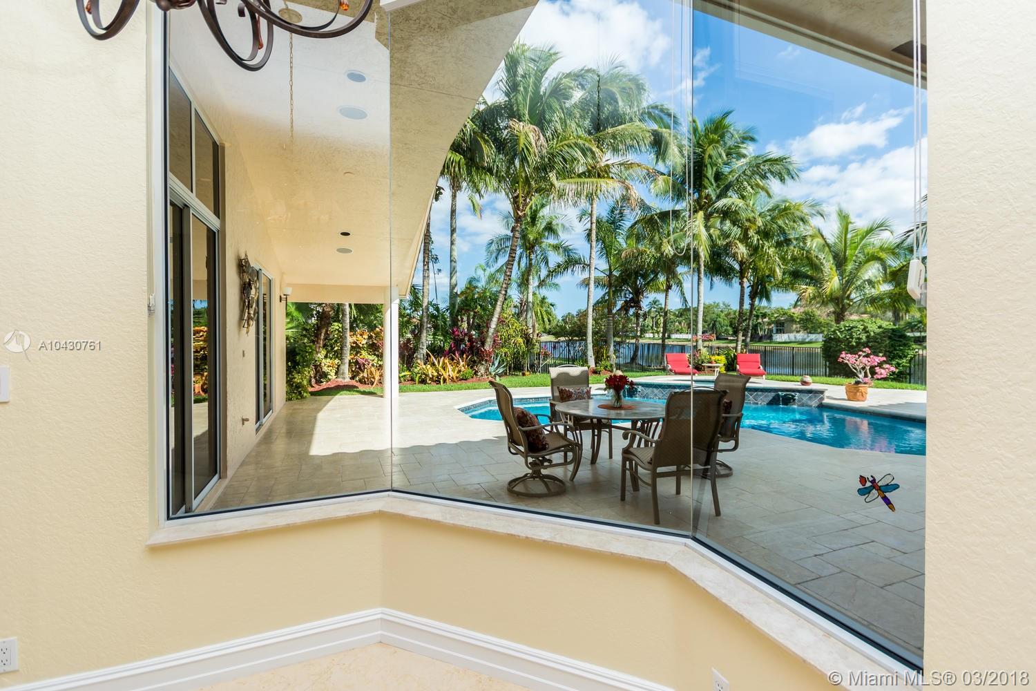 Tastefully upgraded, executive home nestled in the heart of Weston Hills Country Club, featuring a private cul-de-sac location with the best 270-degree water view in the community. Enjoy the mesmerizing sunrise & moon rise from the stunning pool area, boasting a salt pool with French marble designed deck surrounded by lush tropical landscape.This serene oasis features all common areas finished with Jerusalem stone. You will spend many cherished moments preparing gourmet meals in this chef’s kitchen. This home offers many spectacular upgrades including, but not limited to, motorized blinds, piano/pool room, impact windows & doors, master bath adorned with marble and onyx, wood flooring in all the bedrooms and library and a newer roof. Excellent school district & easy access to highways.