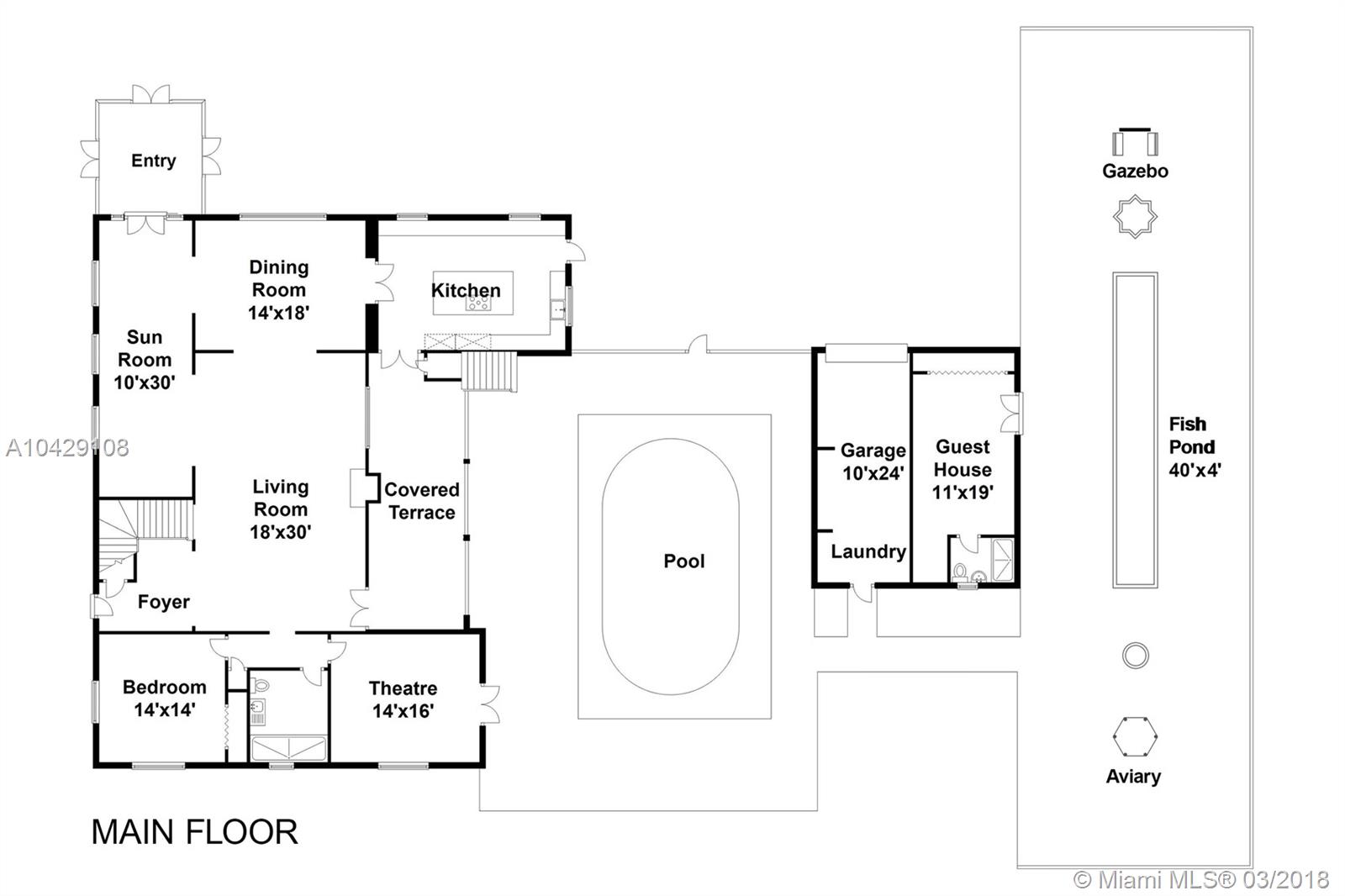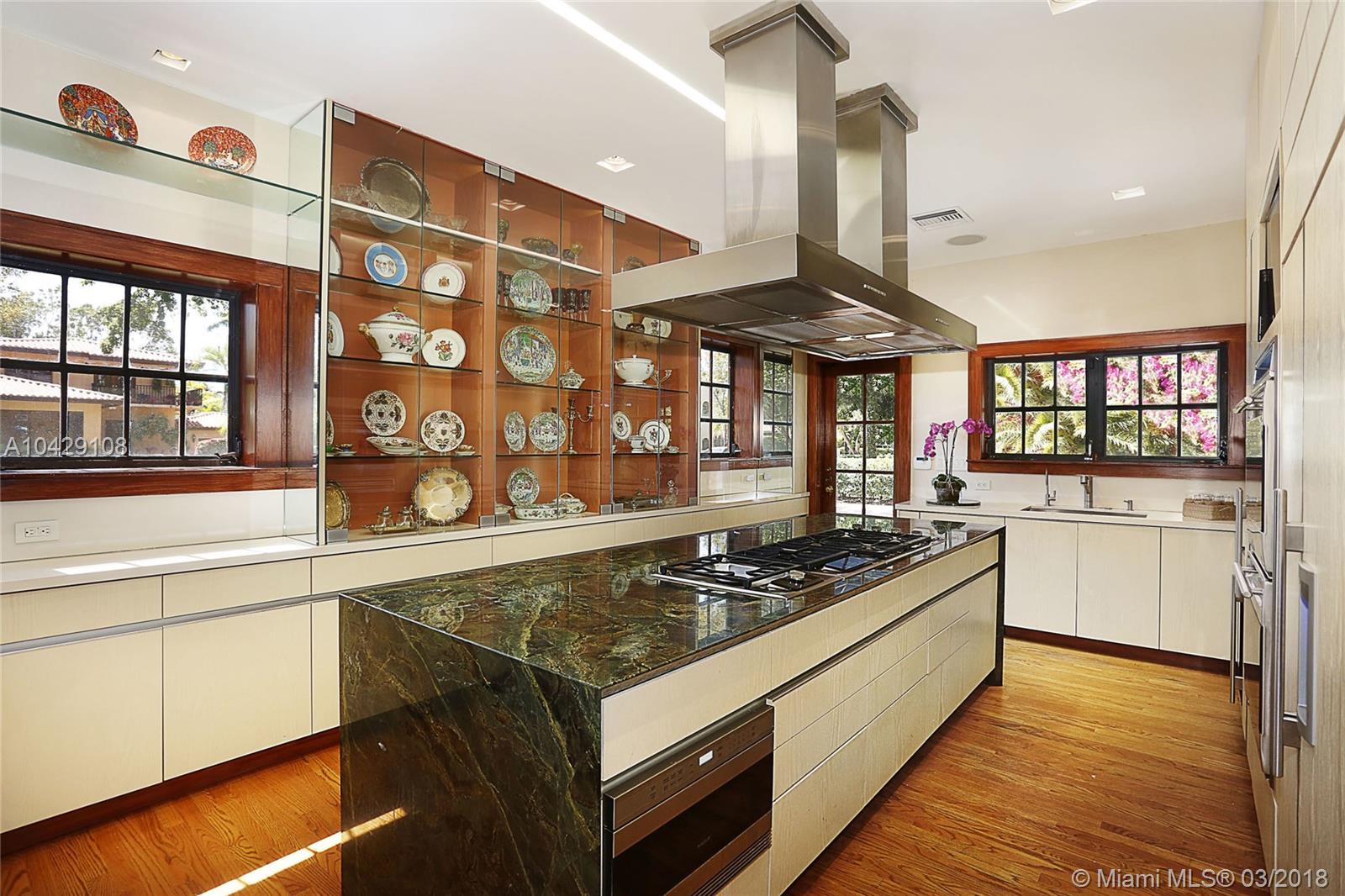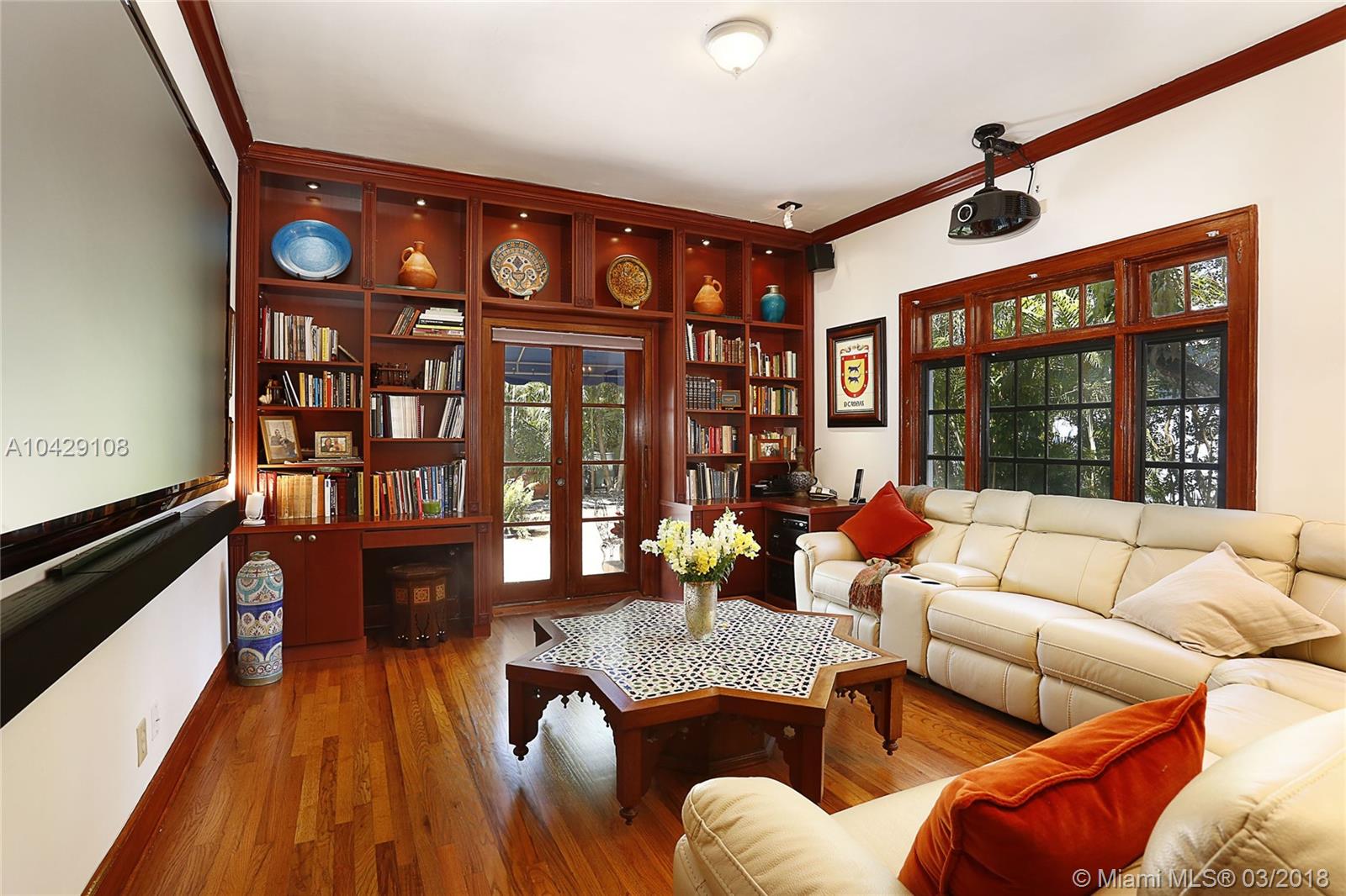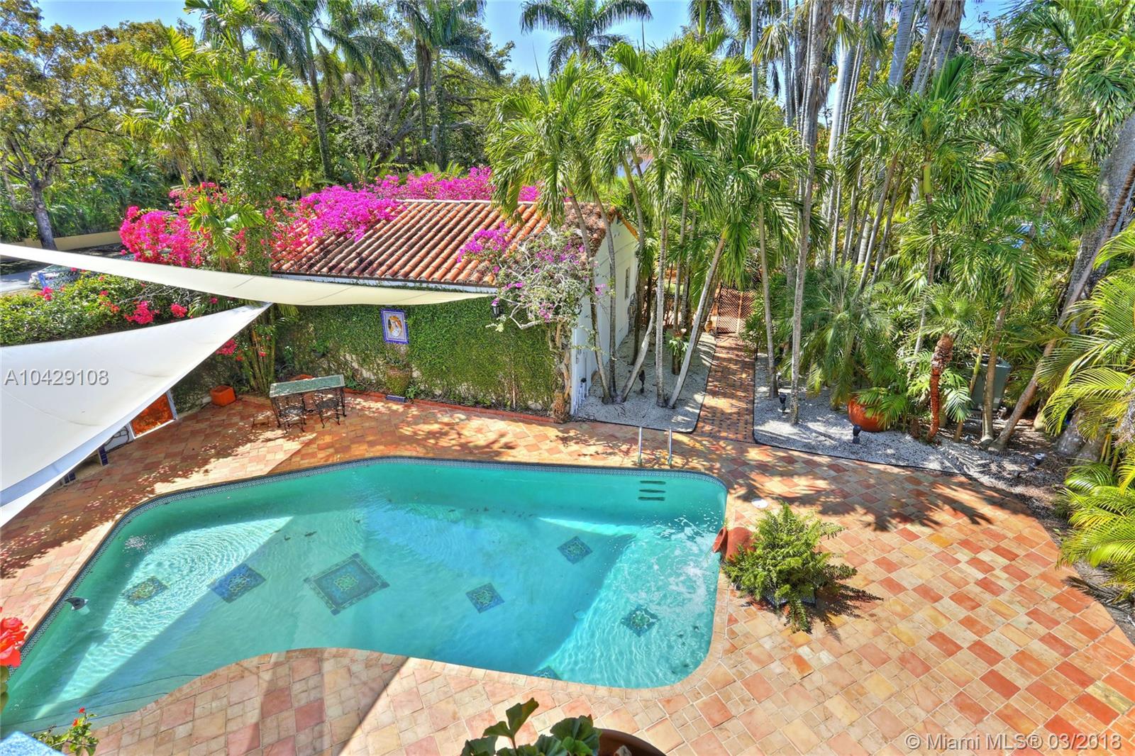Timeless Mediterranean Villa with elegant Moroccan details on a corner half acre. Courtyard entry to the light filled sunroom with arched windows and fountain. Beautiful living room with high beamed ceilings, carved fireplace and adjoining dining room. Staircase with wood scrollwork leads you upstairs. Master suite with fireplace, wood floors, & private terrace with fountain overlooking the pool. Carriage house for guests nested among the award-winning Andalusian garden with pond, gazebo and fountain. Designed by acclaimed pioneering architect Martin Luther Hampton.