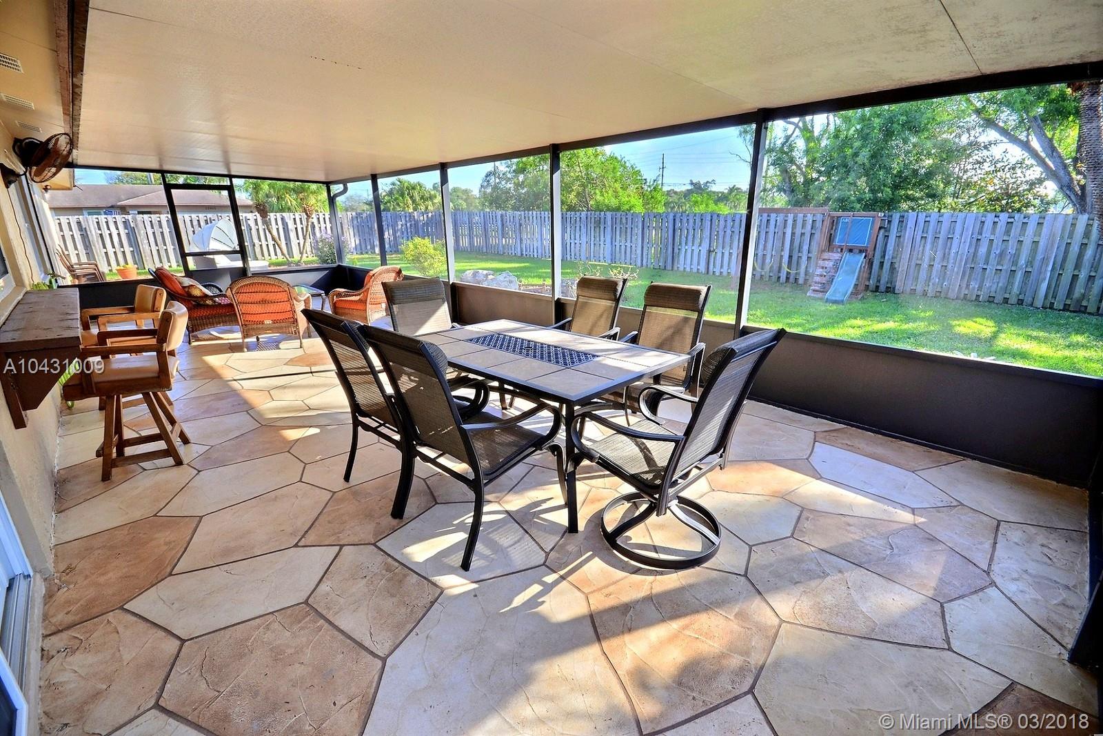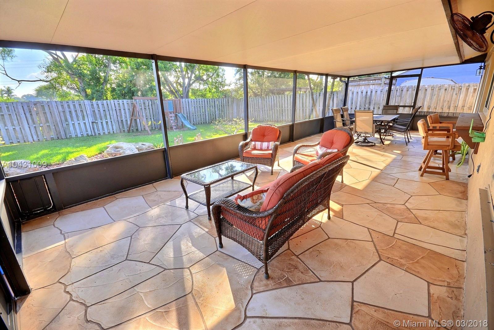 ABSOLUTELY GORGEOUS DAVIE HOME FEATURES OPEN KITCHEN W GRANITE TOPS, LARGE COUNTER & STAINLESS STEEL APPLIANCES. PRETTY TILE FLOORING, TASTEFULLY REMODELED BATHS, SPACIOUS LIVING, FAMILY AND DINING ROOMS GREAT FOR ENTERTAINING ALONG WITH THE AMAZINGLY BEAUTIFUL COVERED & SCREENED PATIO AND LUSCIOUSLY LANDSCAPED YARD. COMPLETELY FENCED PROPERTY. HURRICANE IMPACT WINDOWS THROUGHOUT, BIG LAUNDRY ROOM. STUNNING CURB APPEAL & NO HOA.