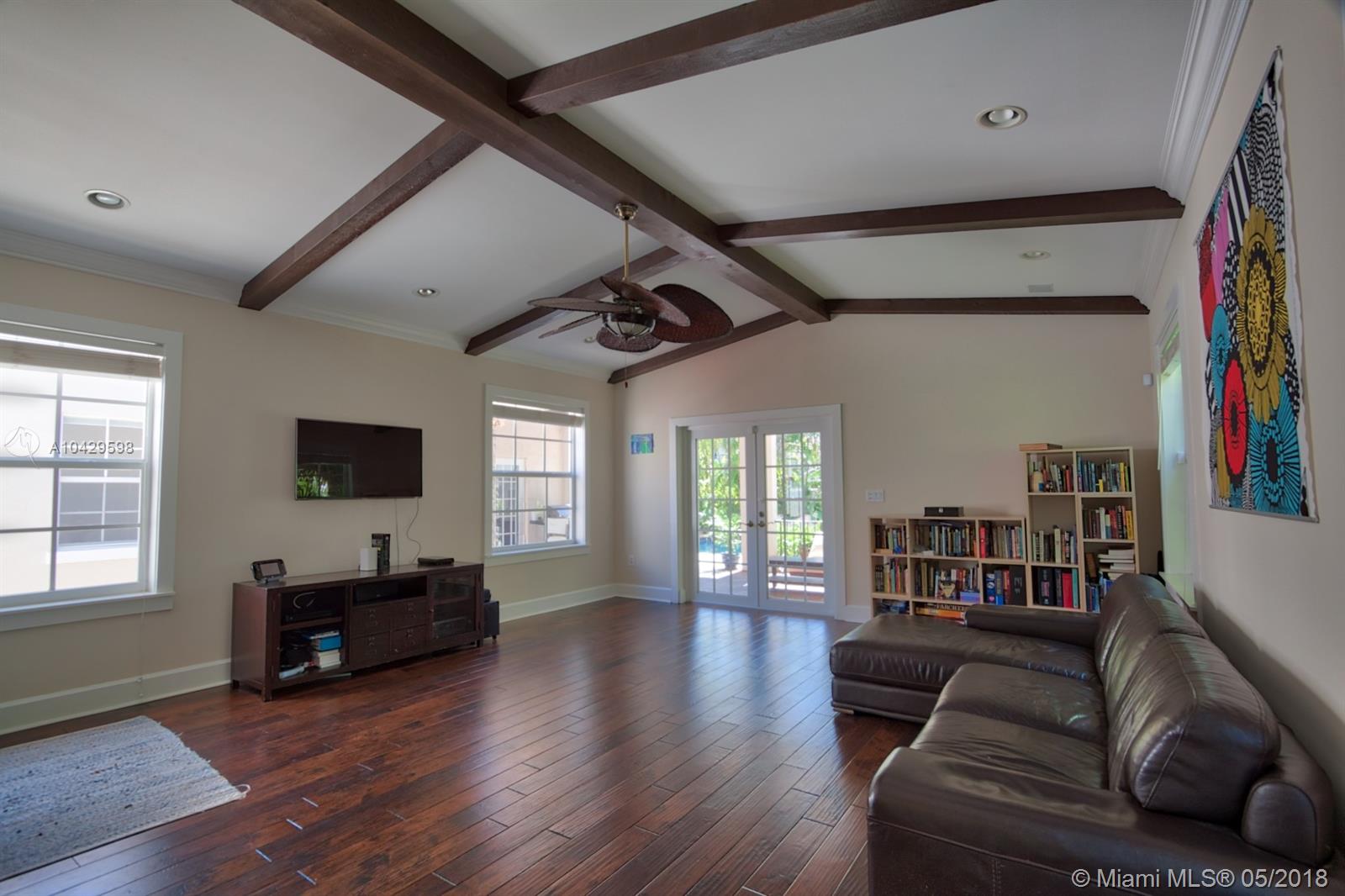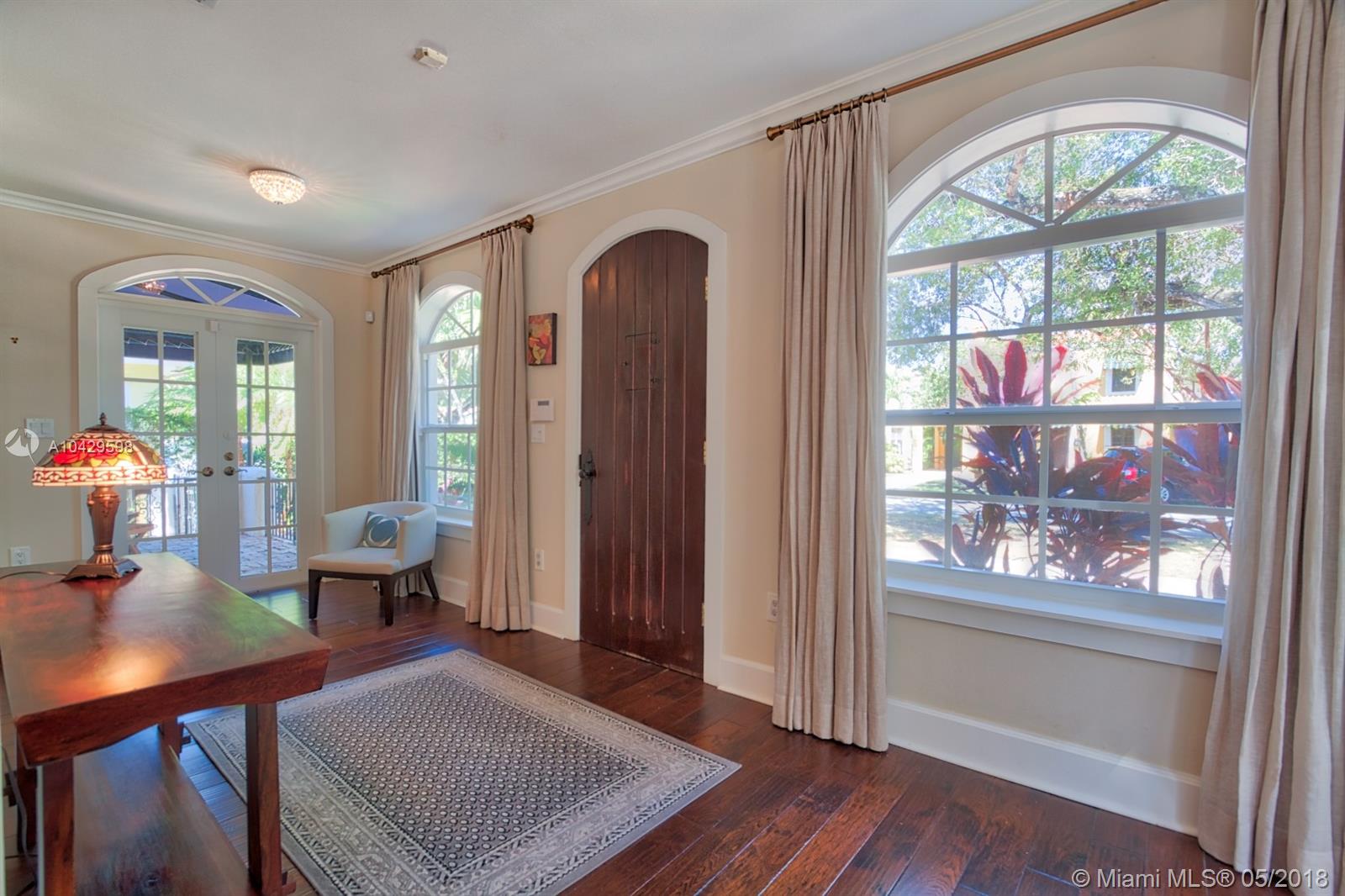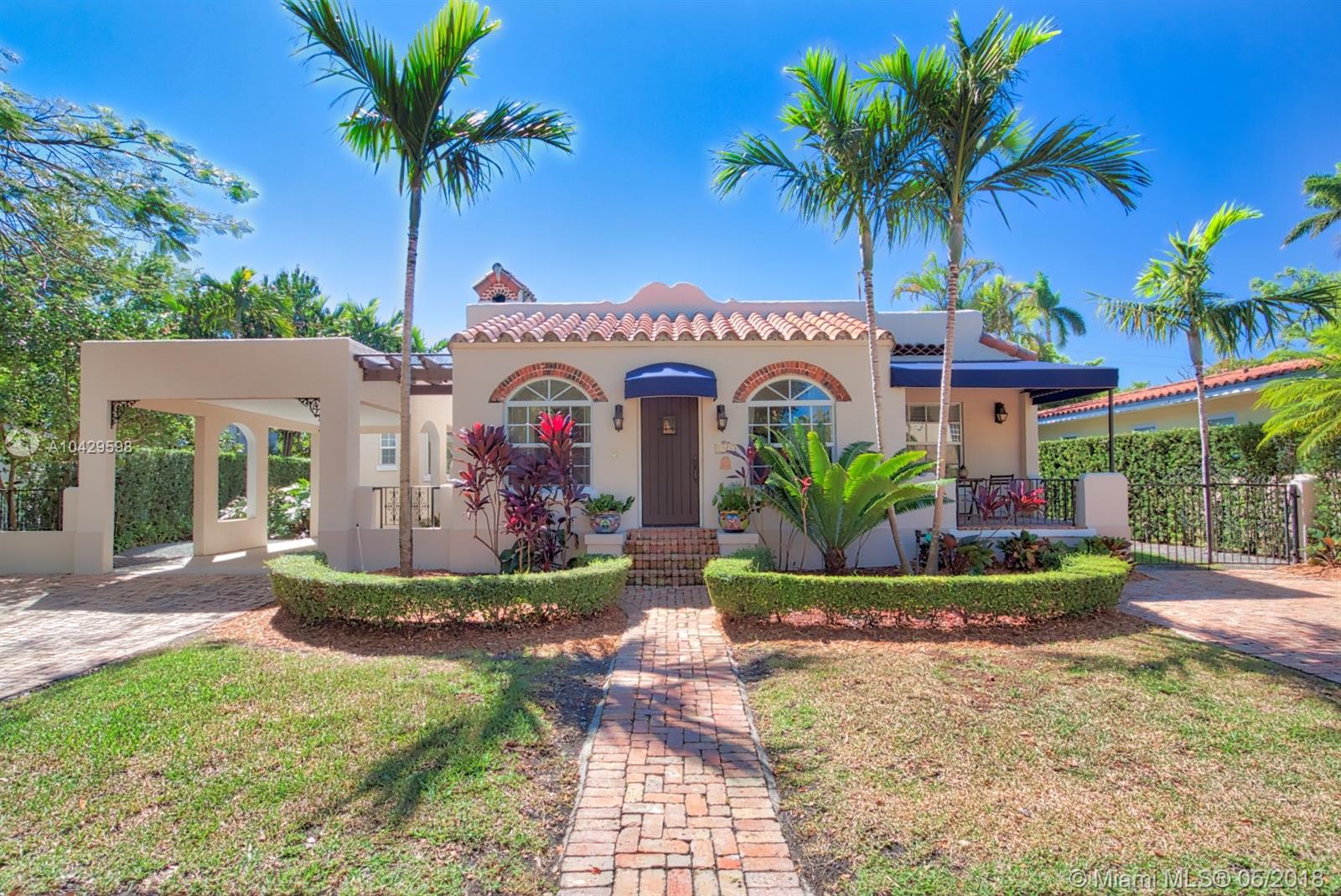 Old world & modern luxury mingle in this Mediterranean Revival gem. Designed by renowned Architect H. George Fink, historic designated in 1997, after major expansion and remodeling. High ceilings of exposed beam featured throughout many rooms, brick accents on arches and chimney and all brick fireplace, wide plank hardwood floors, porches & verandas honor the history of this home. Gourmet kitchen with island, chef grade appliances, formal living, formal dining room, enormous family room flows to covered terrace. House wraps around a courtyard & fountain inspired by southern Spain architecture. Abundant closets, large baths, pool with sheer descent, plus large cabana. Recent re-roof, tented, AC, impact windows/doors. Septic and pool date to 2002. Practical, turnkey and prefect for family!