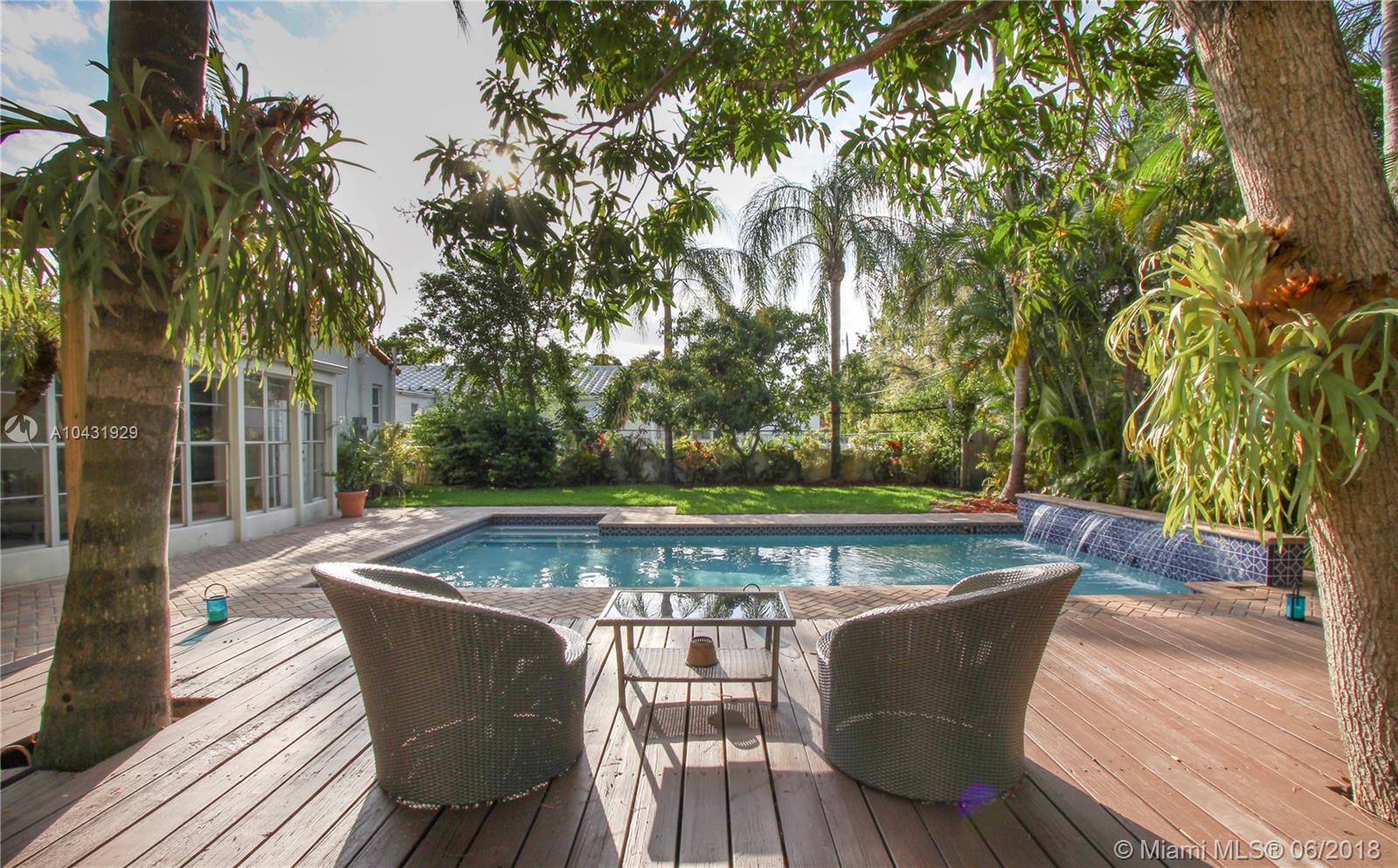 In the heart of Miami Shores, Large 2 bedrooms house nestled in a lush Garden with Pool, fireplace & Garage. Walk to shops, restaurants, movie theater, Starbucks and schools. 2B/2b, Den, Dining, Living and family rooms. Possibility third bedroom. Easy to show