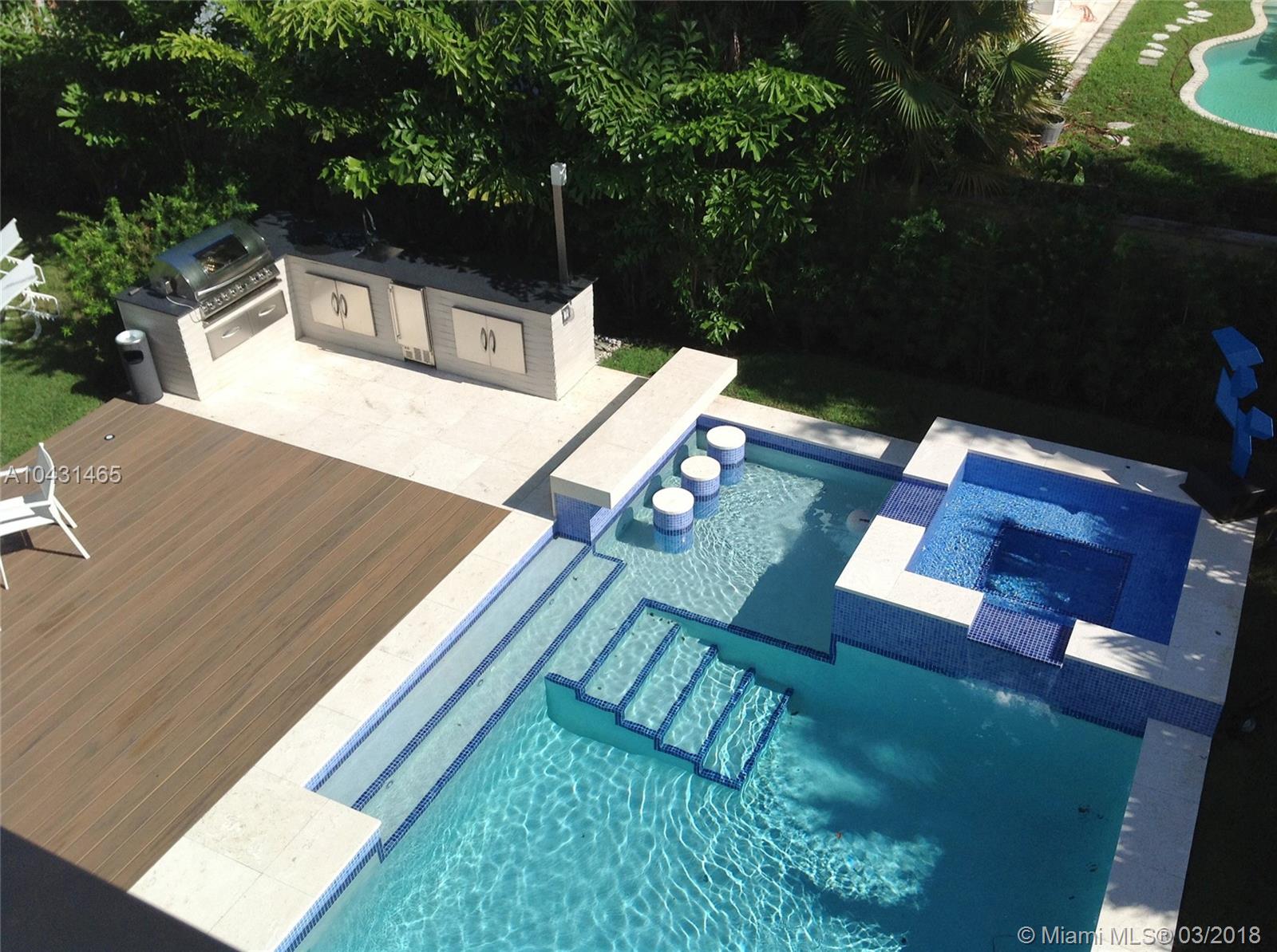 Espectacular modern home, 5 beds, 2 family rooms & 5.5 bath, garage for 5 cars plus golf car. Electric car ready. Spanish marble first floor, Brazilian teak 2nd floor, electricity through EMT, PGT impact windows, 10 ft. ceilings, walls , walls finished #5, custom high end closets, electric shades, 500 Gal gas tank, heated gas pool-jacuzzi, cascade, wet bar, summer kitchen with charcoal & gas BBQ, lift from garage to 1st floor, Italian Pedini Kitchen, German faucets in all bathrooms. Zub-Zero appliances, high efficiency A/A. Great for entertainment. Beautiful landscape. Ready to move in.