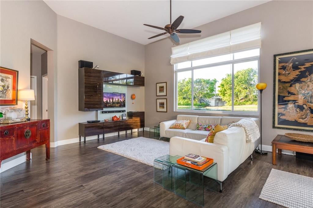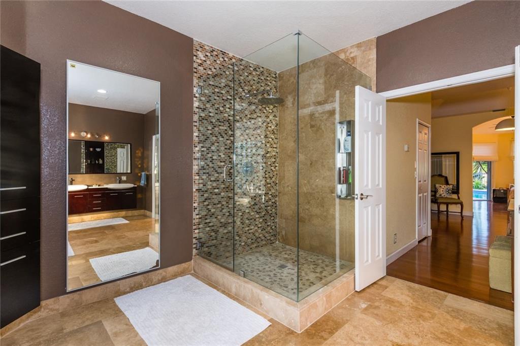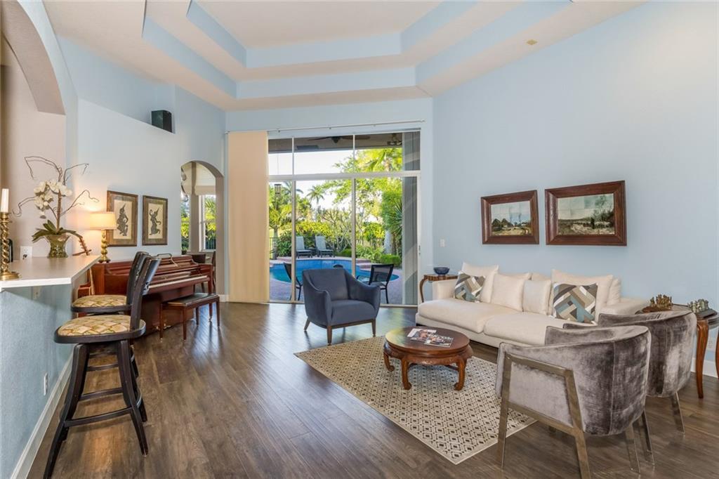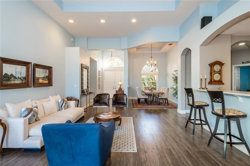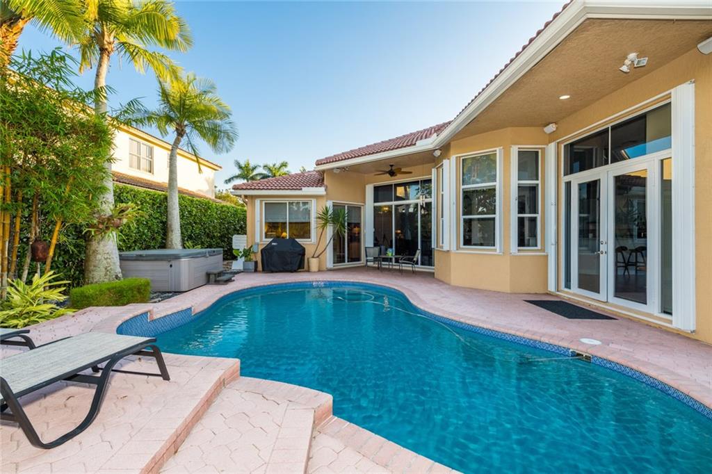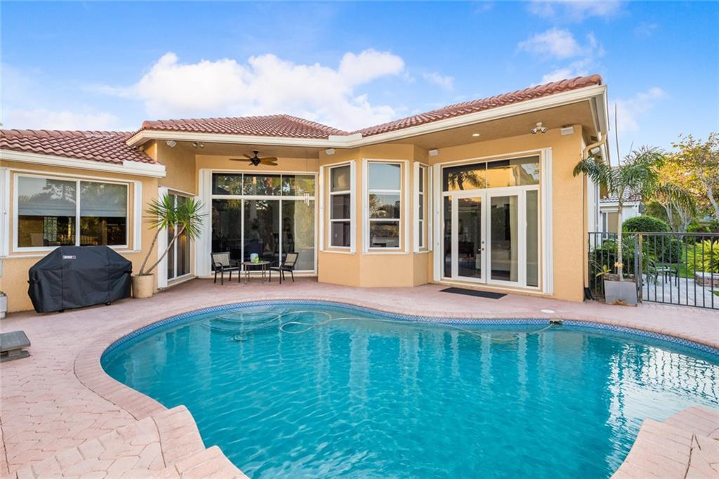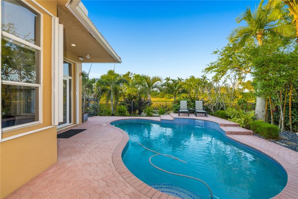 Modern flair with upgrades around every corner.Tranquil waterviews encompasses this 4/3 pool home plus den in Master bedroom.Special Kitchen-Quartz countertops, self closing drawers, stainless steel appliances, & undermount lighting.Get ready for a spa in your Master Bath which includes river rock, frameless shower, & modern vanities.High end bar with refrigerated drawers & custom cabinetry.Watch the stars by fire pit overlooking stars & water.Pool with overhang makes for unforgettable family gatherings.