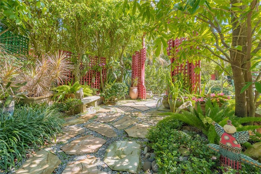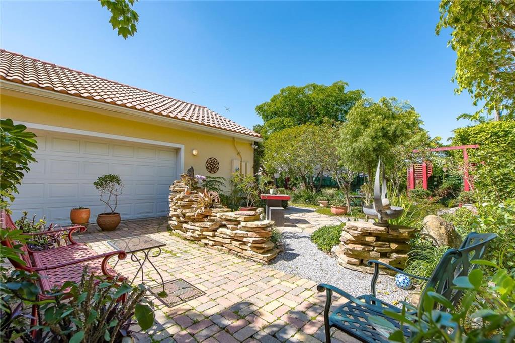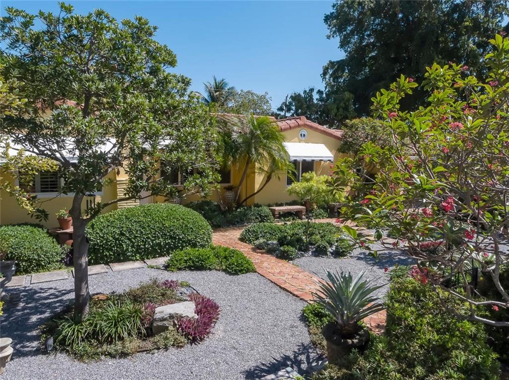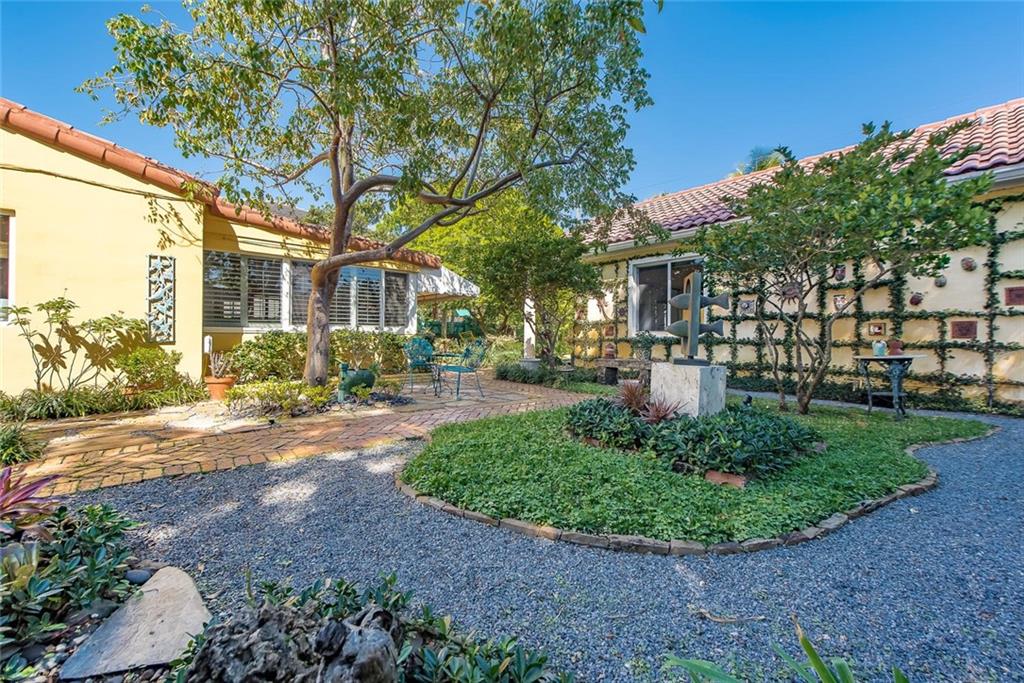 Welcome to the Garden Party . Fabulous 3BR/3BA house as well as a detached (apx.) 516 SF artist studio complete with a portico entry, kiln room, central ac, impact windows/doors, a half bath (plumbed for a shower) and an operable garage door for flexibility as a 2 car garage. The brightly (impact) windowed main house has custom built-ins, well designed master bath, a spacious Family room with beamed ceilings, modern & efficient kitchen, an oversized 2-bay carport and natural gas fed whole house generator.