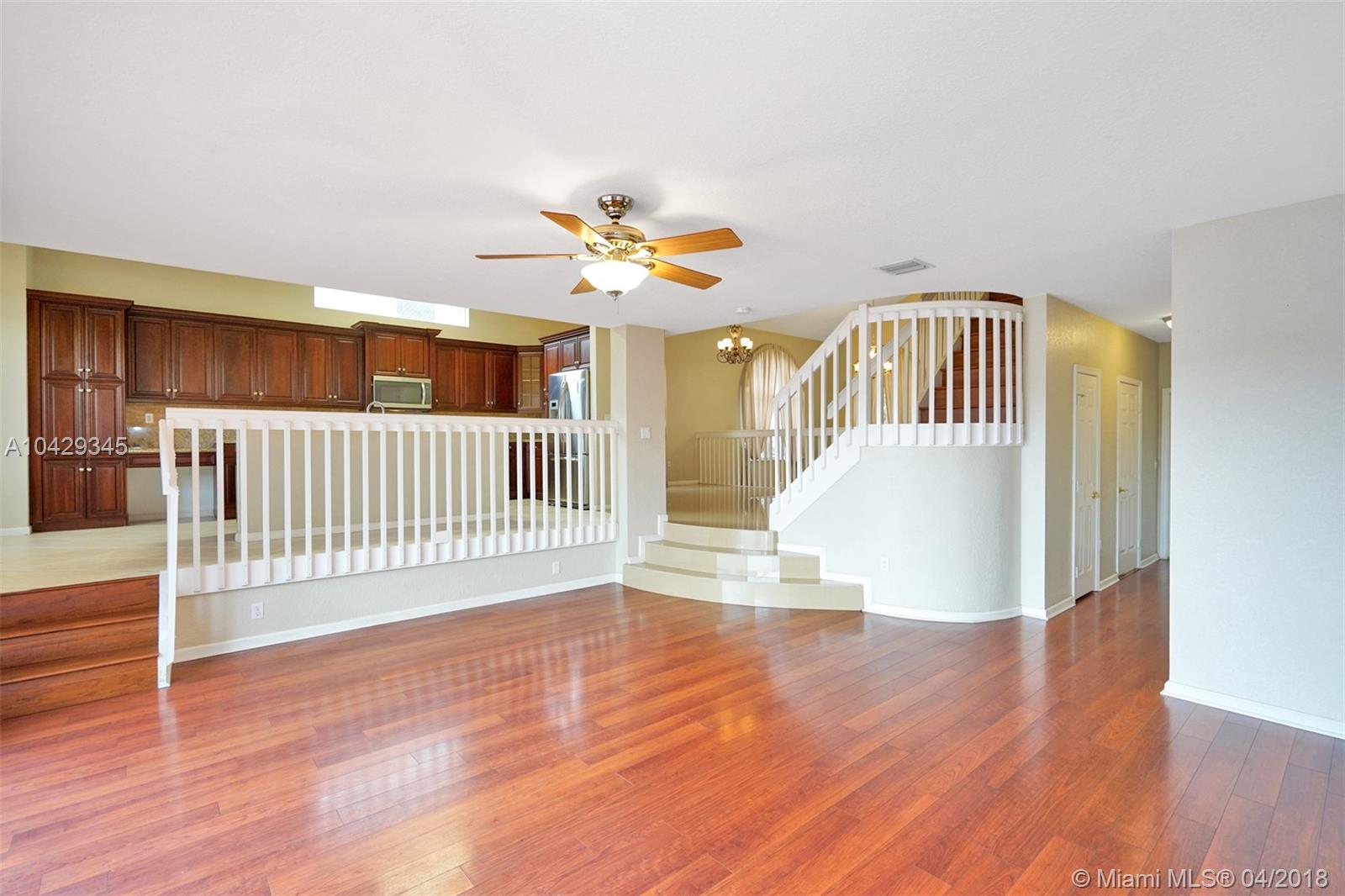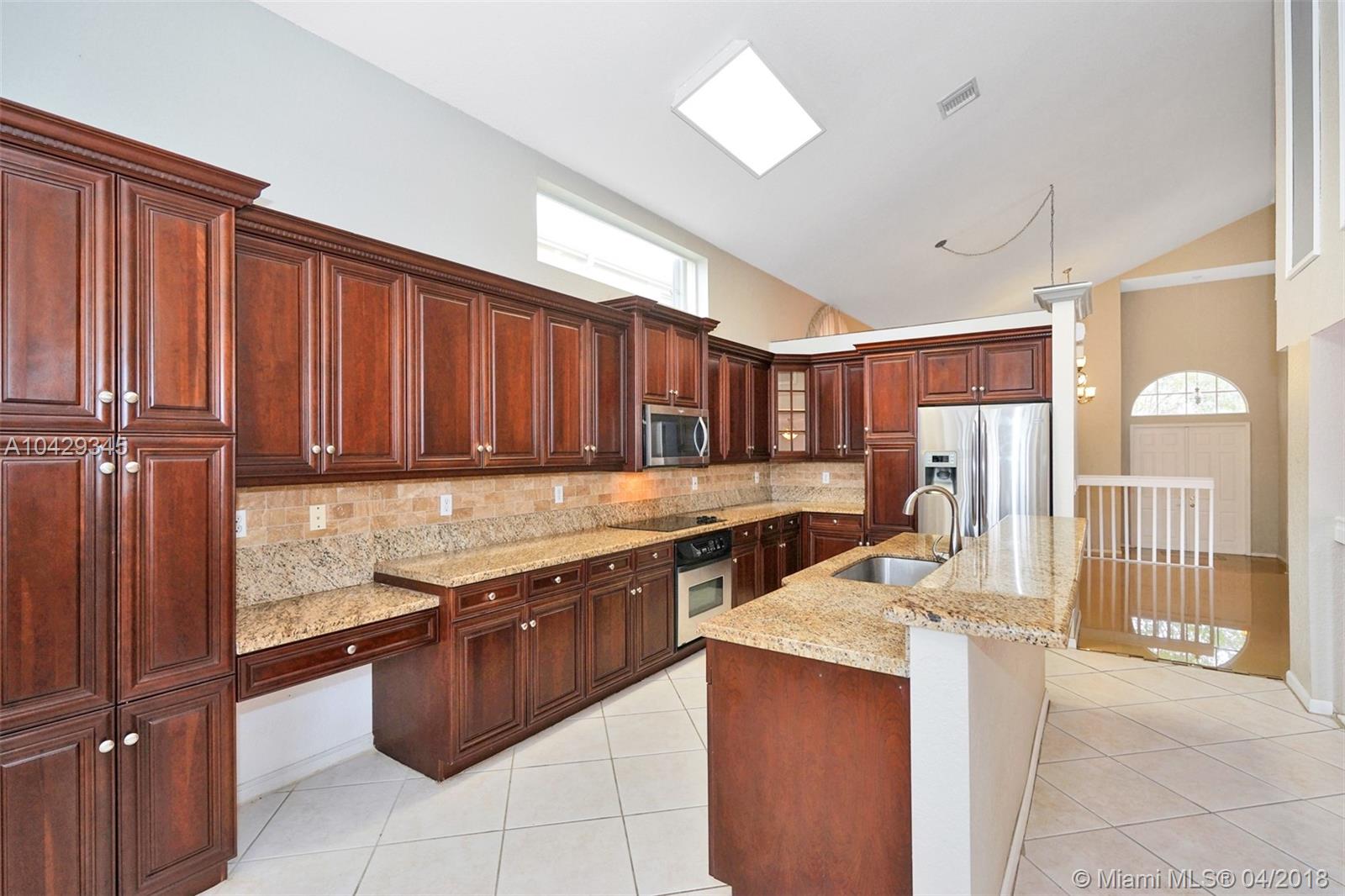 This is "The Best" Deal at Miramar's premiere "Rivera Isles" community, the perfect setting at the right price! With large & inviting living spaces, high ceilings & unique architectural features. As you enter, you are greeted by soothing, all porcelain, neutral tile floors. A few steps from the living room you will find the raised dining area & tastefully updated open concept kitchen in rich wood, granite counters and a stainless steel appliance package. A cozy breakfast nook overlooking the lake & back-yard await you each day. This model offers a bedroom with a full bath downstairs & laundry room. A beautiful staircase leads to the grand master bedroom featuring a separate sitting area or office space. Build your own pool in the oversize fenced lot, what are you waiting for?