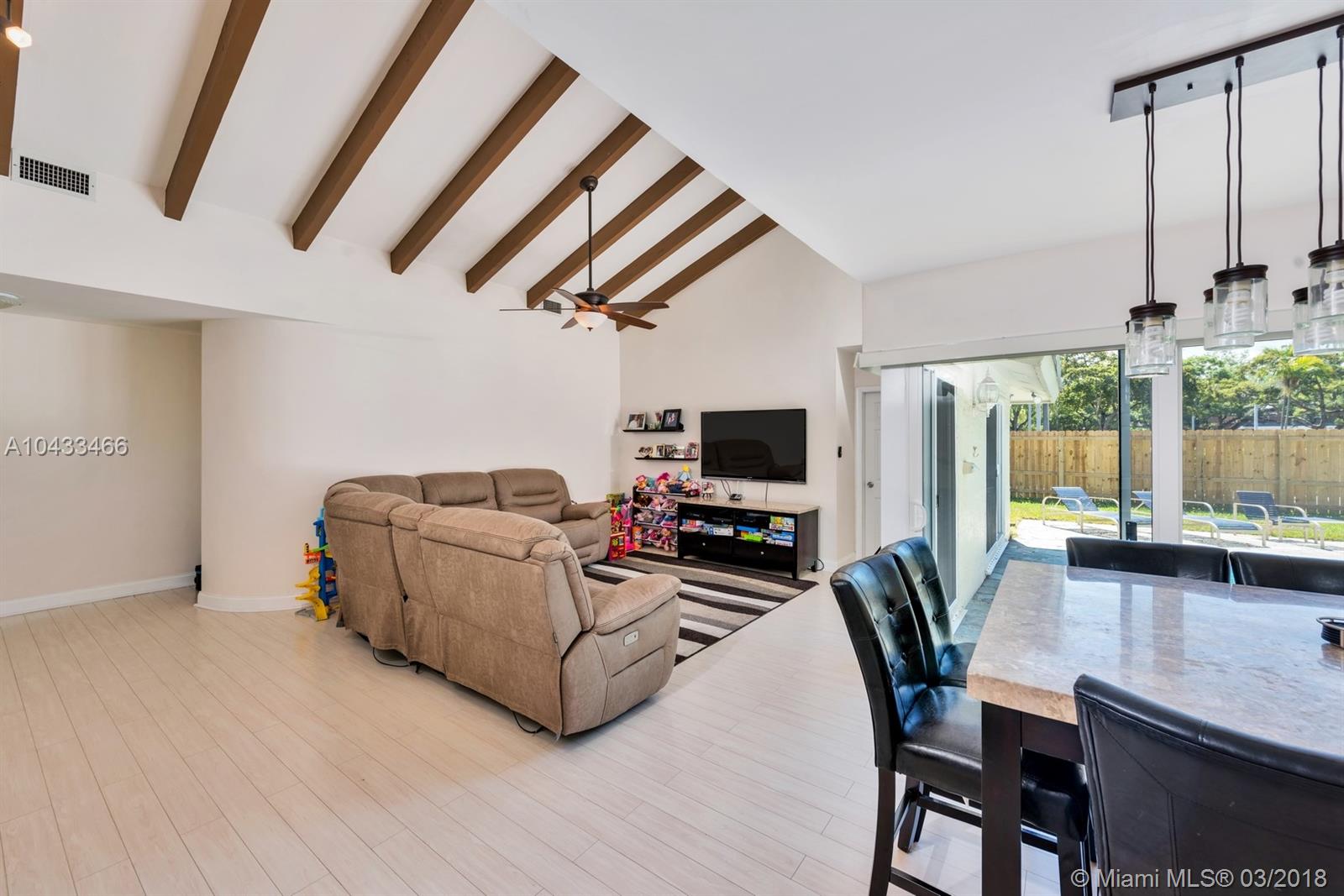 Beautiful 3/2.5 on quiet tree lined street in the Greens of Emerald Hills, a gated community. Split floor plan, with vaulted ceilings & brand new Hurricane Impact Windows provide for a wonderful open feeling and bright house. Beautiful wood floors are throughout the home. Renovated open kitchen with granite counter tops, Italian Cabinetry, & SS appliances are perfect for entertaining. Lush backyard with Flagstone deck, automatic awning, & pool are wonderful for family get-togethers, & BBQ's. Just a 5 minute walk to Publix, restaurants, shopping, Starbucks & more. 10 minute drive to the Beach. Maintenance fee includes HOMEOWNERS INS., lawn service for front of house, Cable TV, & more. See broker remarks. EZ to show.