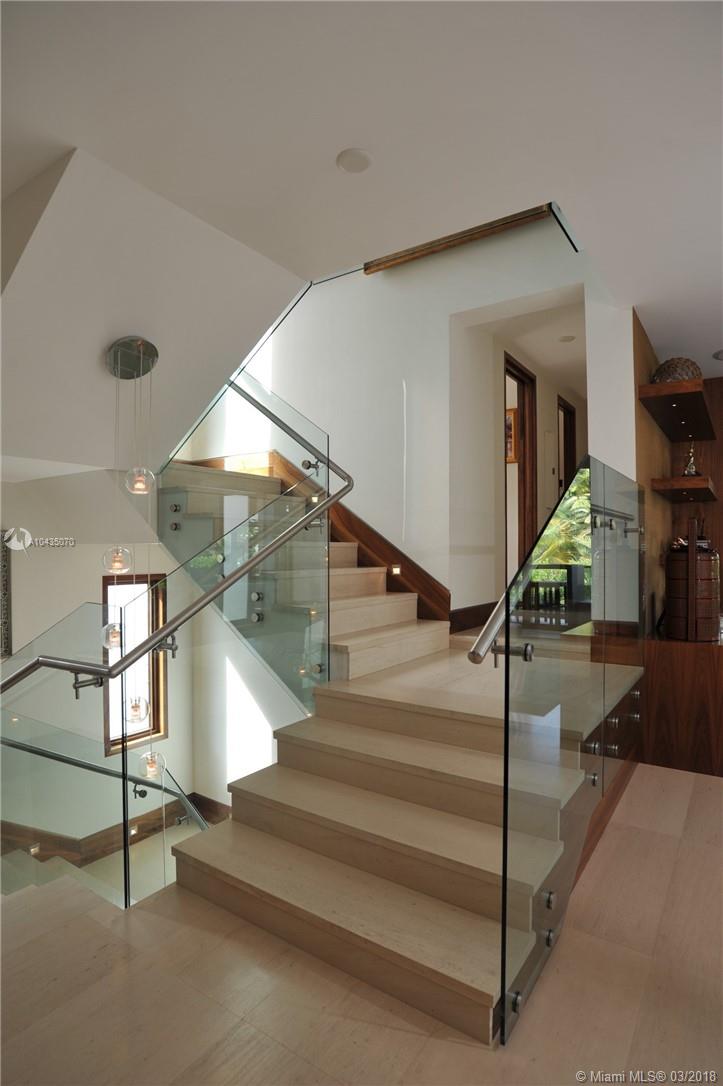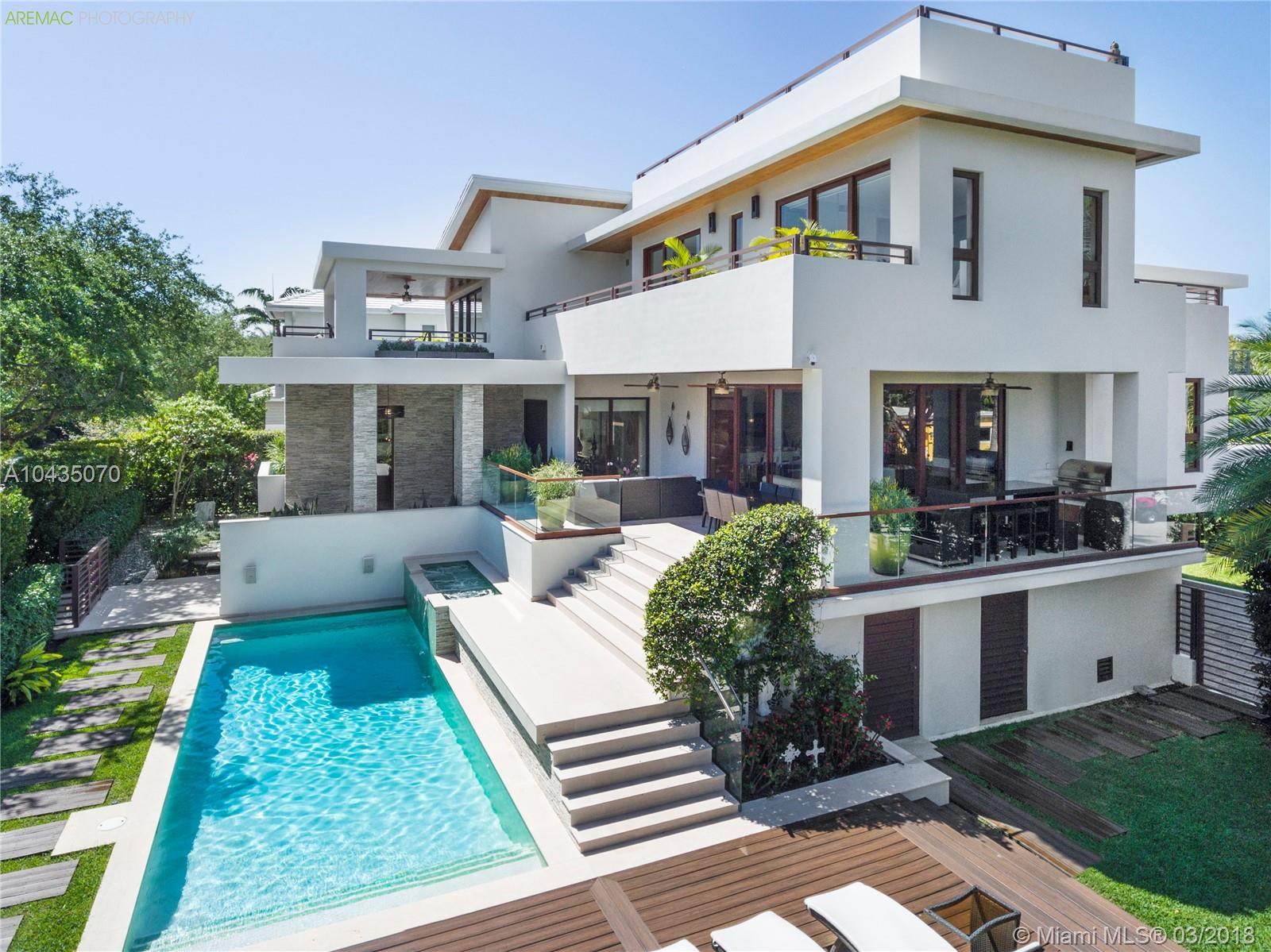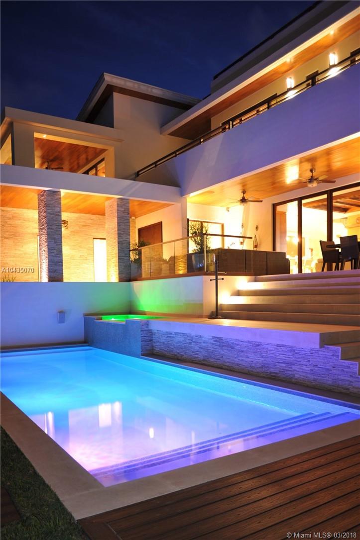 Stunning contemporary home on oversized corner lot in Key Biscayne. Built by renowned architect/interior designer to extremely high standards of quality w/no expense spared. Designer Italian kitchen, top-of-the-line Miele app. & Sub Zero refrig & sleek wood built-ins. Smart home wired w/Control4: lighting, music, shades & intercoms. Limestone & wood floors, indoor bar, multiple terraces, pool area w/lockers, steam room, gym, playroom, maids qtrs, rooftop terrace, ample storage, custom built closets & pond.