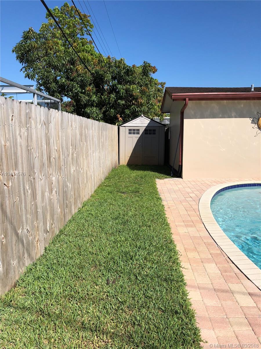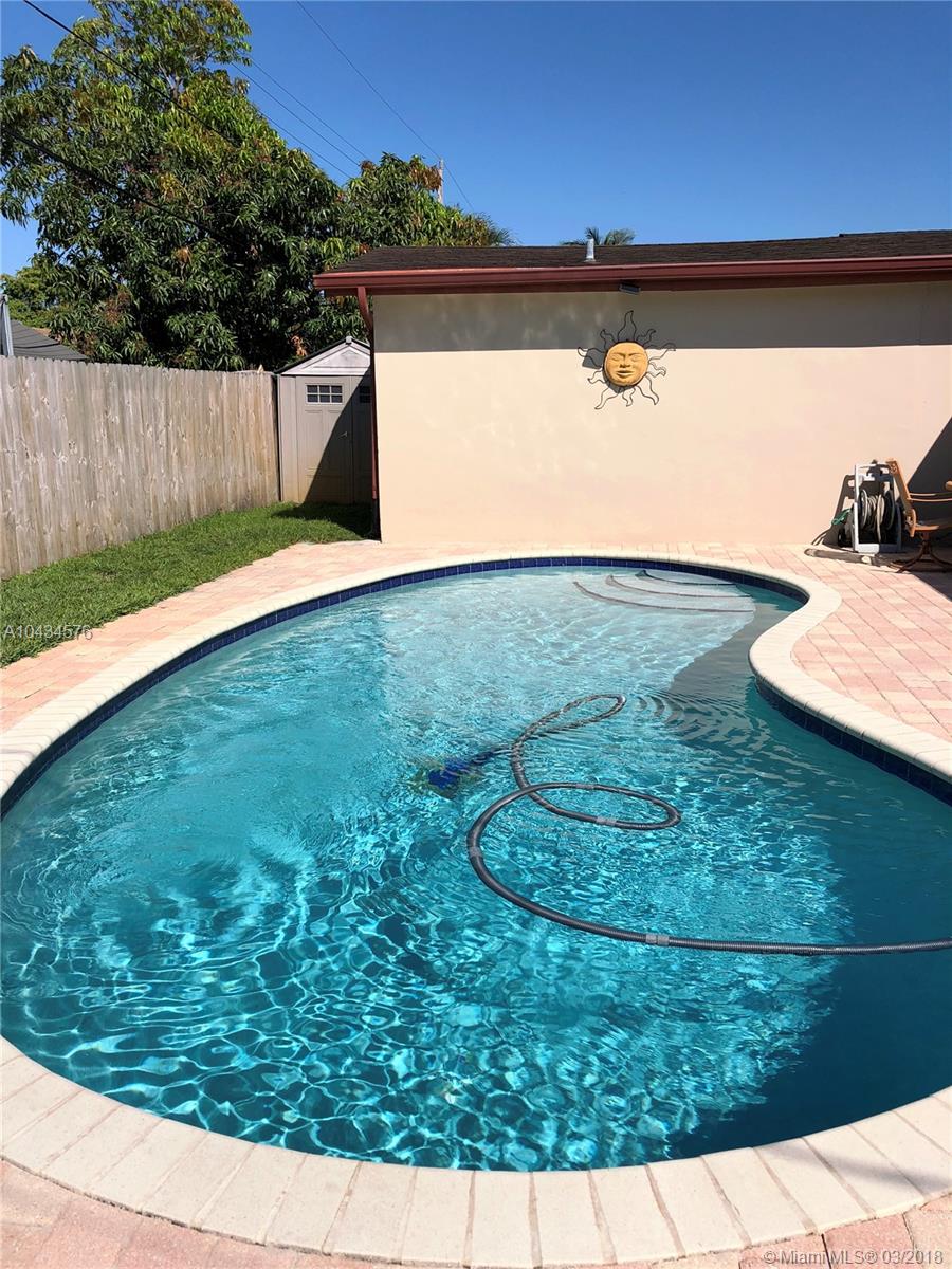 If you're looking for a home with a phenomenal master suite, this is the one! There's a HUGE master bathroom with the most incredible shower you've ever seen, as well as dual sinks, and a spa tub ... and the big master bedroom has two large walk-in closets! The completely renovated second bathroom is a beauty. There are wood beams in kitchen & family room. Hurricane impact windows and doors throughout the house Attached garage with hurricane impact door. Roof replaced in 2006. 16 sear hi-efficiency A/C system installed in 2014. Newer stove & refrigerator. And ... French doors lead out to a beautiful salt water pool and fenced yard. Shed provides extra storage. Circular driveway. Avocado tree. Great location just minutes from University Drive and access to Turnpike.