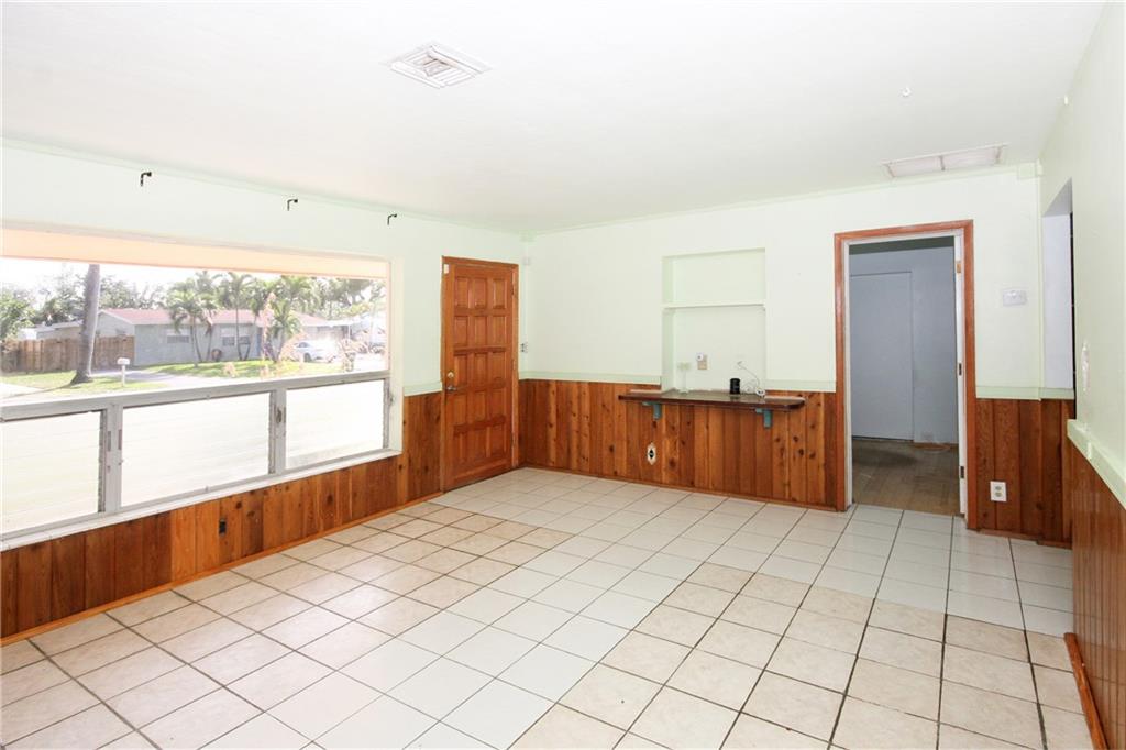 Old Florida charmer! Spacious living room has beautiful FL pine wood paneling wall accents. Terrazzo floor exposed in extra bedroom. Nice big fenced yard has room for a pool & your private oasis! Single-car garage was converted into den/office. House needs some TLC/updating but has great potential. Location, Location, Location--easy access to major highways, Ft Laud/Hollywood airport, beach, downtown shopping & restaurants.