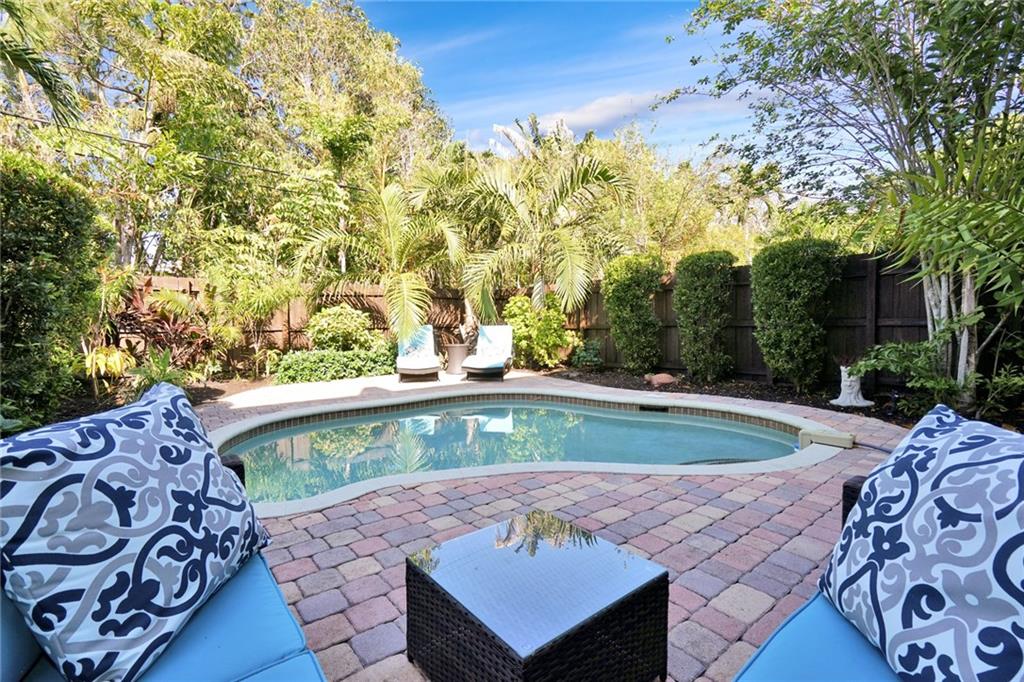 **Lowest Priced Townhome with Yard In The Area** Hard to find 3 bedroom 2.5 bathroom CORNER unit in Villa Tria Doma. Spacious, fenced backyard with PRIVATE pool and beautiful landscaping! Impact windows/doors, volume ceilings, storage room & 1 car garage. Kitchen has stainless steel appliances & granite counters. Large master bedroom w/ custom walk-in closet, separate tub/shower & dual sinks. Wider lot as it's a corner unit. All bedrooms on the second floor. 2 miles to downtown, Las Olas & the beaches.