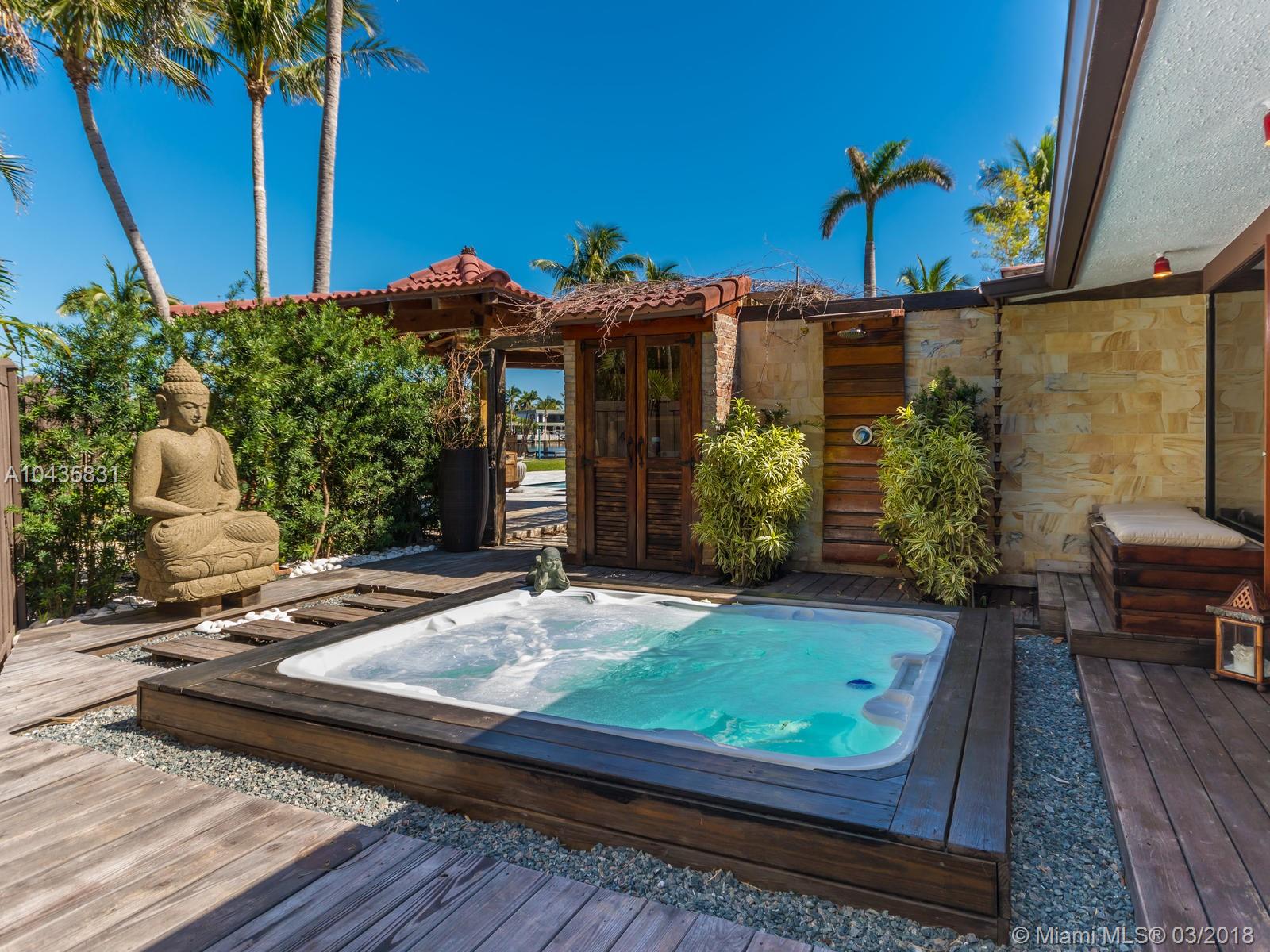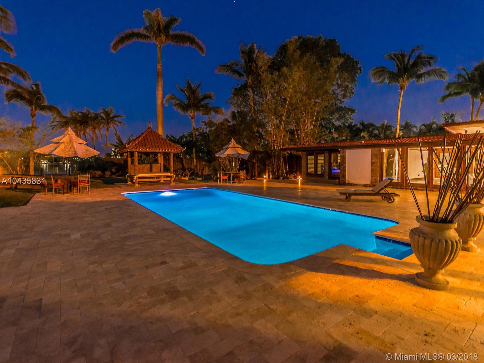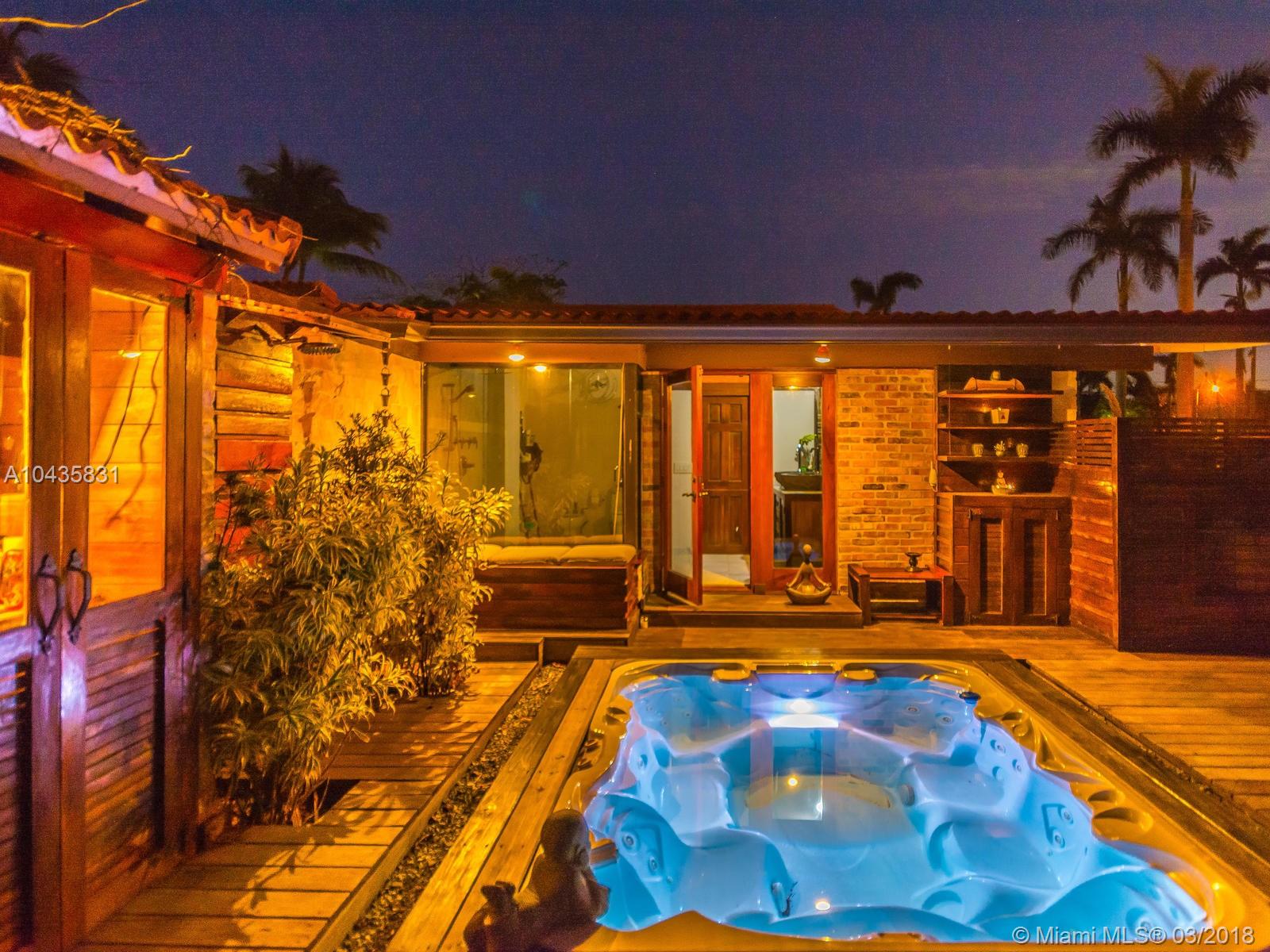Enjoy ultimate peace, privacy and serenity in this luxurious ZEN waterfront estate in Hollywood Lakes. Situated on a private corner oversized waterfront lot, on a dead end street. This residence offers captivating views of the intracoastal, a private boat docks, huge swimming pool with brand new stone patio area, and tropical gardens with mature landscaping.The open and airy interior features an abundance of natural light, sprawling entertaining spaces complete with an open gourmet kitchen with top of the line appliances, natural gas, Carrera marble floors throughout, 2 master suites that open up to the outside, the third bedroom is currently used as a gorgeous walk-in closet, there is also a 2000sf studio space with a loft that is perfect for an office or extra bedrooms