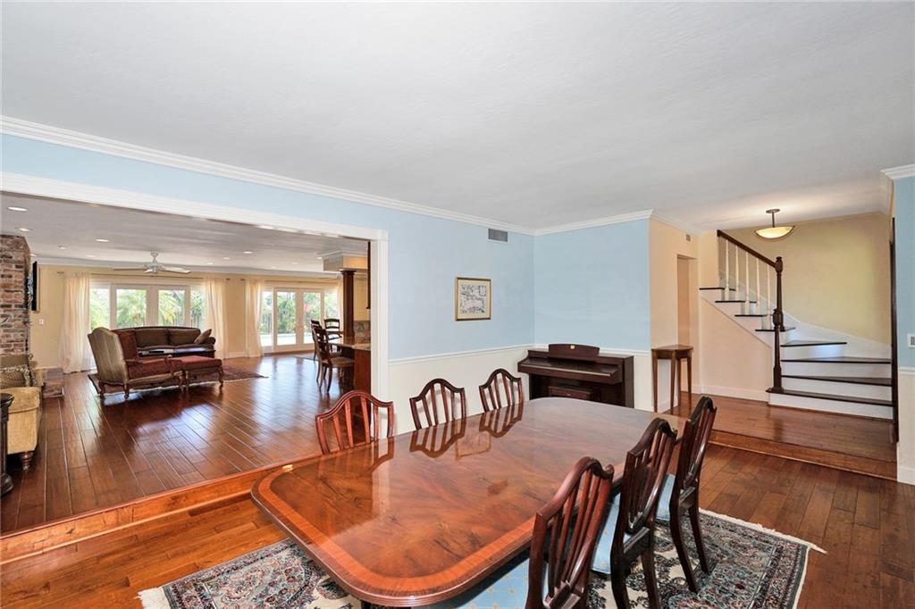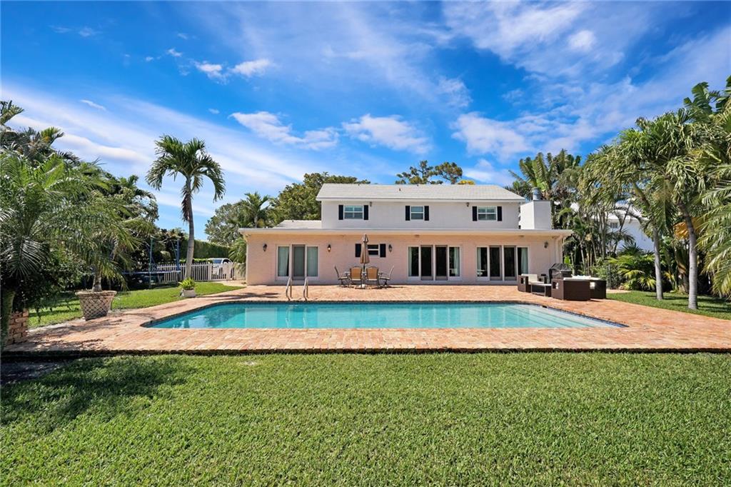 Stunning 5 bedroom 3.5 bath home situated on an oversized lot (17,864 sq ft) in Coral Ridge Country Club. Foyer entry, expansive living/dining room with brick fireplace, gourmet kitchen with cherry wood cabinetry and granite countertops, master suite on first floor with adjoining den/office and spa like bath, 4 bedrooms 2 baths on second floor, beautiful wood flooring throughout, impact windows and doors, recessed lighting and more! Spectacular backyard with pool, pavered patio and lush landscaping.