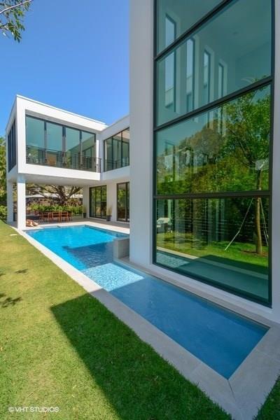 Stunning modern masterpiece with unparalleled custom finishes is now complete & ready for occupancy! Expansive open spaces blended with floor-to-ceiling impact glass fills the home with natural sunlight. Huge open great room w/ soaring 20' ceilings & 3 sets of sliders opening seamlessly to a private pool/patio/garden area. Sleek chefs kitchen featuring dual islands, Italian cabinetry & quartz counters. 3 generous sized en-suite guest rooms & over-sized master suite w/ sumptuous spa-like bathroom.