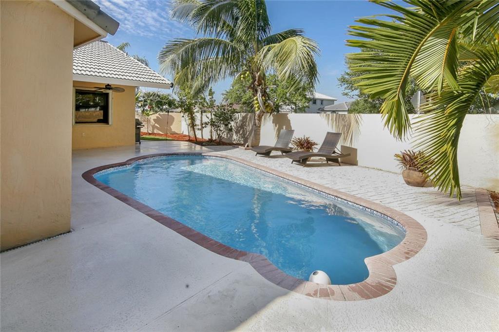 Beautiful 3 bedroom 2 bath single family home on corner lot in sought after Hawkes Bluff. Enter the foyer to volume ceilings w/a huge formal dining/living area. The whole home has large tiles throughout. Open kitchen has white cabinets, white Formica countertops & S/S appliances. Large master bedroom w/walk-in closet & beautifully updated master bathroom. Sizable secondary bedrooms. Updated secondary bathroom. Amazing backyard w/cool deck, renovated pool & fruit trees. Accordion shutters. All close to major highways and great schools!