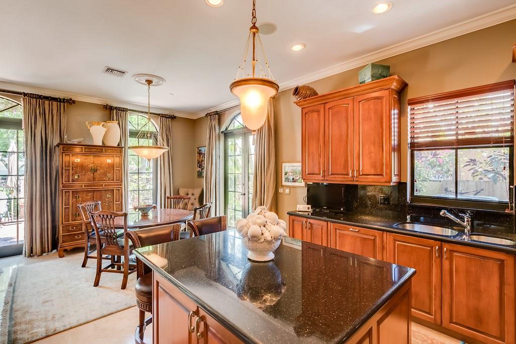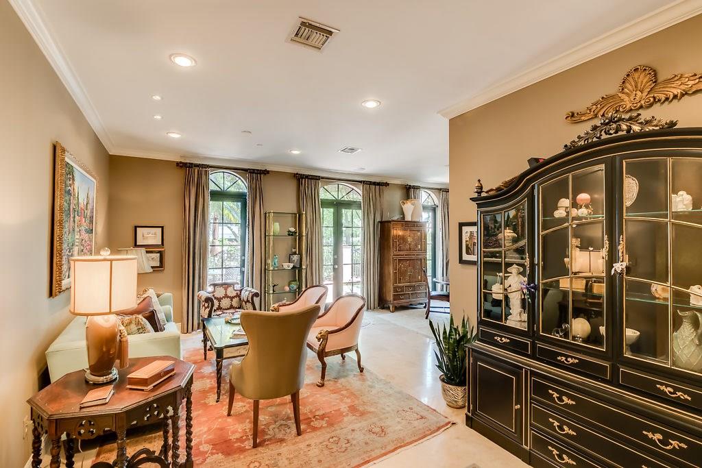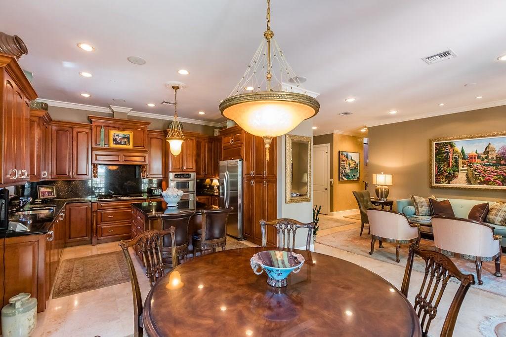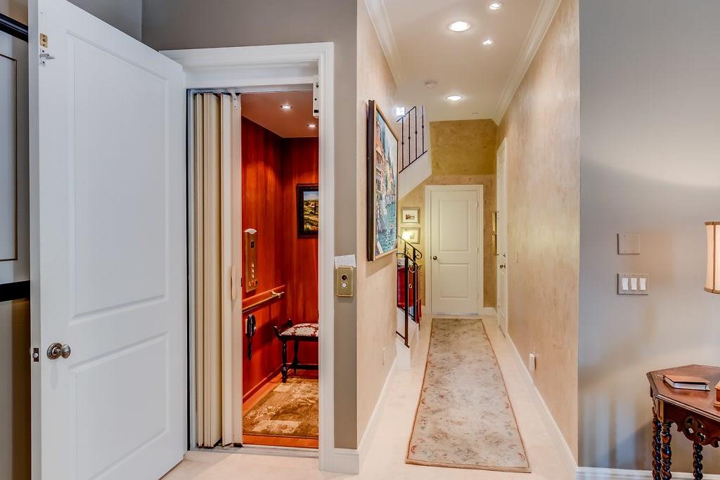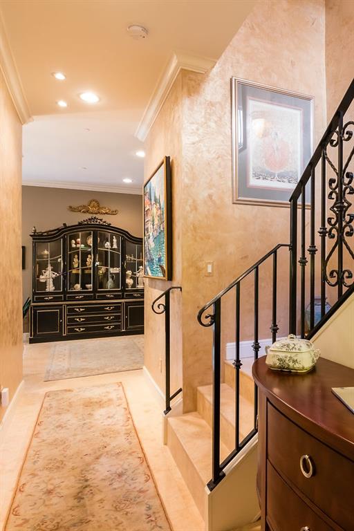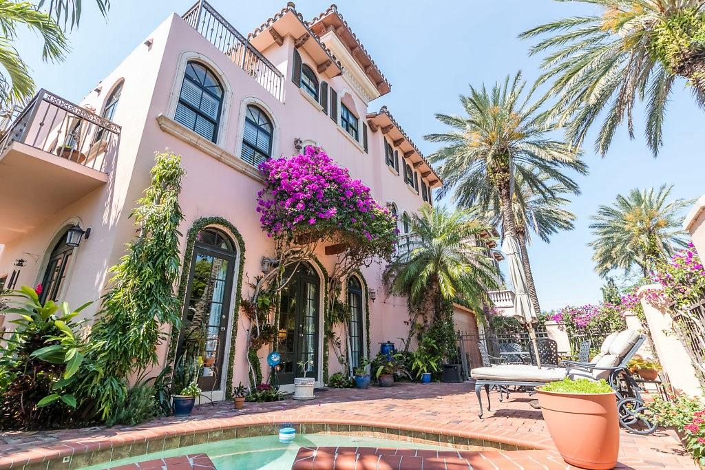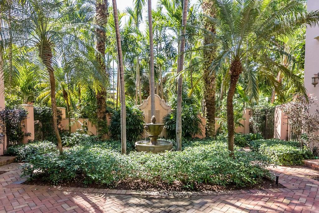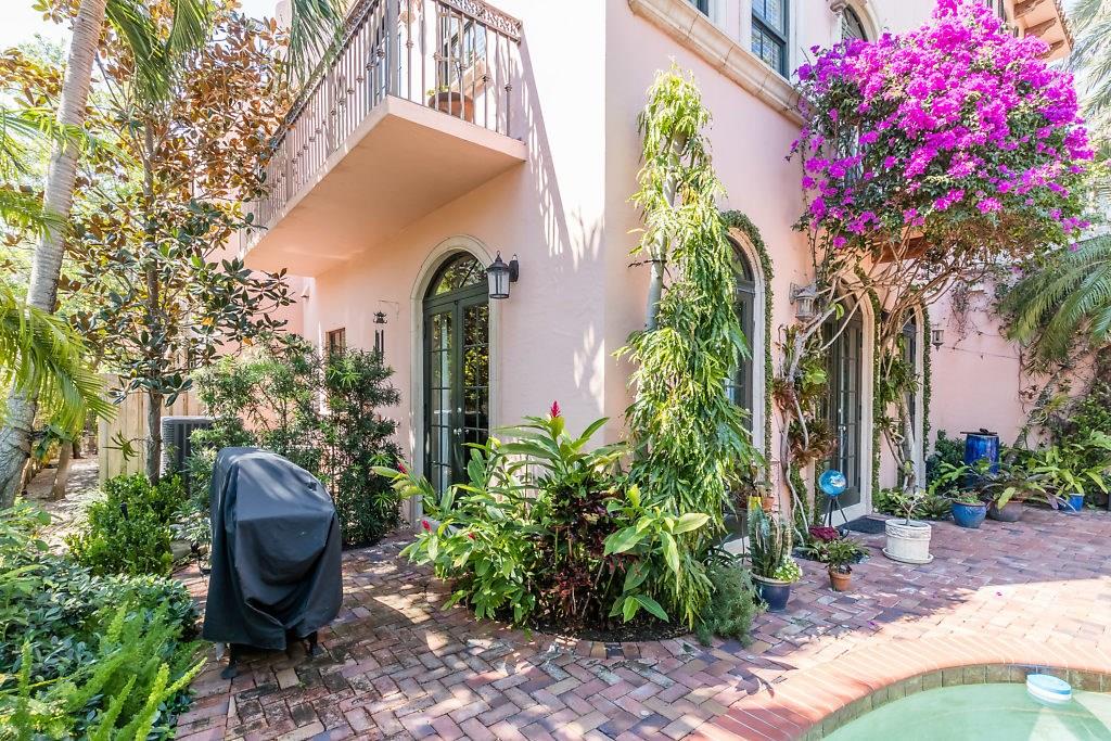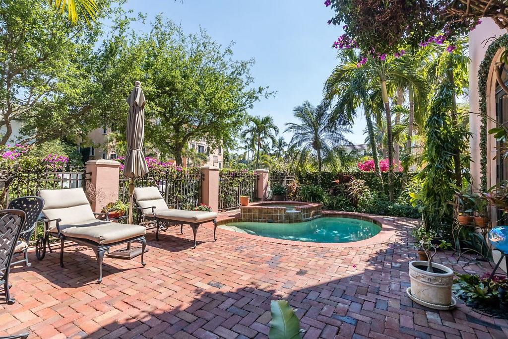 Absolute Luxury! This 3/3.5 corner townhouse features private pool with lavish garden, two balconies & two giant decks all Flagstone. Spacious, all wood and marble interiors. Designer kitchen with gas stove & beautiful black Galaxy Granite counters. Private elevator, metal railings, mammoth media room, formal living & dining rooms, sitting area in master, french doors galore, oversized 2 car garage! Asking price includes Fortuny chandeliers, custom drapes & ceiling fans. New A/C units & Bosch dishwasher.