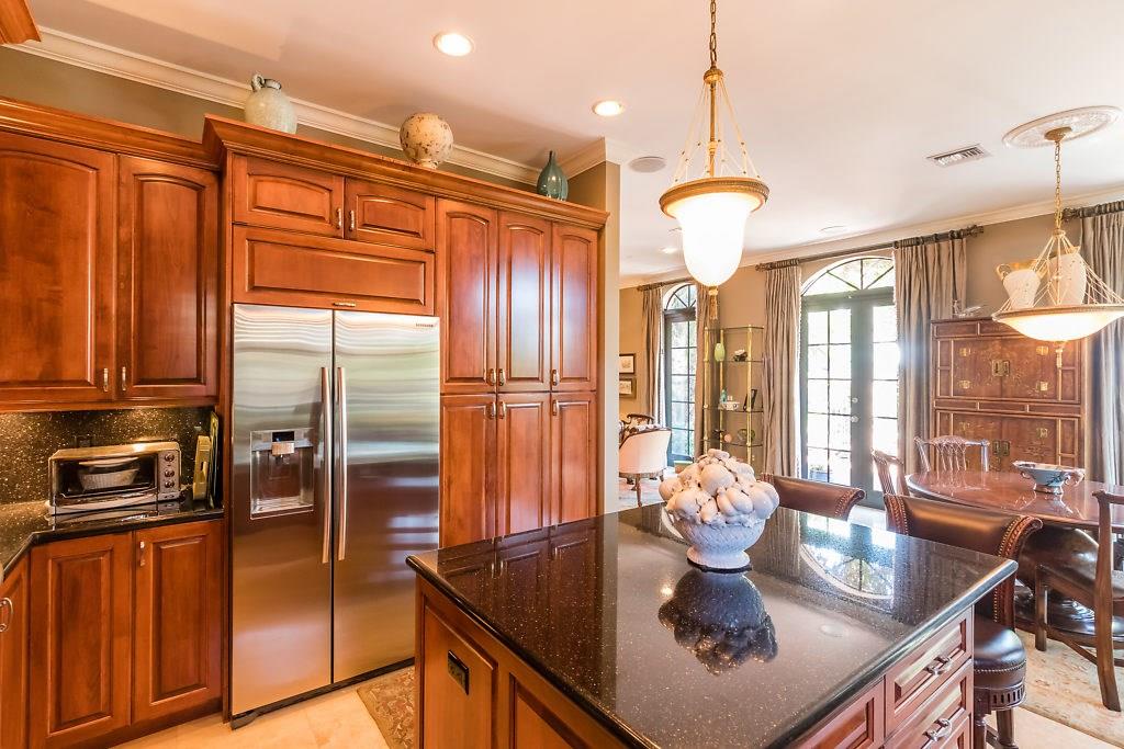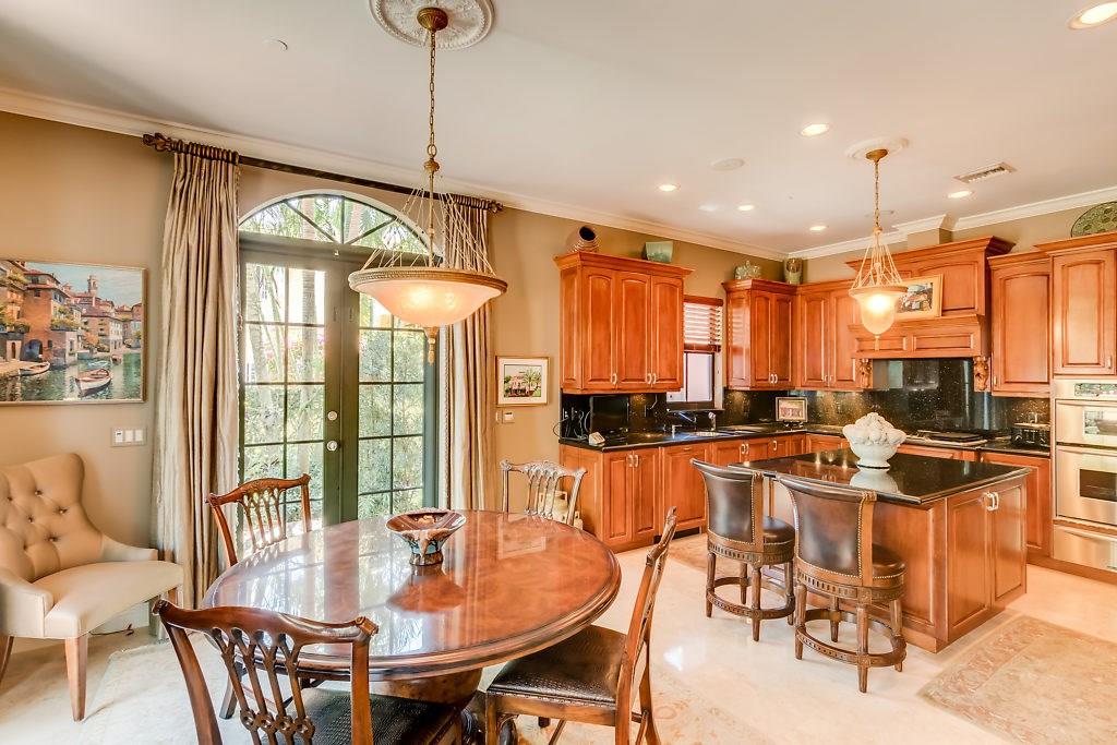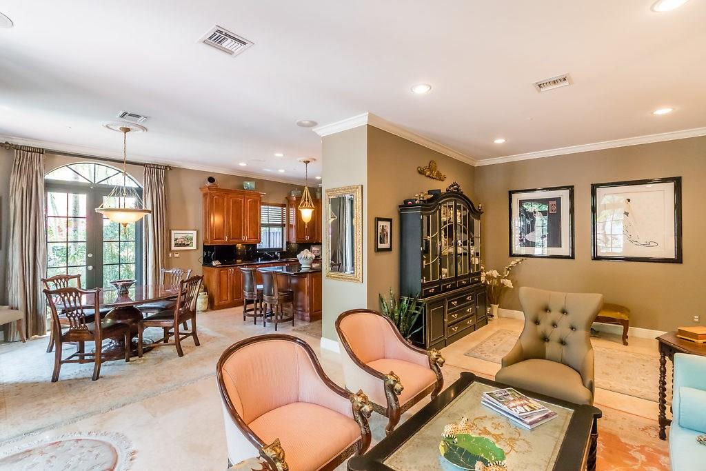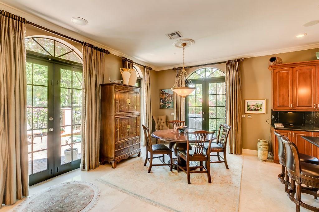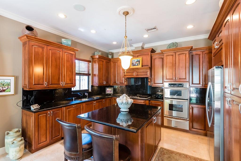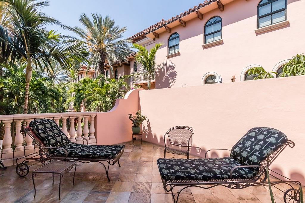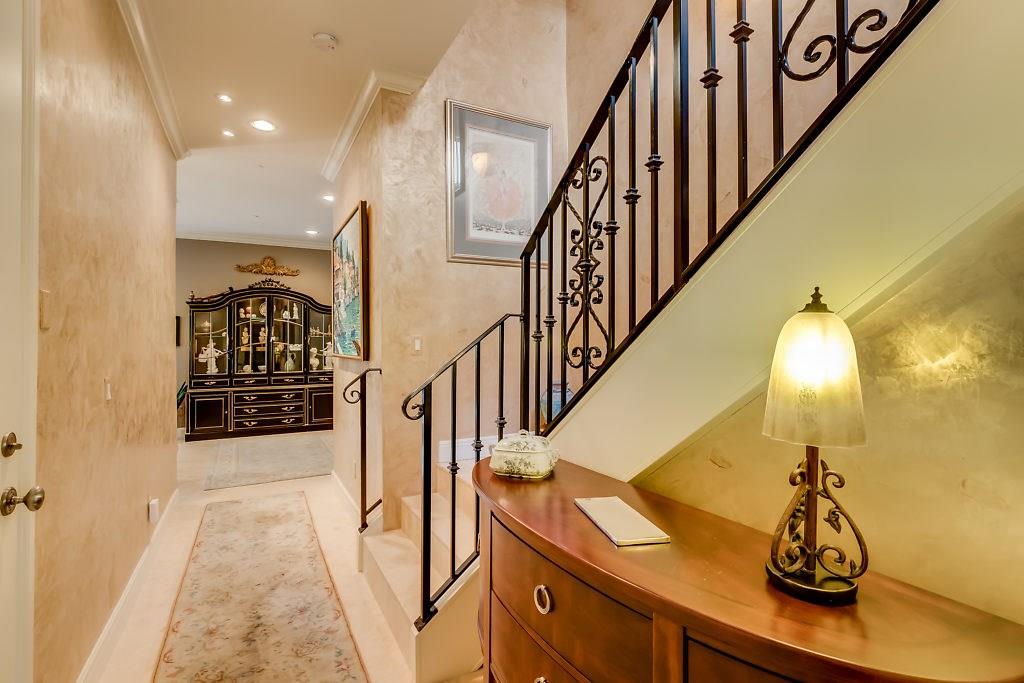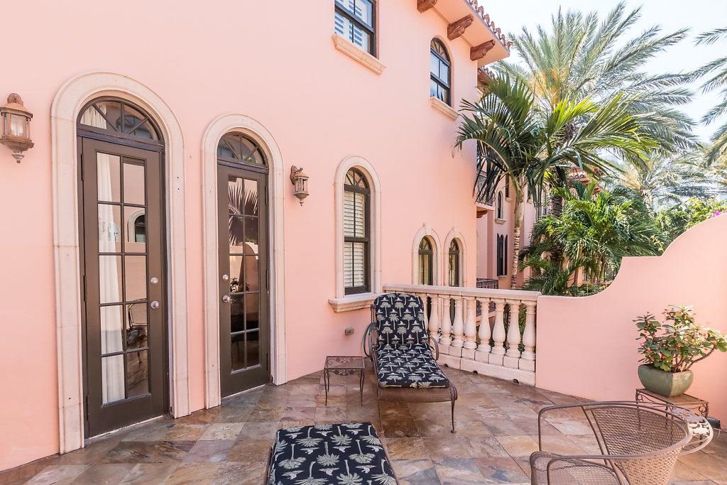 Absolute Luxury! This 3/3.5 corner townhouse features private pool with lavish garden, two balconies & two giant decks all Flagstone. Spacious, all wood and marble interiors. Designer kitchen with gas stove & beautiful black Galaxy Granite counters. Private elevator, metal railings, mammoth media room, formal living & dining rooms, sitting area in master, french doors galore, oversized 2 car garage! Asking price includes Fortuny chandeliers, custom drapes & ceiling fans. New A/C units & Bosch dishwasher.