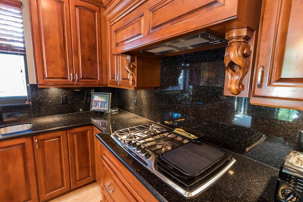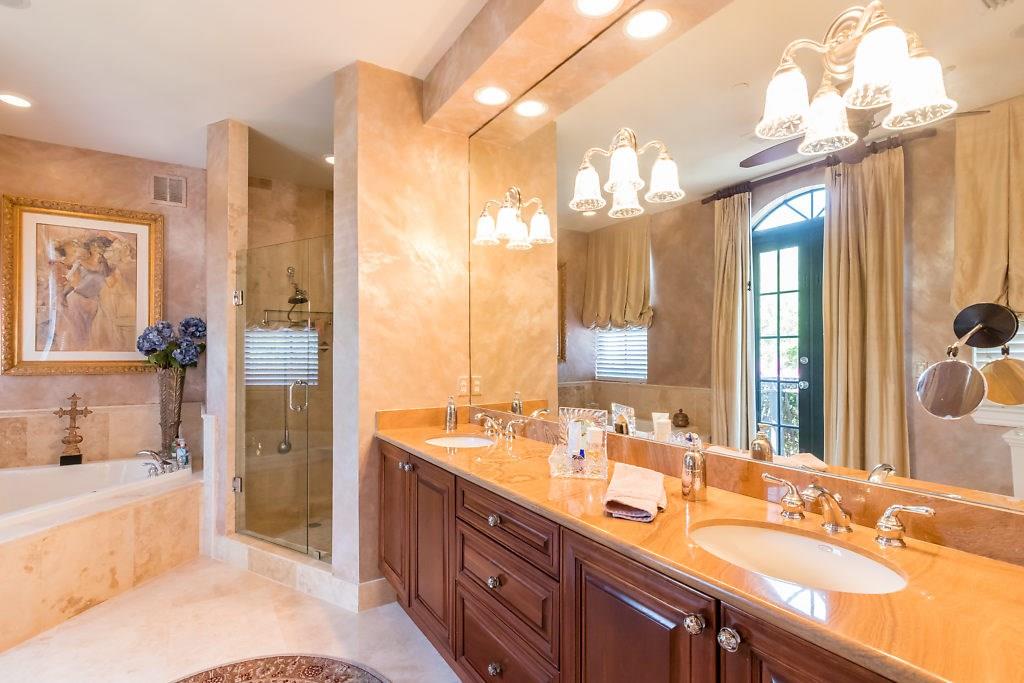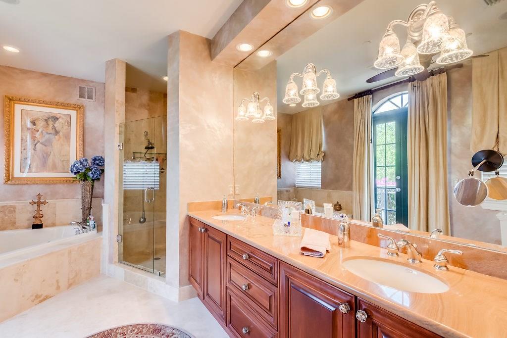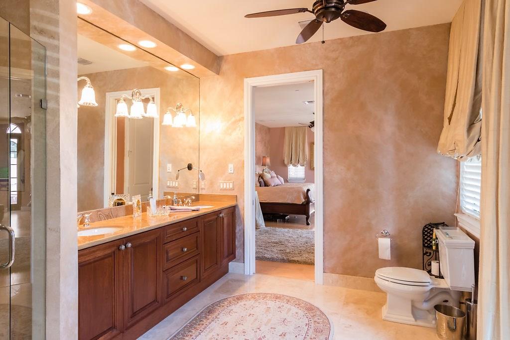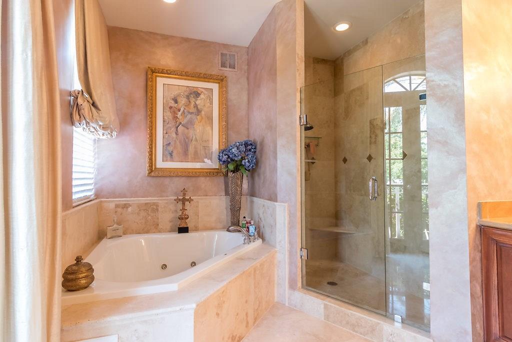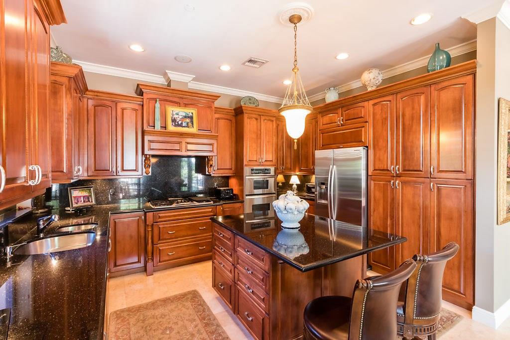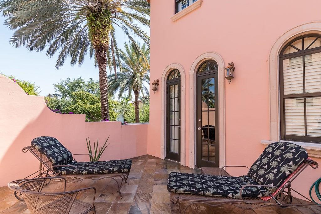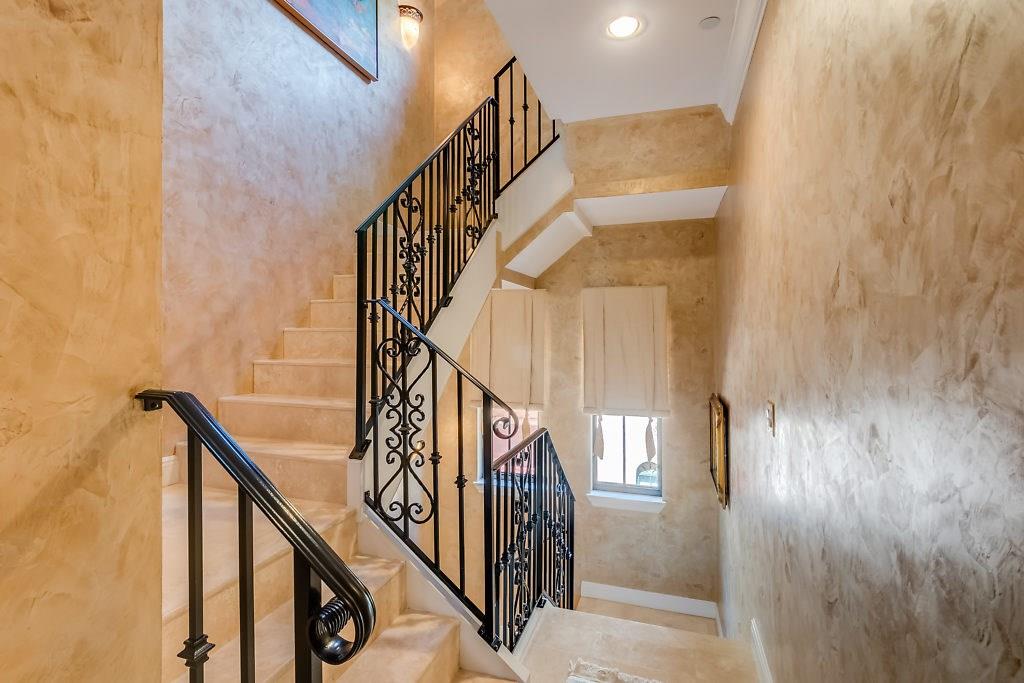 Absolute Luxury! This 3/3.5 corner townhouse features private pool with lavish garden, two balconies & two giant decks all Flagstone. Spacious, all wood and marble interiors. Designer kitchen with gas stove & beautiful black Galaxy Granite counters. Private elevator, metal railings, mammoth media room, formal living & dining rooms, sitting area in master, french doors galore, oversized 2 car garage! Asking price includes Fortuny chandeliers, custom drapes & ceiling fans. New A/C units & Bosch dishwasher.