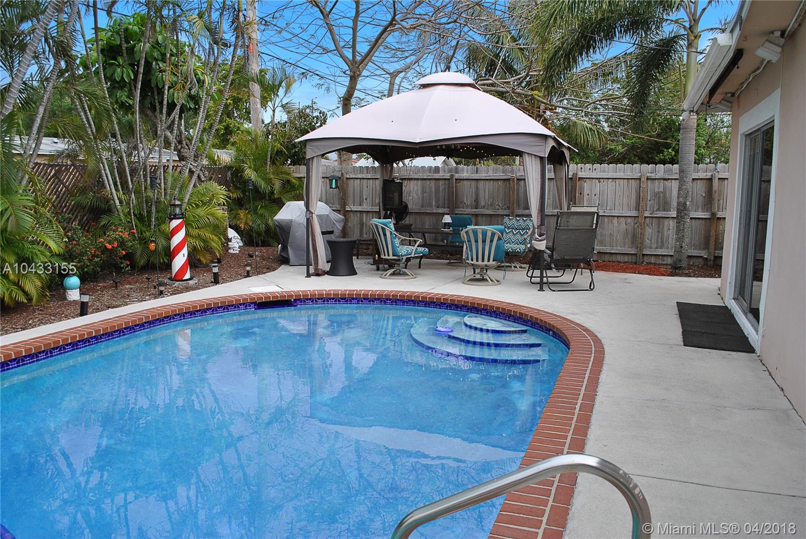This ready to move in pool home in Central Hollywood is all about living the Florida lifestyle. This 3 / 2 one story single family beauty has an amazing backyard for entertaining featuring a fabulous swimming pool area and large patio. The well laid out social backyard is the perfect retreat for get togethers, grill out with friends, cool off in the pool with a relaxing swim, or enjoy the beautiful landscaping from under the gazebo in a private completely fenced in yard. Newer roof with warranty, kitchen w/pass through bar, side by side refrigerator, glass flat stovetop, microwave, dishwasher, an open floor plan to Florida room and lots of ample natural light throughout, tile and carpet, large master bathroom with jacuzzi tub & separate shower, plenty of storage, hurricane shutters, etc.