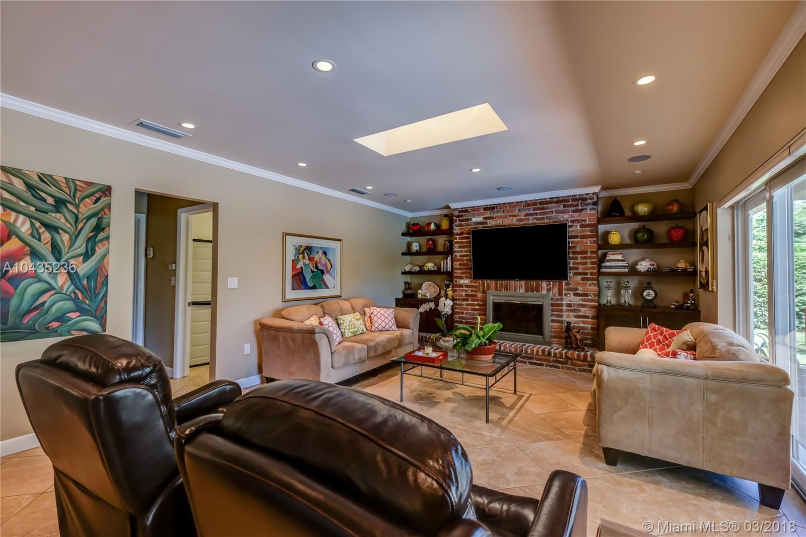 Gracious, spacious 3677 adj. sq ft family home on beautiful and big corner lot on child friendly street in the heart of Pinecrest with nice updates: all impact glass windows and doors, all baths redone recently, beautiful wood work with crown, chair rail and door moldings, updated open kitchen and "Bonus room," indoor laundry room, and picturesque brick fireplace! Lush, private, and pretty pool/patio/yard. All three Palmetto schools. Extremely well maintained and updated over the years by current long term owners. See MLS attachments.