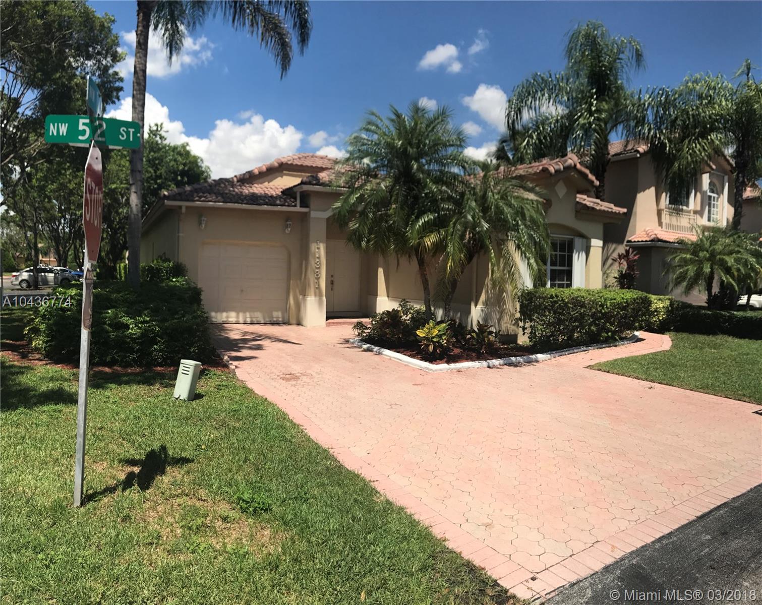 Desirable & Attractive 3/2 Corner Lot, single story home in Doral Landings East. Large kitchen & bathrooms recently updated with lovely large patio & one car garage attached parking. The home is spacious with high ceilings & large windows throughout. Two additional car spaces available in driveway with additional visitor spaces conveniently located walking distance around the corner from the house. Don't miss this opportunity to live in one of the most sought after properties in the City of Doral near A-Division schools and beautiful recreational parks. Community has pool and kids playground. Security 24 hours. Move in Ready!