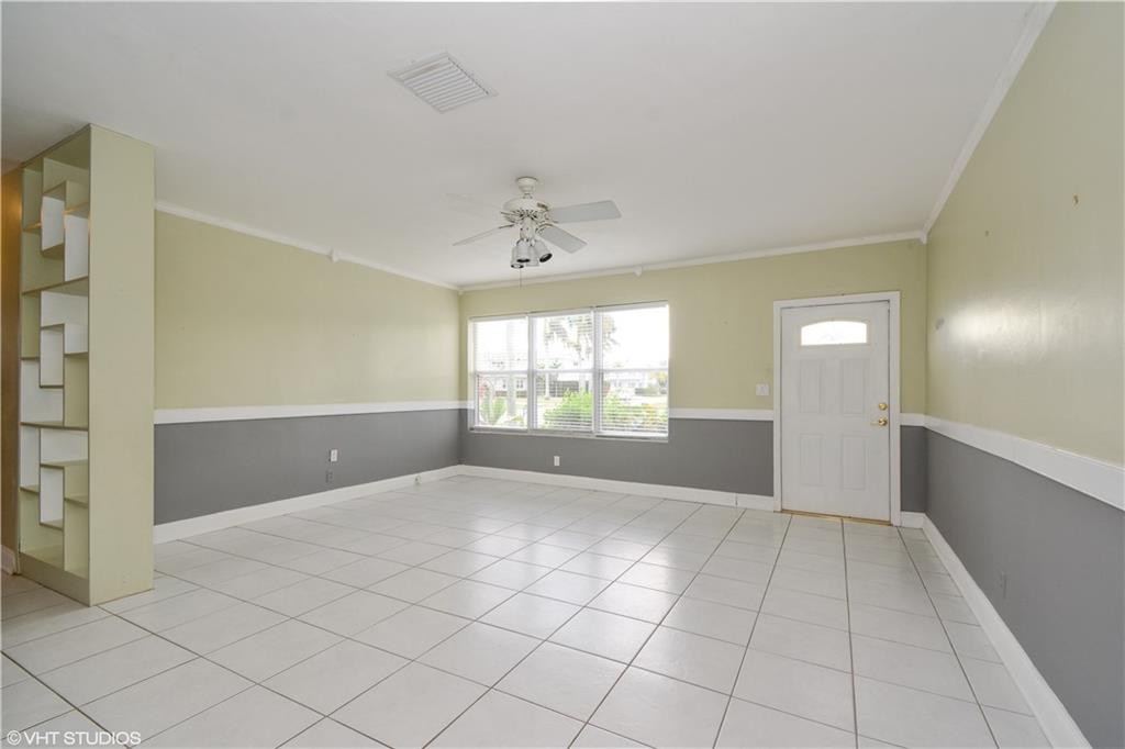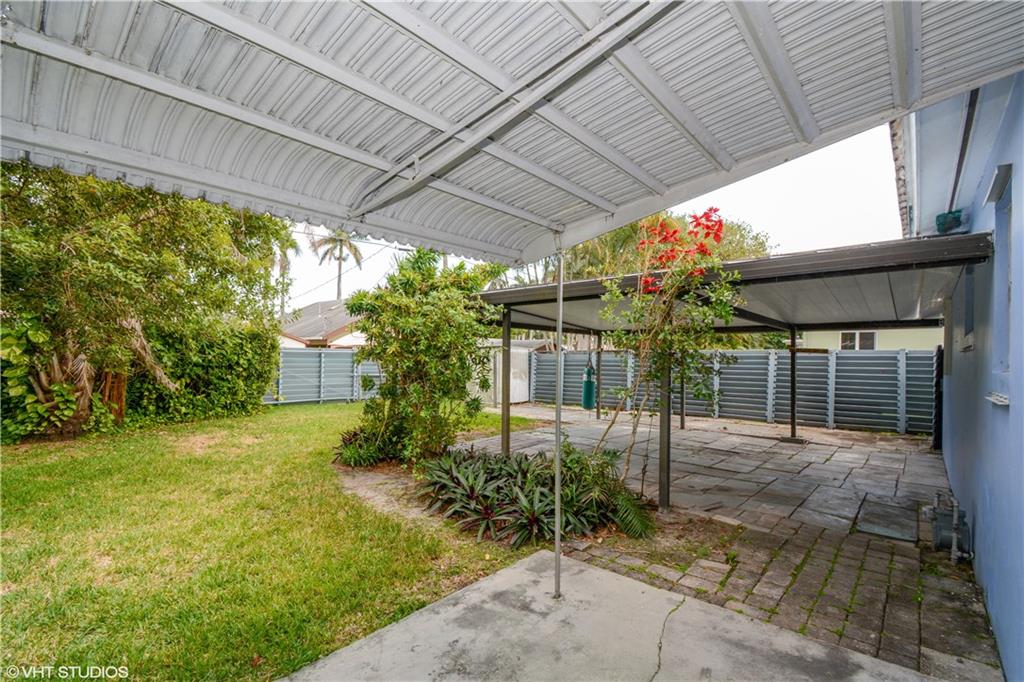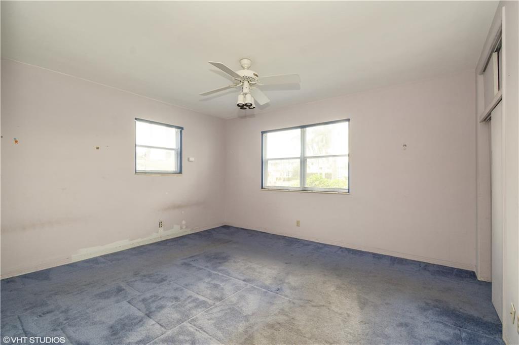 Smell the Ocean! Best Value East of US 1! Less than 2 miles to Ocean! Immaculate, Move in Condition! 2 large bedrooms, 1 car garage, with huge, private fenced backyard with custom gate, lots of trees. Perfect for sunbathing, pets, or parking your boat or camper under the covered parking! House has lots of storage and closets, 18" tile throughout home except carpet in master bedroom. Impact windows on east side of house! Shed in yard. Pride of the owner! Perfect for starter family, snowbird, or retiree!