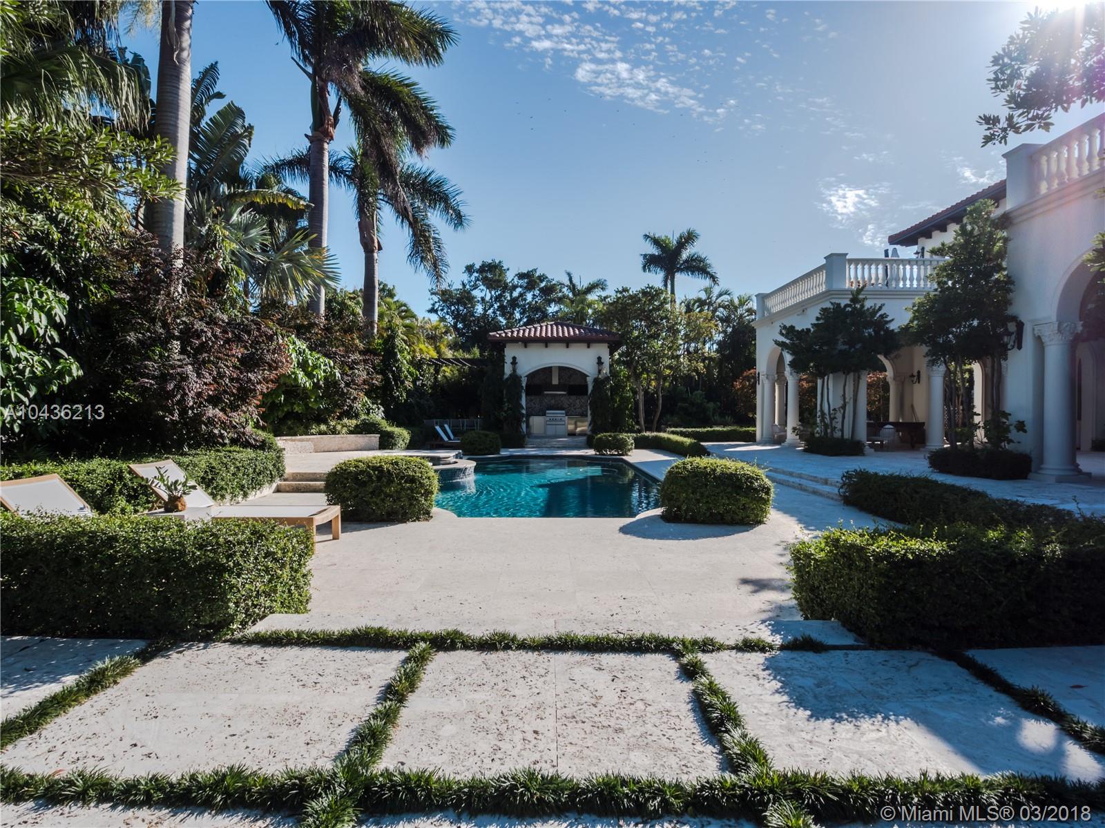 Welcome to living at its finest! This gorgeous estate is move-in-ready and truly has it all. This impressive architectural statement blends modern living and classic luxury. You are greeted in an elegant grand entry. With 8 generous bedrooms, 9 well appointed baths, a chefs kitchen, this home was built to entertain friends and family. Enjoy Miami's beautiful weather on your own private terraces, relax by the pool and spa, or by the impressive courtyard, with its gazebo, BBQ, and bar. Pick up a game of basketball on the lighted court, or if it’s too hot, take it inside and exercise in the home gym. The kids will never get bored on the in ground trampoline or in the playroom! Other amenities include a custom walk in wine room, master bedroom, glamorous media room and 6 formal gardens.