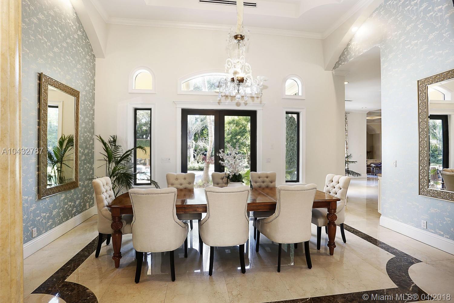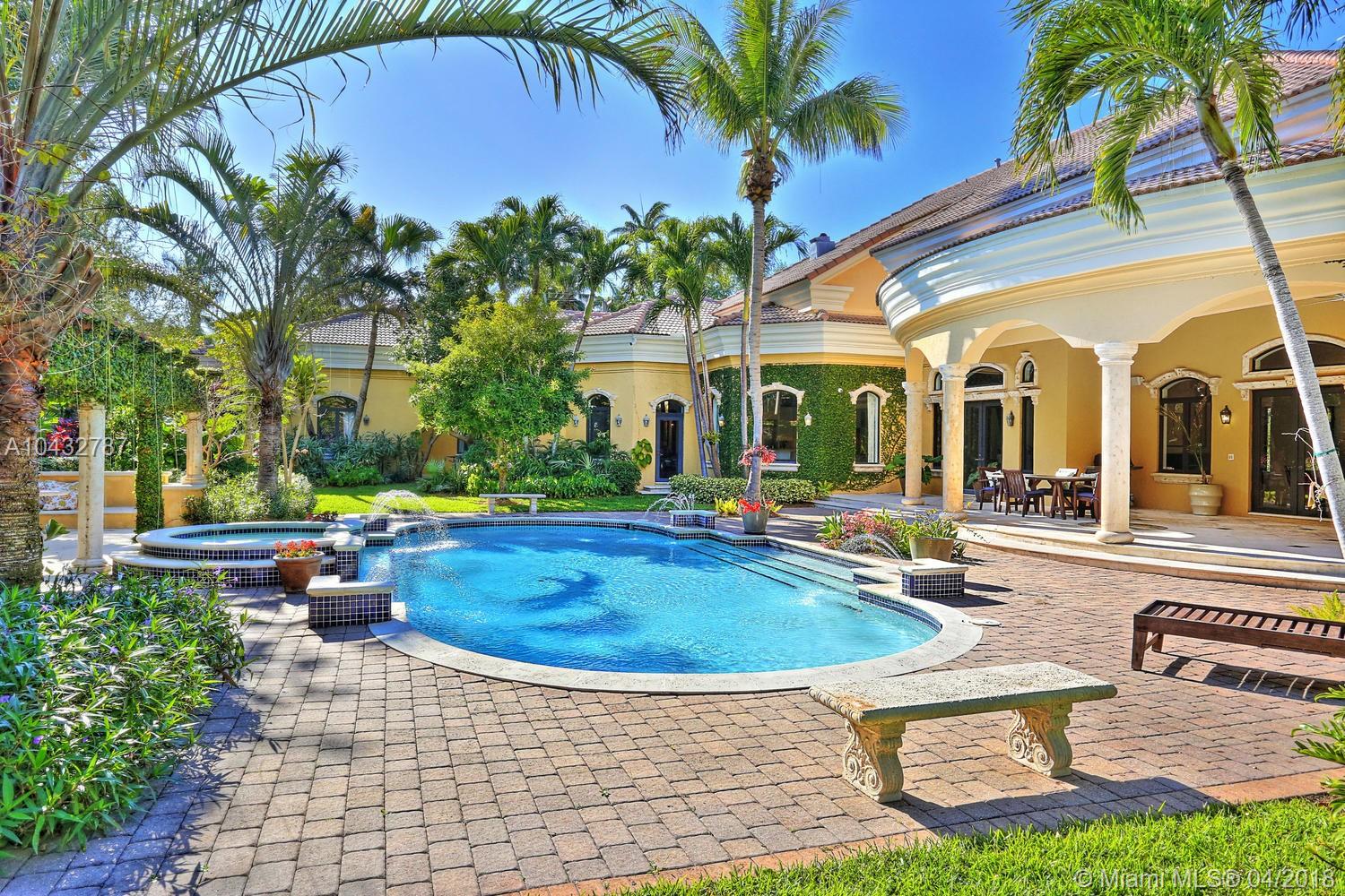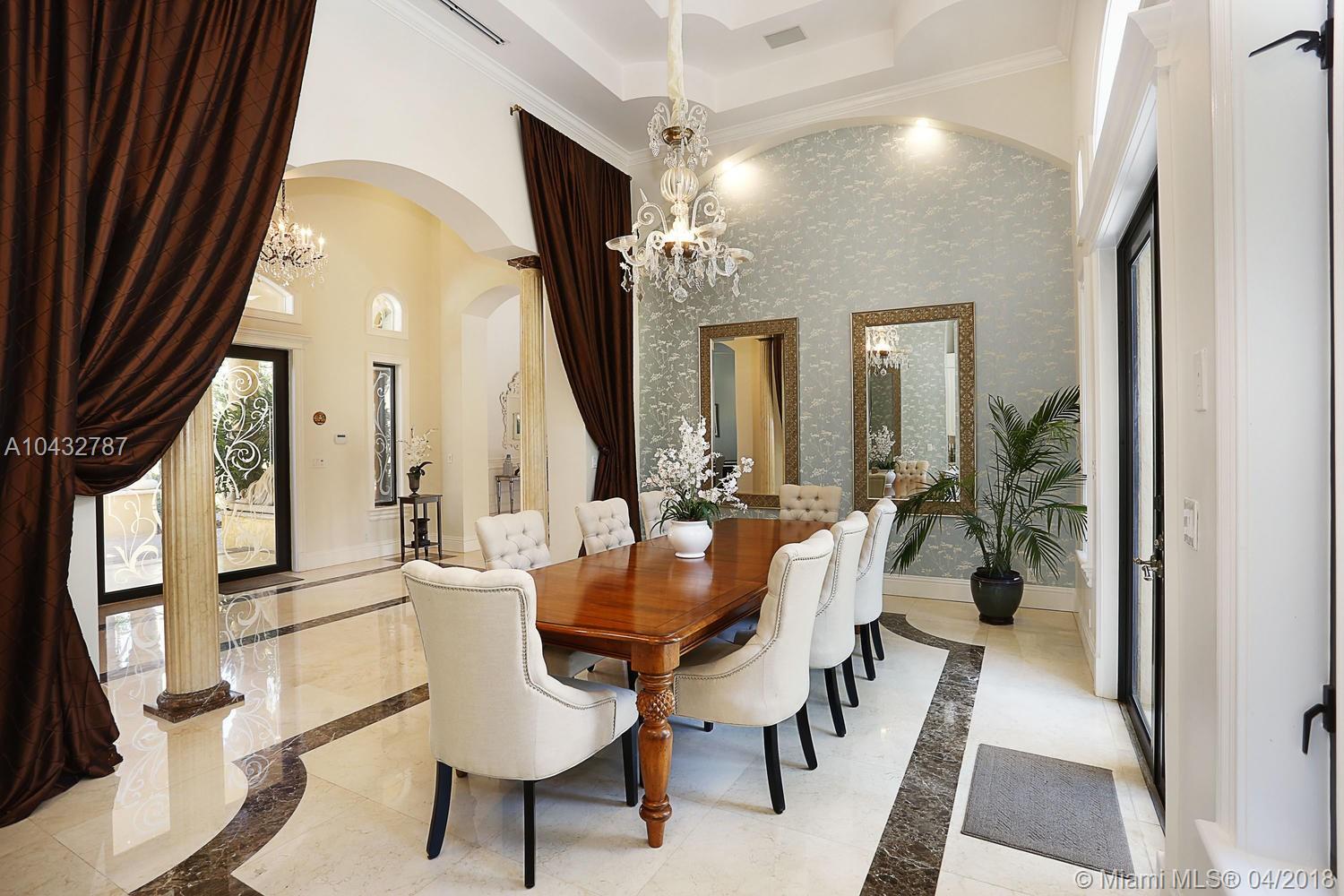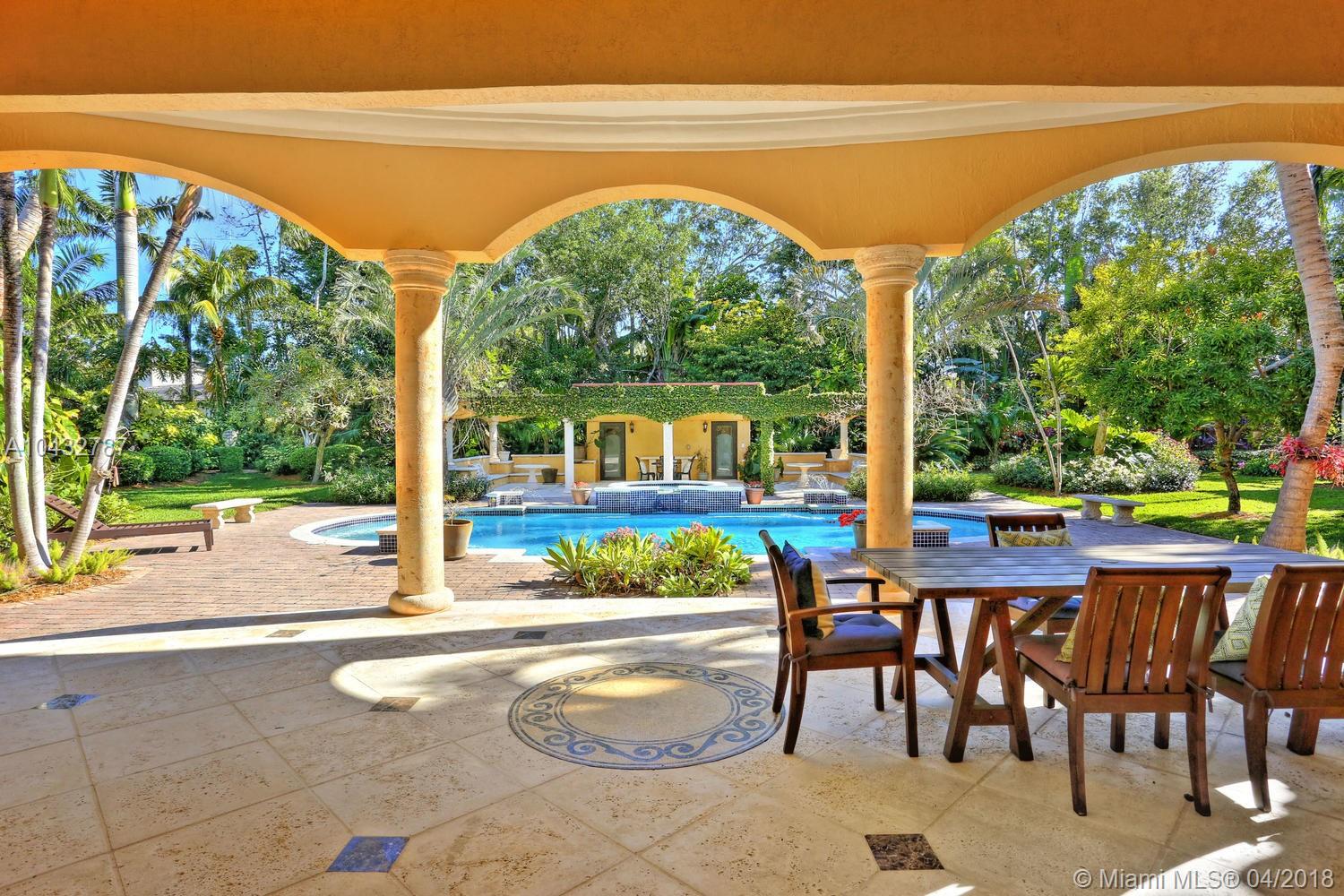 Stunning Pinecrest custom home built with a magnificent arbor setting! All renovated and updated with current and uncompromising quality and finishes. Spectacular entry. Gorgeous livingroom and dining rooms! Hi-volume ceiling throughout! Marble flooring. Hi-impact glass and french doors. Functional and elegant. Lavish master with sitting room and luxurious bath. Sep. children's quarter with playroom/den. All ensuites with open and beautiful vistas! Gourmet chef's dream kitchen with all top of line appliances. Gated entry with portechere! Artful and lovingly manicured garden with rare and exotic tropical plantings! A feast to the eye in every turn! Oversized 45' saline pool with heated spa. Over 6,911 Adj.sf luxury living! Entertaining in grand scale! A place to CALL HOME! A gem!!