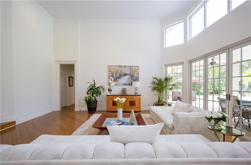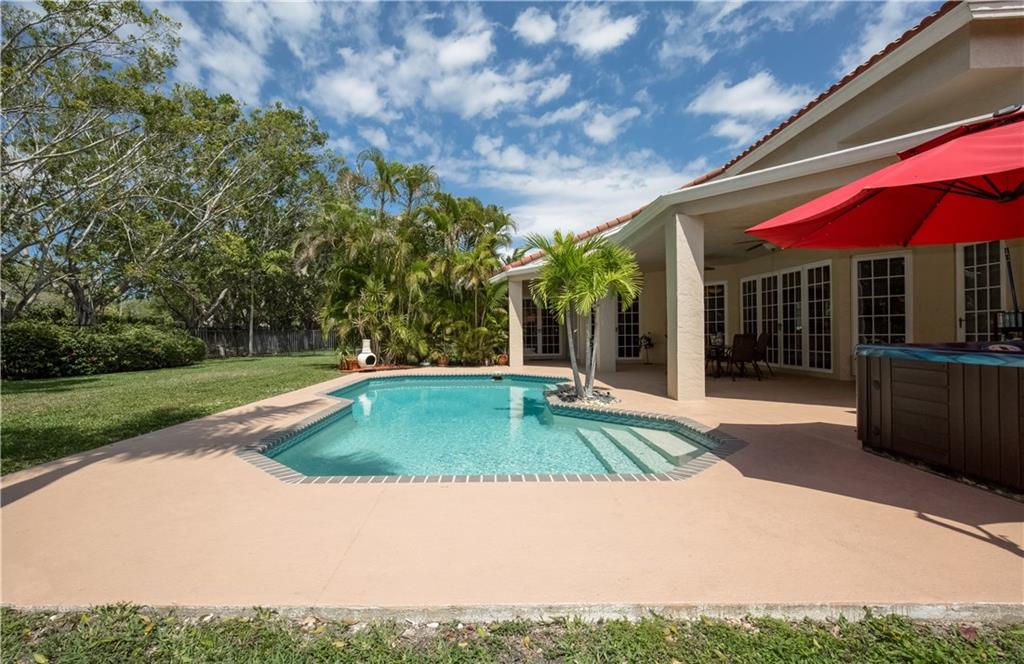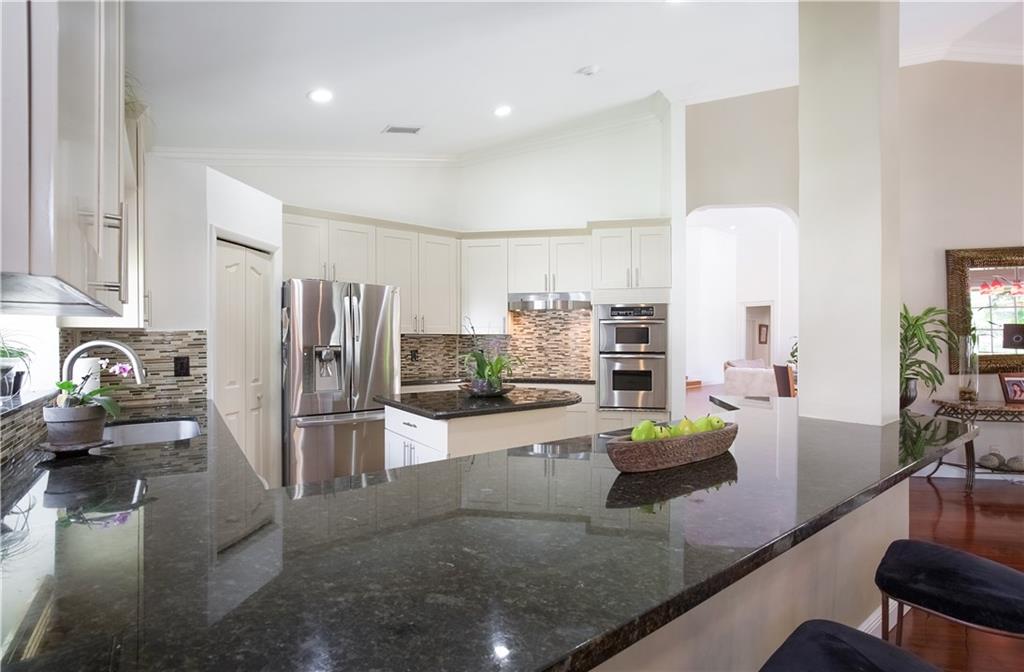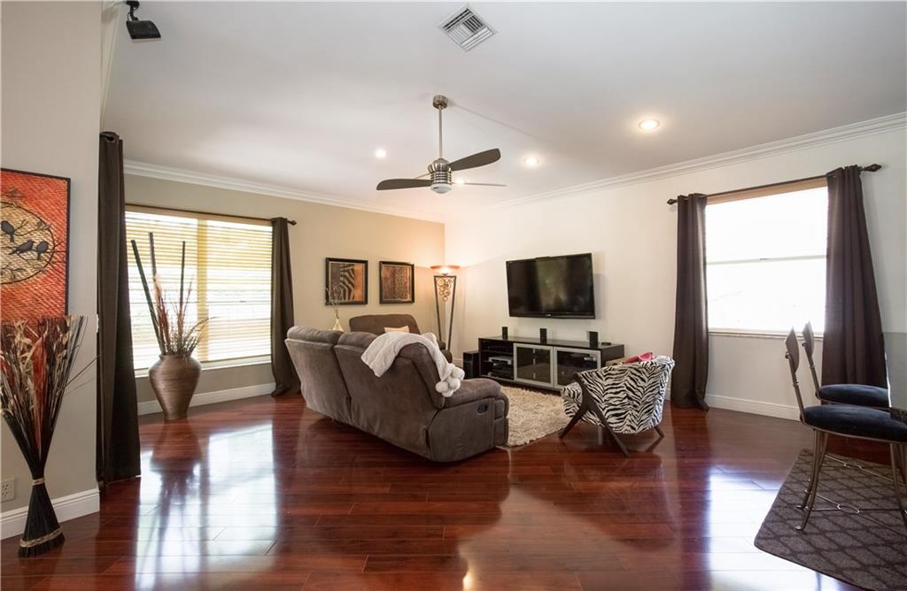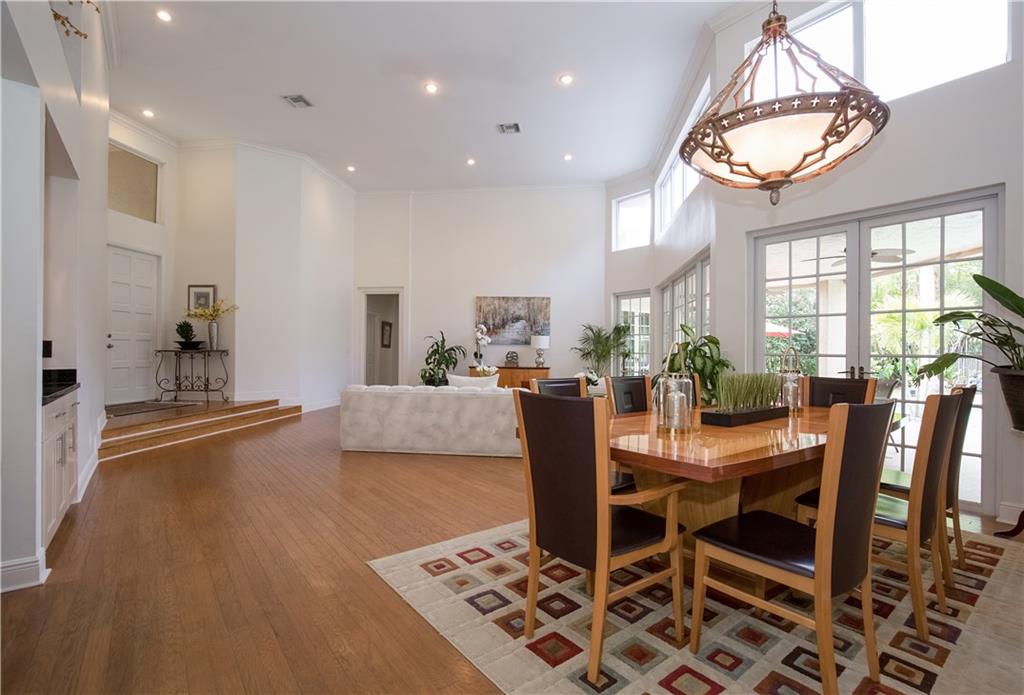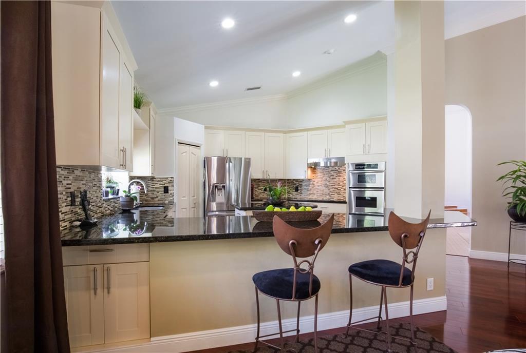 GORGEOUS ONE STORY HOME IN GUARD GATED COMMUNITY! YOU WILL BE AMAZED WITH THE SOARING CEILINGS, BRIGHT & OPEN W/NATURAL LIGHT. GOURMET KITCHEN WITH GRANITE COUNTERTOPS, SS APPLIANCES, CENTER ISLAND & LARGE SNACK BAR. GORGEOUS WOOD FLOORING IN THE MAIN LIVING AREAS. MASTER FEATURES TRAVERTINE FLOORING, UPDATED BATH W/FRAMELESS SHOWER. FRENCH DOORS LEAD OUT TO FENCED IN HUGE BACKYARD W/COVERED SITTING AREA & OVERSIZED SALT WATER POOL. HOME IS LOCATED ON QUIET STREET W/NO THRU TRAFFIC. ROOF IS 5 YEARS OLD.