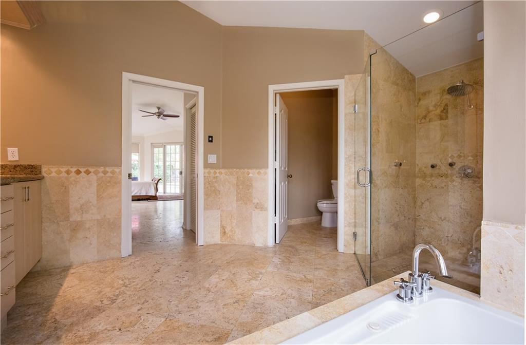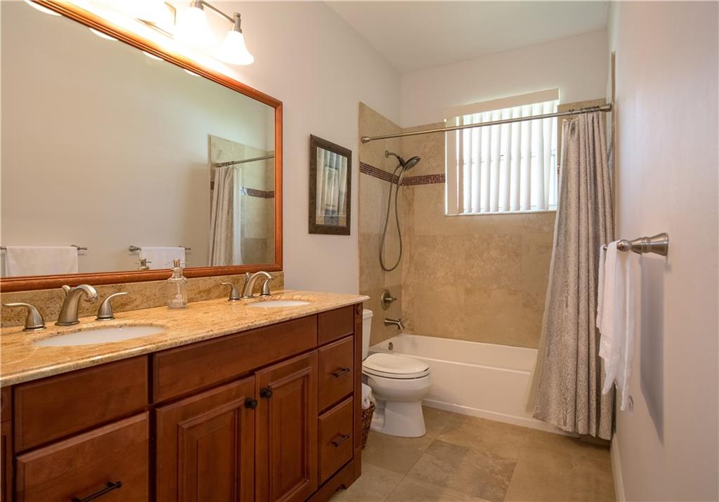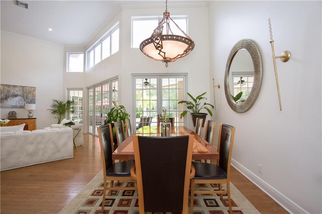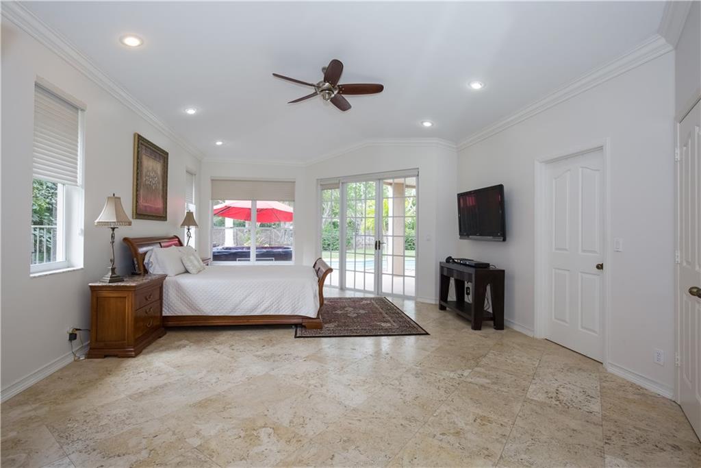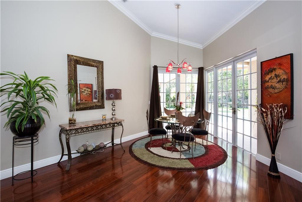 GORGEOUS ONE STORY HOME IN GUARD GATED COMMUNITY! YOU WILL BE AMAZED WITH THE SOARING CEILINGS, BRIGHT & OPEN W/NATURAL LIGHT. GOURMET KITCHEN WITH GRANITE COUNTERTOPS, SS APPLIANCES, CENTER ISLAND & LARGE SNACK BAR. GORGEOUS WOOD FLOORING IN THE MAIN LIVING AREAS. MASTER FEATURES TRAVERTINE FLOORING, UPDATED BATH W/FRAMELESS SHOWER. FRENCH DOORS LEAD OUT TO FENCED IN HUGE BACKYARD W/COVERED SITTING AREA & OVERSIZED SALT WATER POOL. HOME IS LOCATED ON QUIET STREET W/NO THRU TRAFFIC. ROOF IS 5 YEARS OLD.