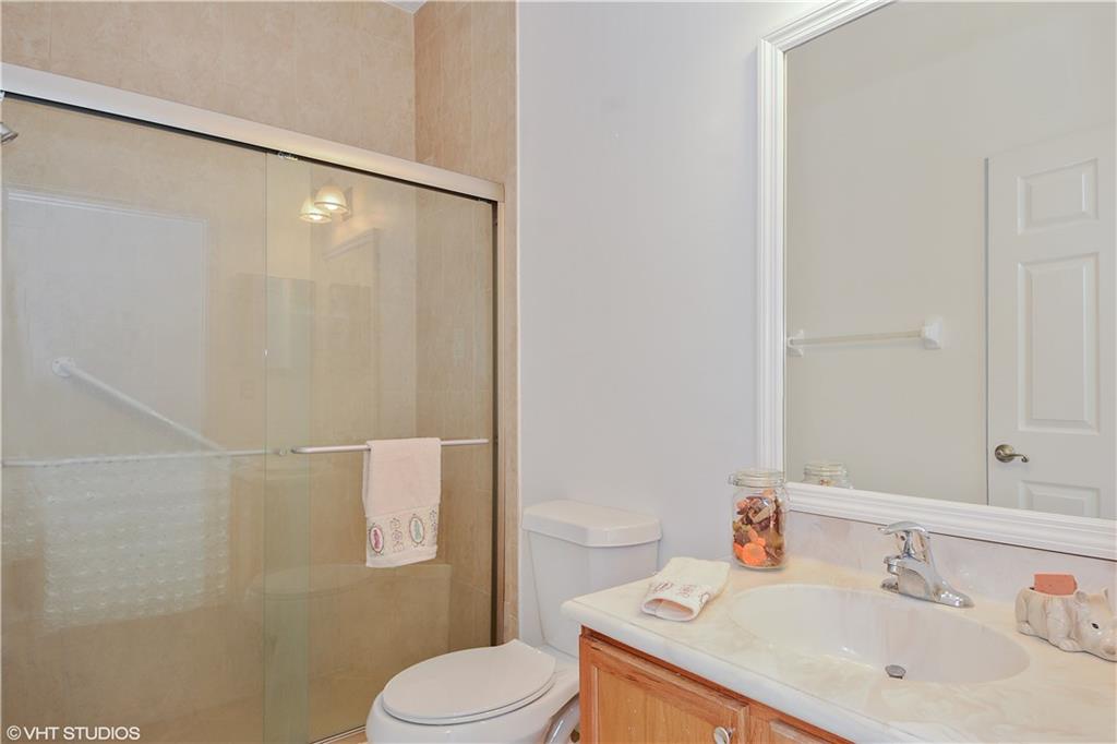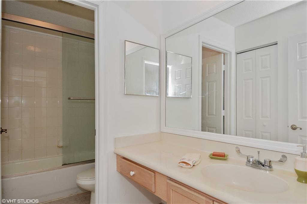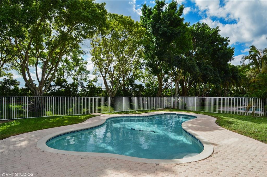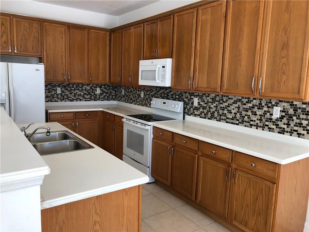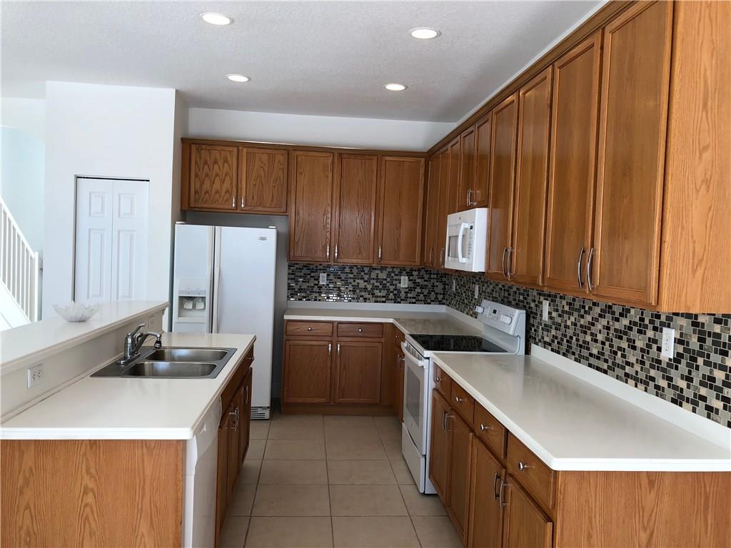 FIVE STAR HOME! This lovely, light, bright & spacious home is located on a quiet, tree-lined street and features: oversized eat-in kitchen w/ 42" refurbished wood cabinets, new appliances, new tile backsplash & corian counters; freshly painted interior; free-form pool & oversized deck; private fenced backyard; storm shutters; tile floors down & wood floors up; one bedroom/full bath downstairs & much,much more. Community pool, clubhouse, gym, Bball, playground & volleyball. All schools are "A" rated.