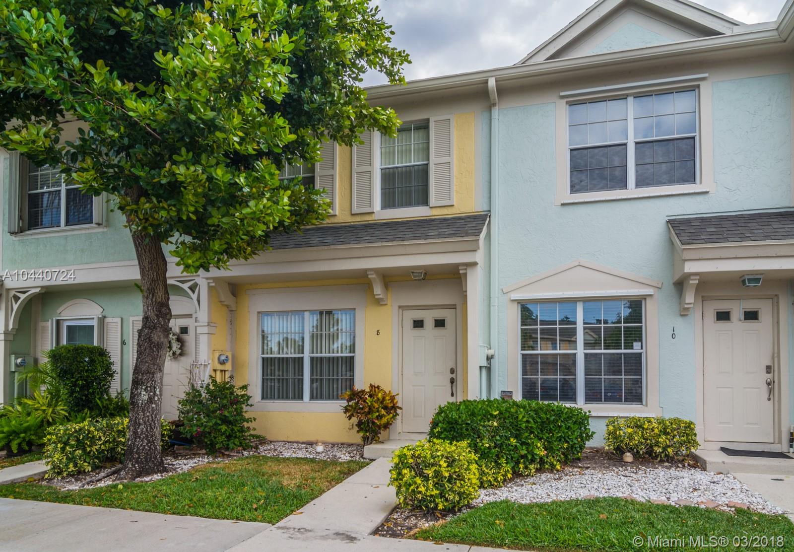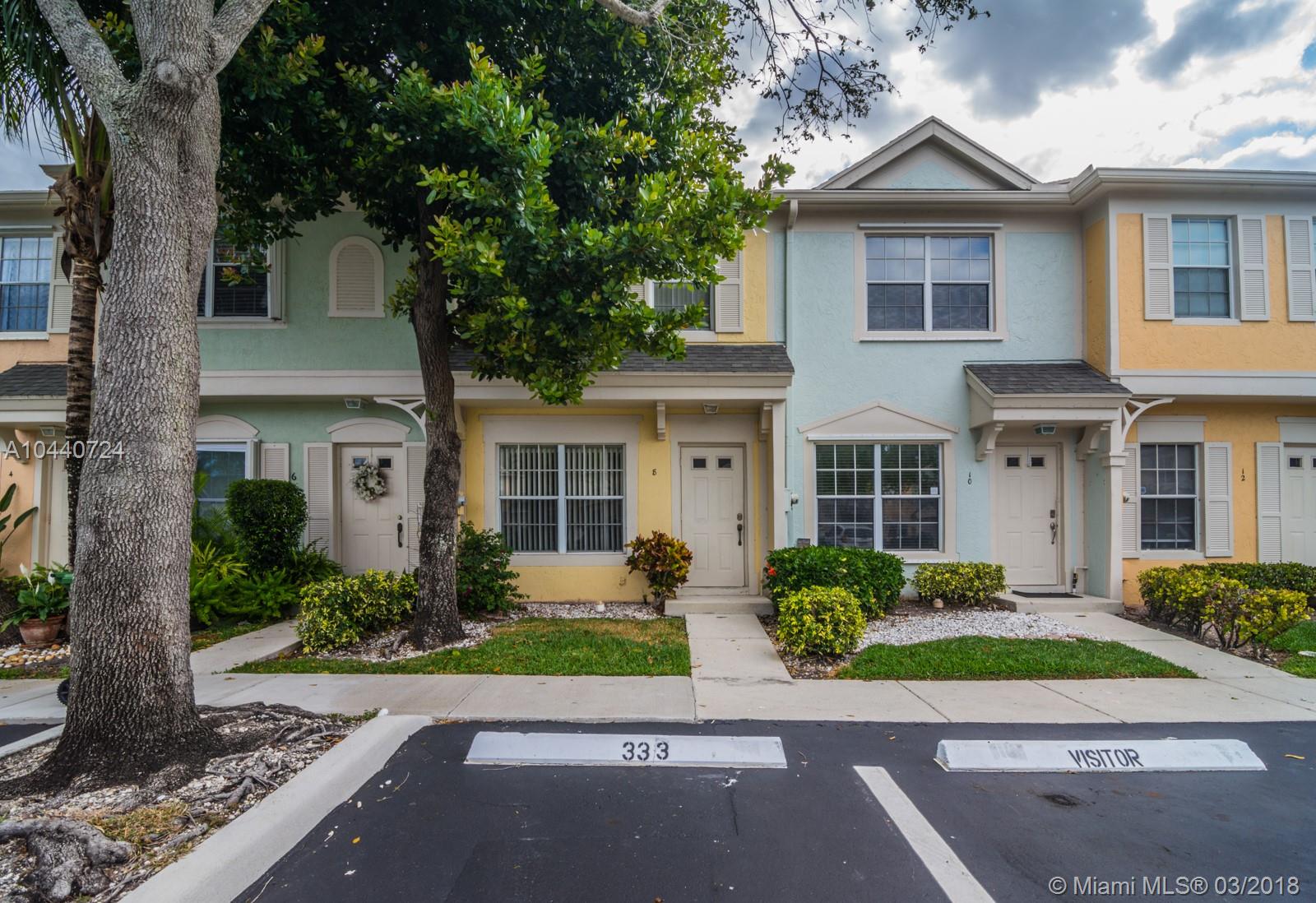 Charming townhouse in Weston's Coconuts community. Upgraded Kitchen with Stainless Steel appliances. Two Master Bedrooms upstairs and a Half Bathroom downstairs! Title on first floor with wood flooring upstairs. Screened patio with extra storage room. Newer a/c and Washer/Dryer in the home. Plenty of parking. Pet friendly community! Great home for both buyers and investors!