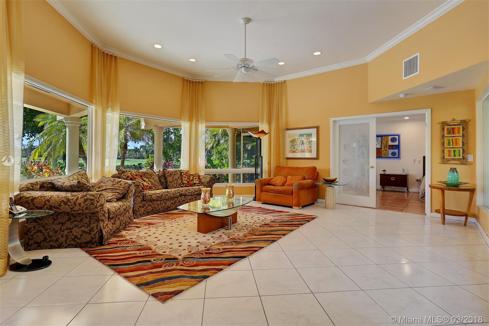 Welcome to true South Florida lifestyle. This spectacular 3/3.5 home on Hole 4 of the Diplomat Golf Course has so many upgrades it’s difficult to even get started. When you arrive you’ll note the original artwork on the electric gate. You’ll pass thru to a restful atrium with waterfall feature. The atrium is surrounded by the formal living room, dining room, kitchen, family room & master suite. From here you can also see thru to the patio/pool area & the golf course beyond. What a view! All exterior doors & windows are hurricane proof (lower insurance rates) & the windows all have thermal tinting for energy efficiency. The beautiful new kitchen features top quality appliances. Master suite includes private patio, steam shower and 13 x 11 walk in closet. Call Ana for full list of features.