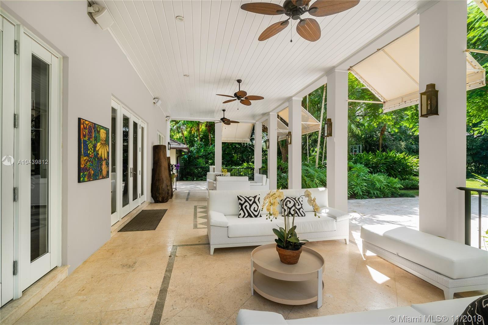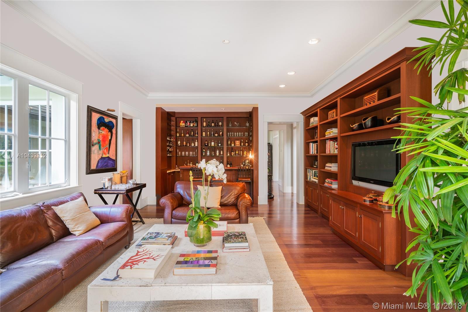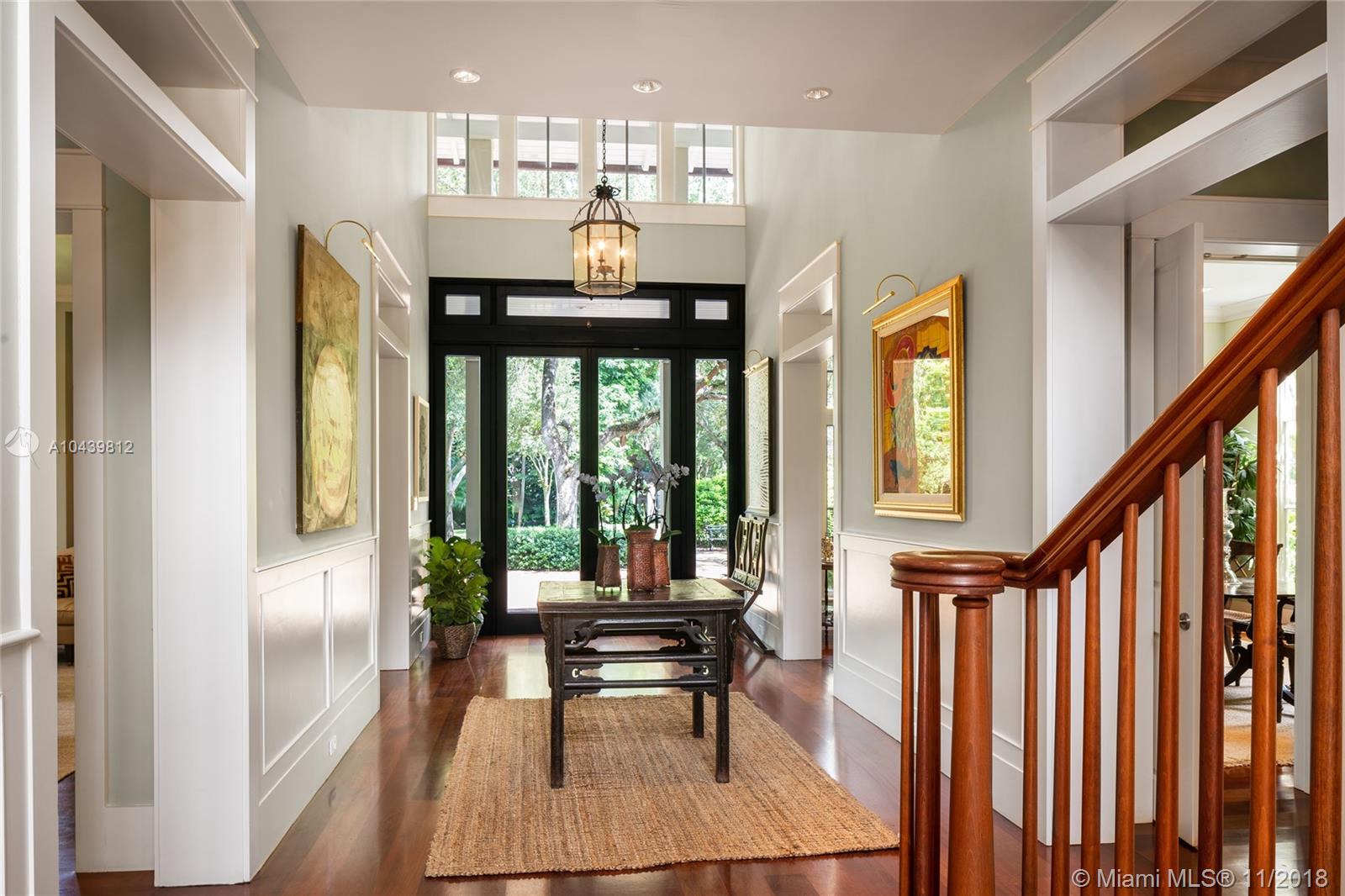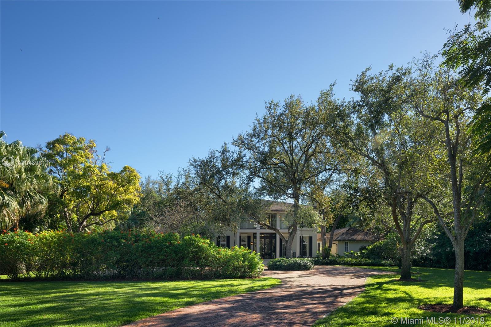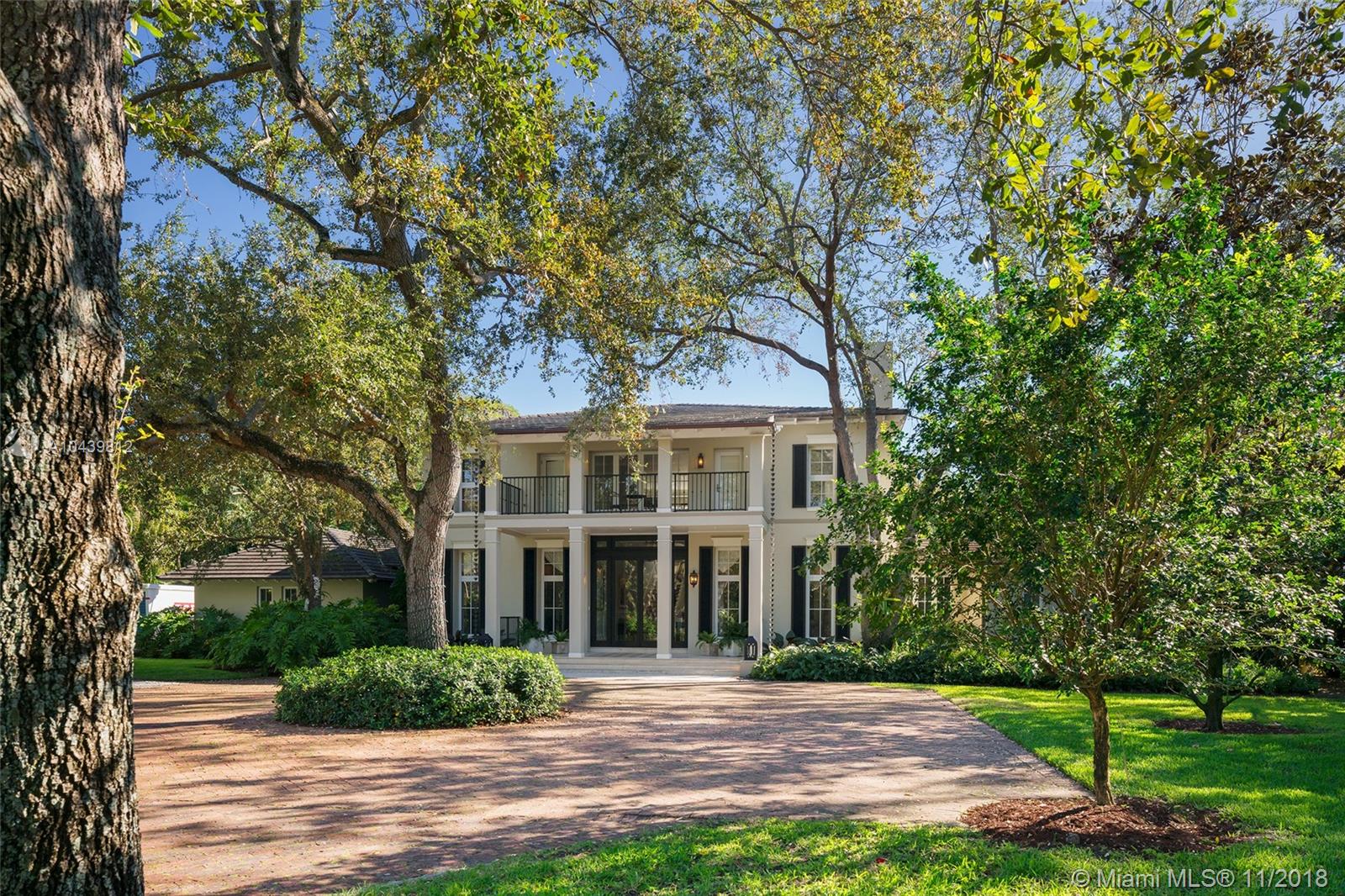 Plantation style estate on over an acre with storybook setting perfect for entertaining! Gated entry with circular driveway, vaulted ceiling foyer entry to formal dining/living rooms. Family room with custom built in and wood bar. Beautiful custom kitchen with SS appliances, walk in pantry and chef’s island. Ground floor master bedroom with sitting room/office. 4 bedrooms & second family room upstairs with balconies overlooking the picture perfect grounds. Expansive backyard with stone floors, lit basketball court, pool, and cabana bath. Includes 2 car garage, impact glass, wood floors throughout handcrafted custom millwork and Lutron lighting.