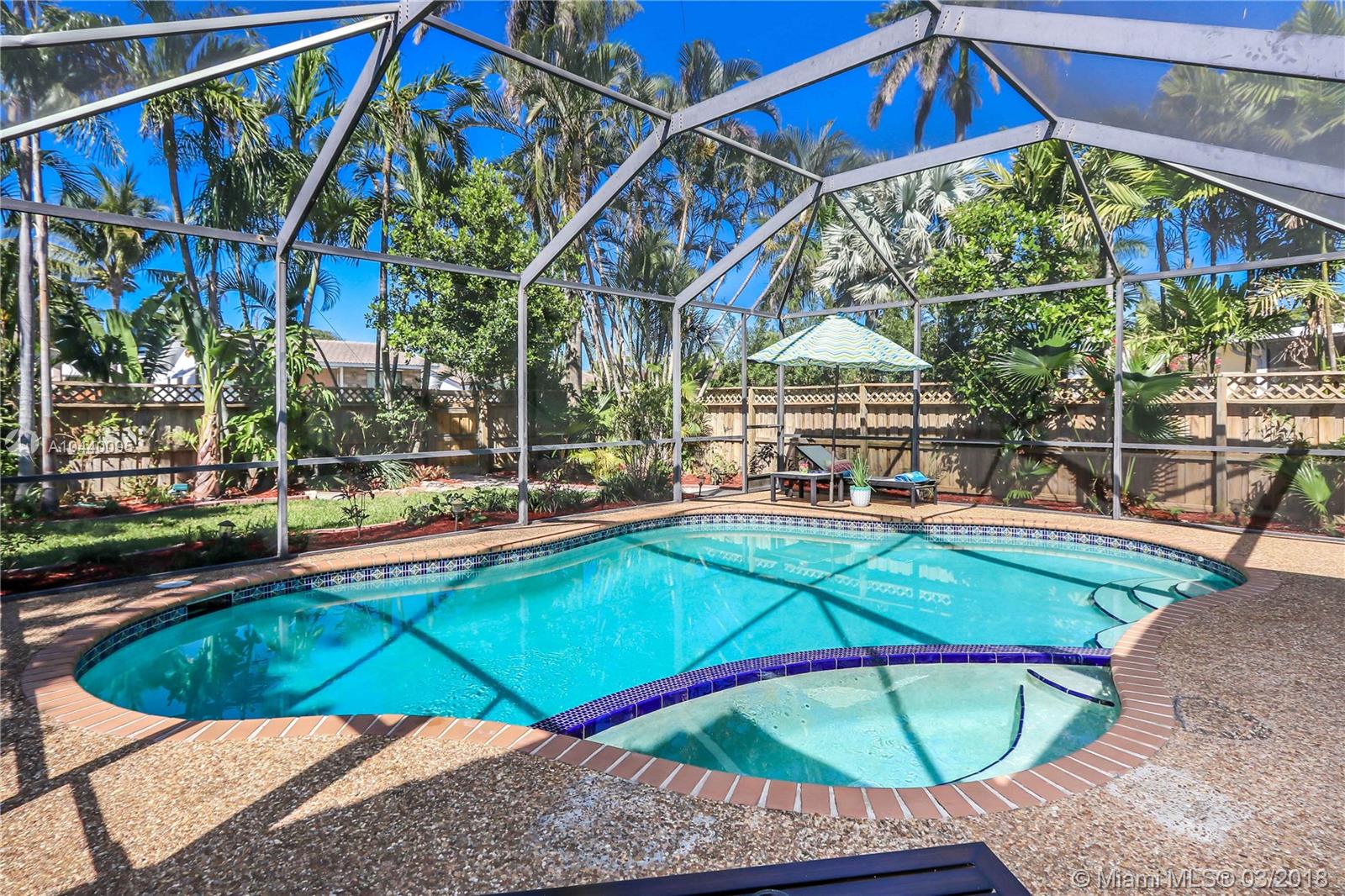 Tropical gem in the heart of Hollywoood Lakes on the prestigious N Northlake Drive surrounded by multi-million dollar homes. Spacious 3bedrms/2bath w/ 1 CG pool home features a split floor plan w/ living room, formal dining room, & Florida room. Freshly painted & move in ready home comes equipped w/ an updated eat in kitchen w/ bar height island dining, granite counter tops plus backsplash, ss appliances, tri bowl sink, new faucet, white cabinets, pantry, a small built in desk area, & a pass through into the living/dining room. Master bath has a beautiful mosaic tile wall, & a double glass door travertine shower. 2nd bath features double sink w/ glass tile backsplash, marble, & spacious linen closet. Nicely landscaped fenced backyard, screened in pool, & Florida room.