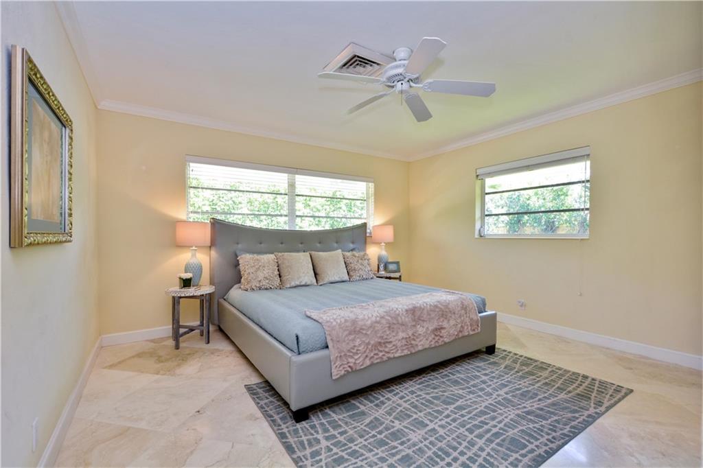 Magnificent remodeled Coral Ridge Country Club courtyard pool home! This 3BR/2.5BA/2CG split floor plan offers two master suites. Modern-designed custom baths & chef's kitchen featuring dual Wolf wall ovens, Subzero & Bosch appliances, beautiful cabinetry & marble finishes. Exquisite marble floors throughout, vaulted ceilings, laundry inside home, impact doors & windows (some with panels). Enjoy the pool & garden views through the walls of glass throughout the home. Lots of natural light on quiet street.