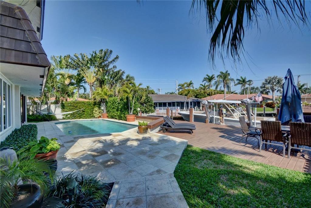 A spectacular custom home in Coral Ridge waterfront with no fixed bridges! New roof 2015/ Natural gas runs through the home/ 2 gas tankless water heaters/100% impact windows & doors/ Plantation shutters/hard wired for wireless /Upgraded marble bathrooms., An oversized master suite & bathroom. A perfectly balanced floor plan allowing formal or casual living, natural light flows throughout! The outdoor entertaining space complete this fine home, with a newer deck & Boat Lift, with a capacity of 15,000 lbs.