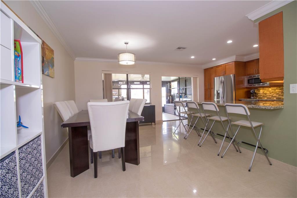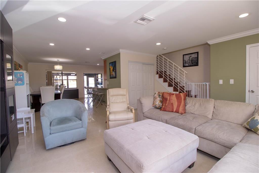 This spacious and fully remodeled townhome incorporates 3 bedrooms and 2.5 baths, with an open floor plan which opens to the main living and dining area. The large remodeled kitchen allows for easy entertaining while providing you with tons of storage space. This generously interior flows effortlessly from the meticulously indoor open space to the glassed screen porch which overlooks a vast body of water, creating a serene and tranquil atmosphere for your evenings. Impact windows, brazilian cherry flo