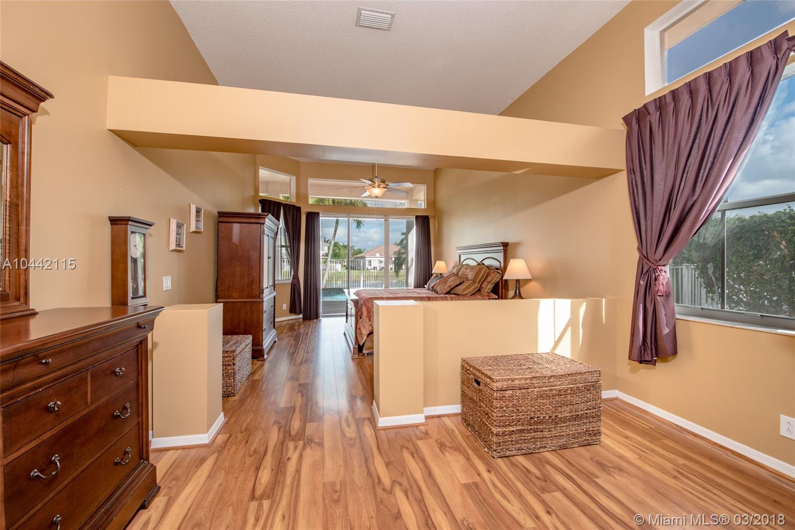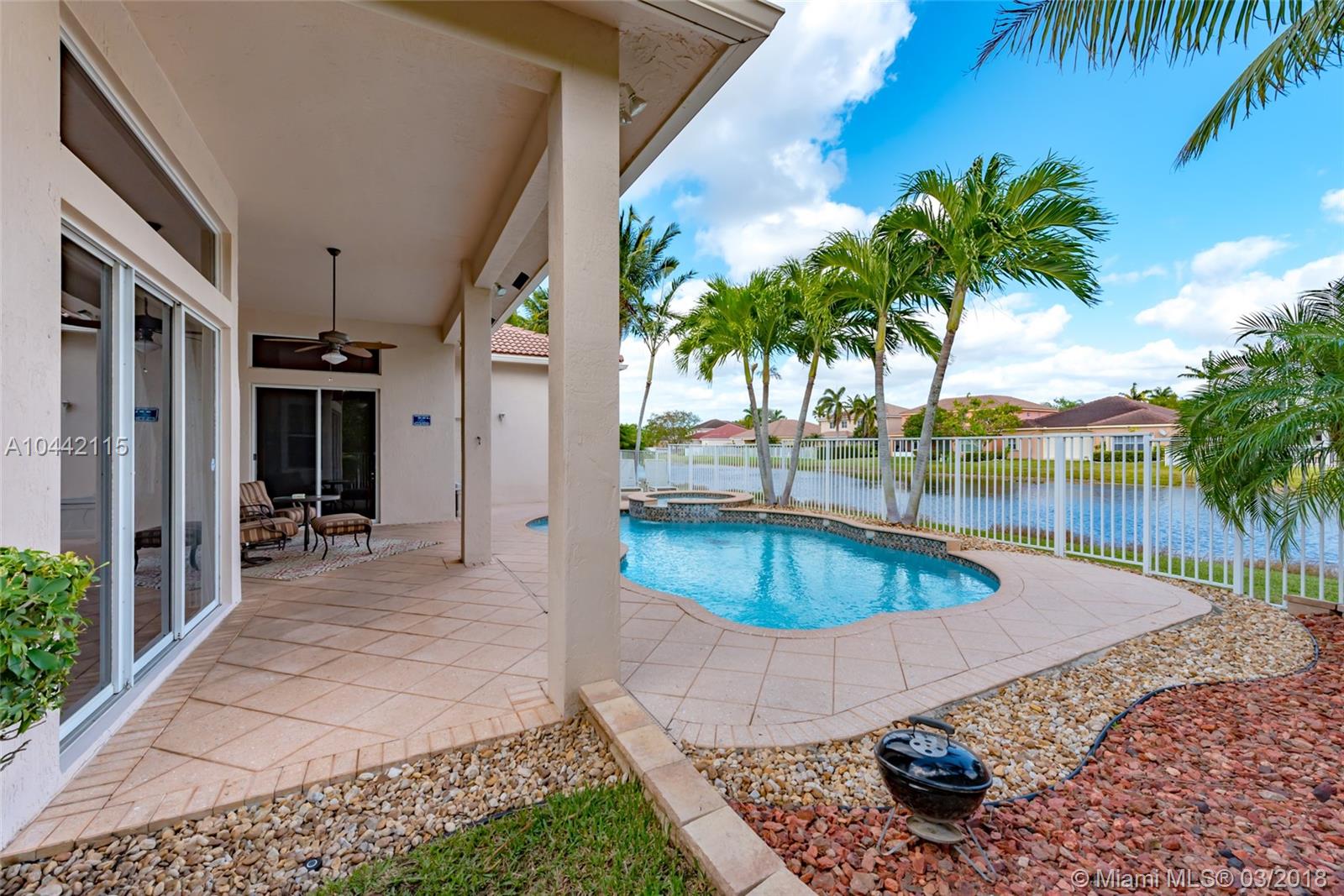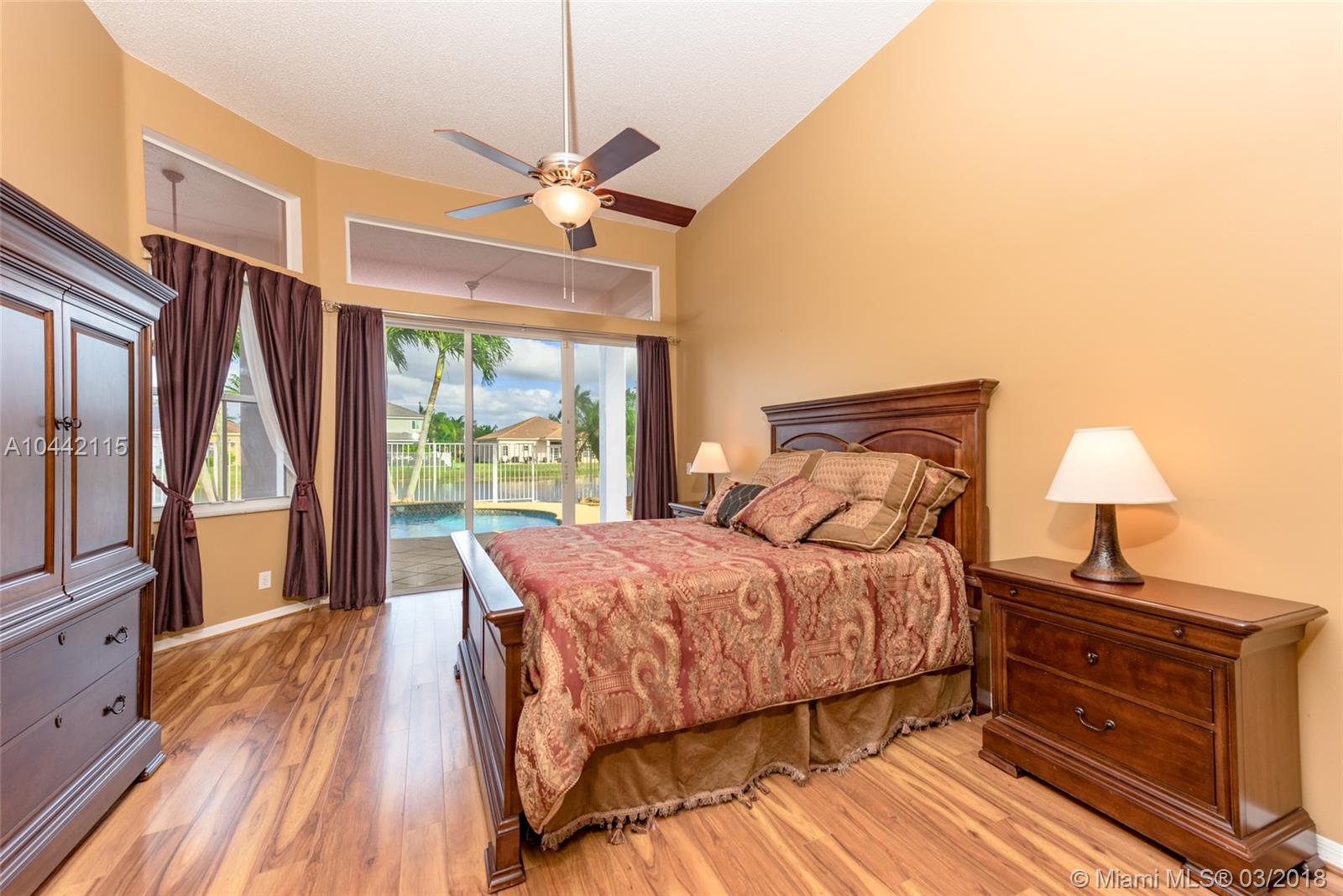 Desirable 1-story home located inside a peaceful and secluded cul-de-sac in the gated community of Savanna. Popular split floor plan model featuring 5 bedrooms and 3.5 bathrooms with a large family room and kitchen overlooking the beautiful covered patio/deck area with a salt water pool and spa surrounded by a serene and open lake view. Oversized master bedroom suite with fully remodeled bathroom, 2 bedrooms with Jack and Jill style bathroom. Located on a Resort Style community with clubhouse, 3 pools, mini-golf, waterpark, soccer, hockey, baseball field and basketball court. A+ rated school district.