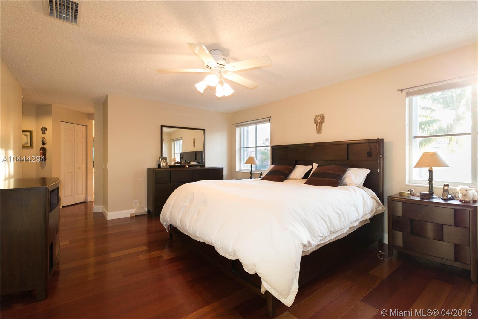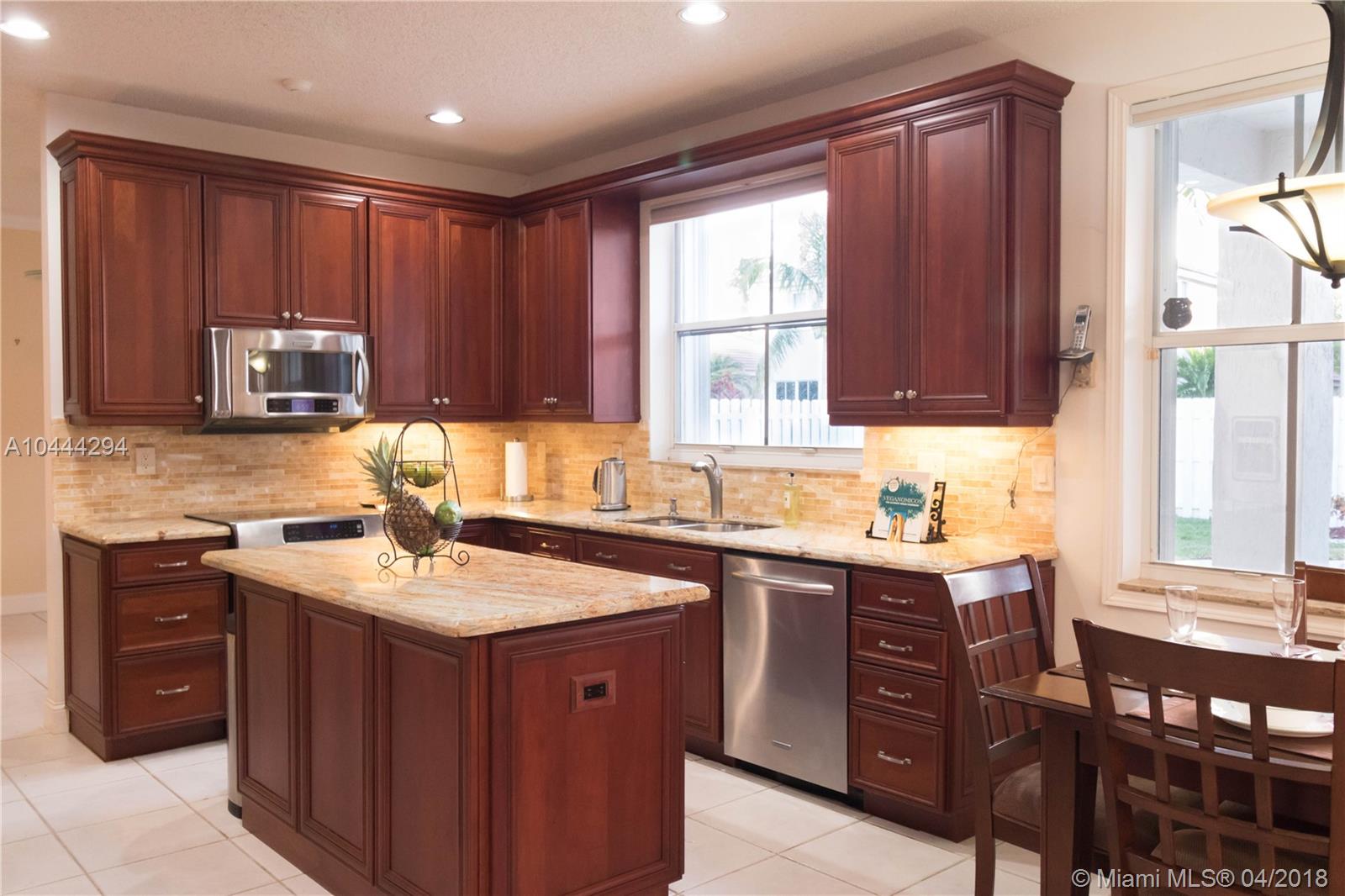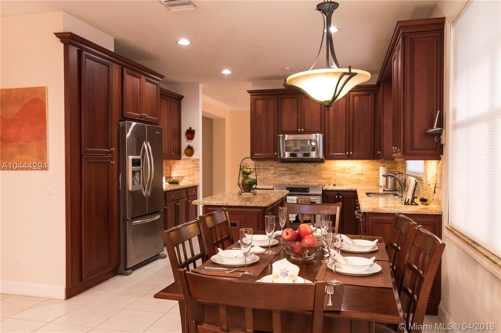 HIGHLY DESIRABLE EMORY MODEL. 5 BEDROOM, 3 BATH, 3 CAR GARAGE ON A CUL-DE-SAC STREET. SPECTACULAR SOLID BRAZILIAN CHERRY WOOD FLOORS ON STAIRS AND ENTIRE UPSTAIRS. CERAMIC TILE THROUGHOUT DOWNSTAIRS. UPDATED KITCHEN WITH BEAUTIFUL GRANITE COUNTER TOPS WITH 42" CHERRY CABINETS AND STAINLESS STEEL APPLIANCES. TWO A/C UNITS ARE NEW. CROWN MOLDINGS THROUGHOUT FIRST FLOOR. ACCORDION SHUTTERS IN ALL WINDOWS. FUNCTIONAL FLOOR PLAN WITH PLENTY OF LIGHT. FAMILY ROOM AND KITCHEN FACING THE POOL AND A SPACIOUS BACKYARD. ONE COMPLETE UPDATED BATH AND BEDROOM DOWNSTAIRS. A RATED SCHOOLS.