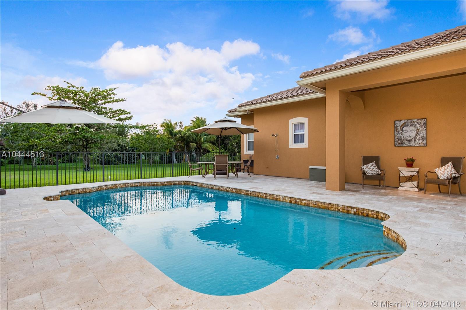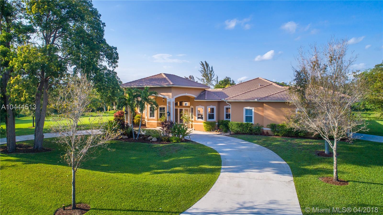 THIS UNIQUE ESTATE, LOCATED IN THE MIDDLE OF DAVIE'S FINEST COMMUNITIES, FEATURES A PORTE COCHERE ENTRANCE, LONG CIRCULAR DRIVEWAY, 5 BEDROOMS, 3.5 BATHS, SIDE-ENTRY GARAGE WITH SUMMER KITCHEN/OUTSIDE BAR AND POOL OVERLOOKING THE GARDEN. THIS RESIDENCE IS SEATED ON 1.25 ACRES WITH OVER 3,000 SQUARE FEET OF PATIO LIVING. THE GOURMET KITCHEN HAS STAINLESS STEEL APPLIANCES, GRANITE COUNTERTOPS AND WOOD CABINETRY. SEPARATE GUEST SUITE HAS ITS OWN ENTRY. SECURITY INCLUDES VIDEO CAMERAS INSIDE AND OUT. A+ SCHOOLS, EASY ACCESS TO HIGHWAYS, 595, 1-75 AND SAWGRASS EXPRESSWAY. ENJOY CITY AMENITIES WHILE LIVING IN A PEACEFUL, RURAL, PARK-LIKE SETTING WITH NO NEIGHBORS CURRENTLY BEHIND YOU.