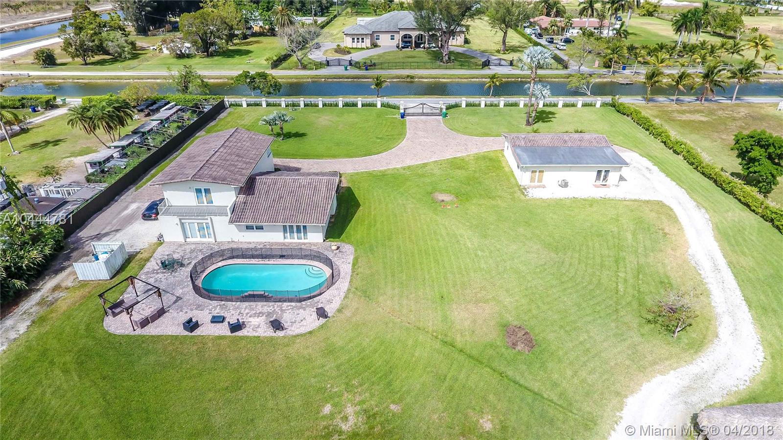 Come see this beautiful, Ranch Style home located in Country Club Ranches. This home features a massive, 2.25 acre lot with plenty of space for build out to your custom taste. Property is completely fenced in giving the buyer complete privacy. Property was upgraded in 2014 & includes impact, windows, new electrical/plumbing, updated flooring, kitchens, sprinkler system, new pool, pavers,etc. This property features two houses. The first home measures roughly 3,300 sq.ft ( 3 bed/3 baths) and the second house measures roughly 1,200 sq.ft (2 beds / 2 baths) (This information is not deemed accurate and/or reliable.). Second structure can be fenced in and rented to generate income for buyer. Endless possibilities with this property... READY TO SELL!