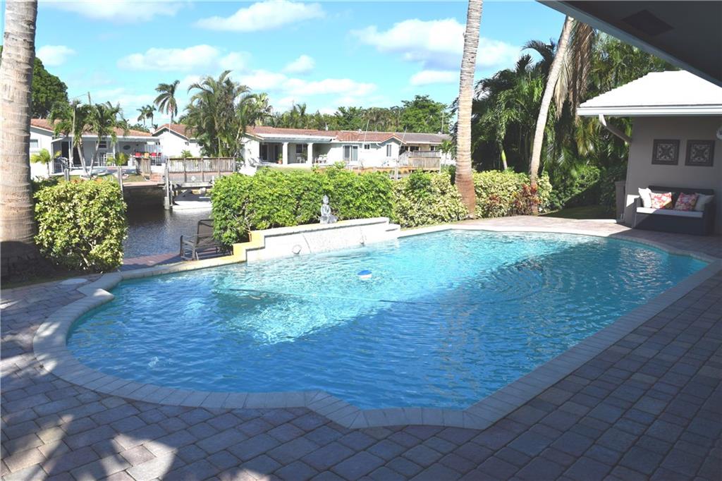 One of the most beautiful homes in Coral Ridge Isles is now for SALE. A 3 bedroom plus a full size studio, waterfront and pool, with travertine marble floors throughout the house just POLISHED!!!!! Granite in kitchen and bathrooms, new A/C, impact windows and doors, fresh paint, upgraded dock and boatlift. A MUST see. Priced below certified appraisal. Don't miss this opportunity!!!!!