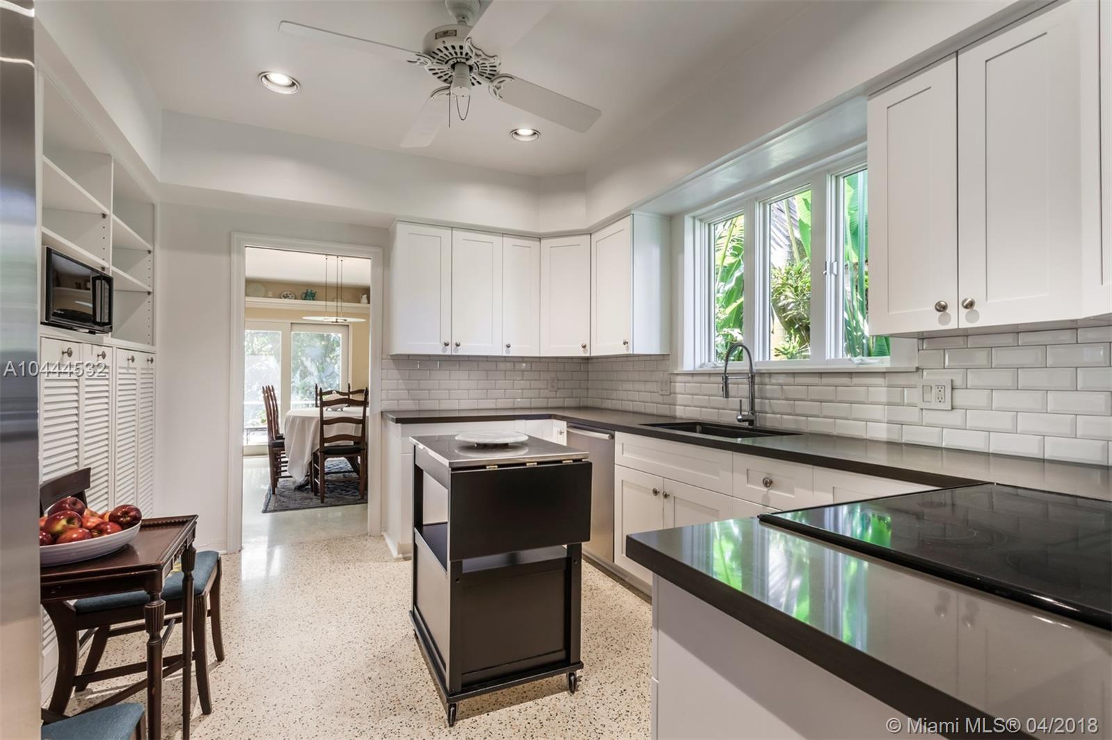 In the premier Italian Village neighborhood of Coral Gables, this 3- bedroom, 2- bath 2,357 sf Mid-century modern home has white terrazzo floors, a new kitchen with quartz countertops and beveled subway tile, and updated baths. A spacious screened-in patio with exquisite Florida Keystone floors leads to the delightful outdoor space featuring magnificent palms. An abundance of natural light and views of the incredible backyard enhances the home’s original charm, designed by one of Coral Gables' earliest and most prolific architects, H. George Fink. Additional features include a brand new roof, 2-car garage, impact-resistant openings, and lots of room for a pool.