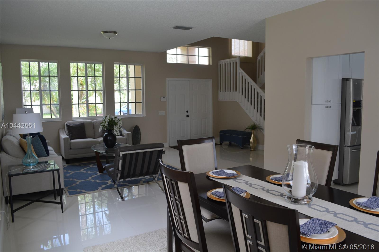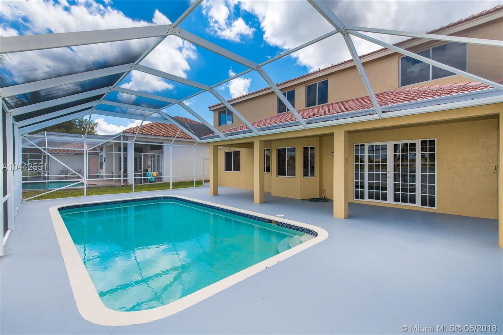 Spectacular and breathtaking lake front spacious 2 story 5/3 with a screened pool in Weston. One of the safest cities in the country. Completely renovated. New kitchen cabinets and bathroom cabinets with soft close doors. Granite countertops. New Samsumg Stainless steel appliances including washer/dryer. New porcelain tile (24x24) throughout the first floor and new carpet upstairs. Huge master bedroom. Open floor plan. LED lighting throughout the entire house. Low HOA and community facilities. Breakfast area with bay window to enjoy the view and lots of light. If top Notch schools and gated communities are a must, this house is for you. Must see!!!