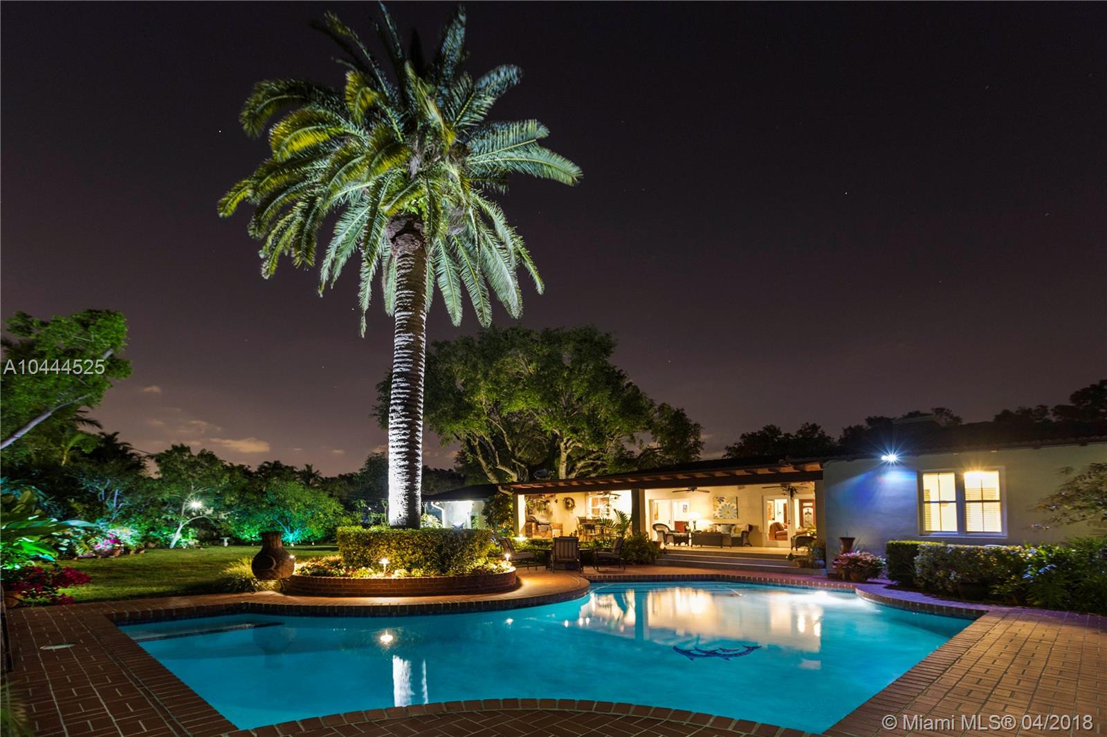 1938 Deco one-story home which sits on an 18,000+ sqft lot with luscious landscaping surrounding it. This property is located in the heart of the Golden Triangle. Immaculate 3-bedroom, 3-bath split-plan. Completely updated with impact windows and doors, a working wood burning fireplace, surround sound system, Thomasville kitchen cabinetry with stainless-steel appliances and granite countertops, 2-car garage, generator and a huge laundry room. With a large covered terrace with built in barbeque, one can relax after a swim in the wonderfully heated pool. In fact, from the terrace, and especially at night, you get the feeling of being in a country home, that lends itself to entertaining.