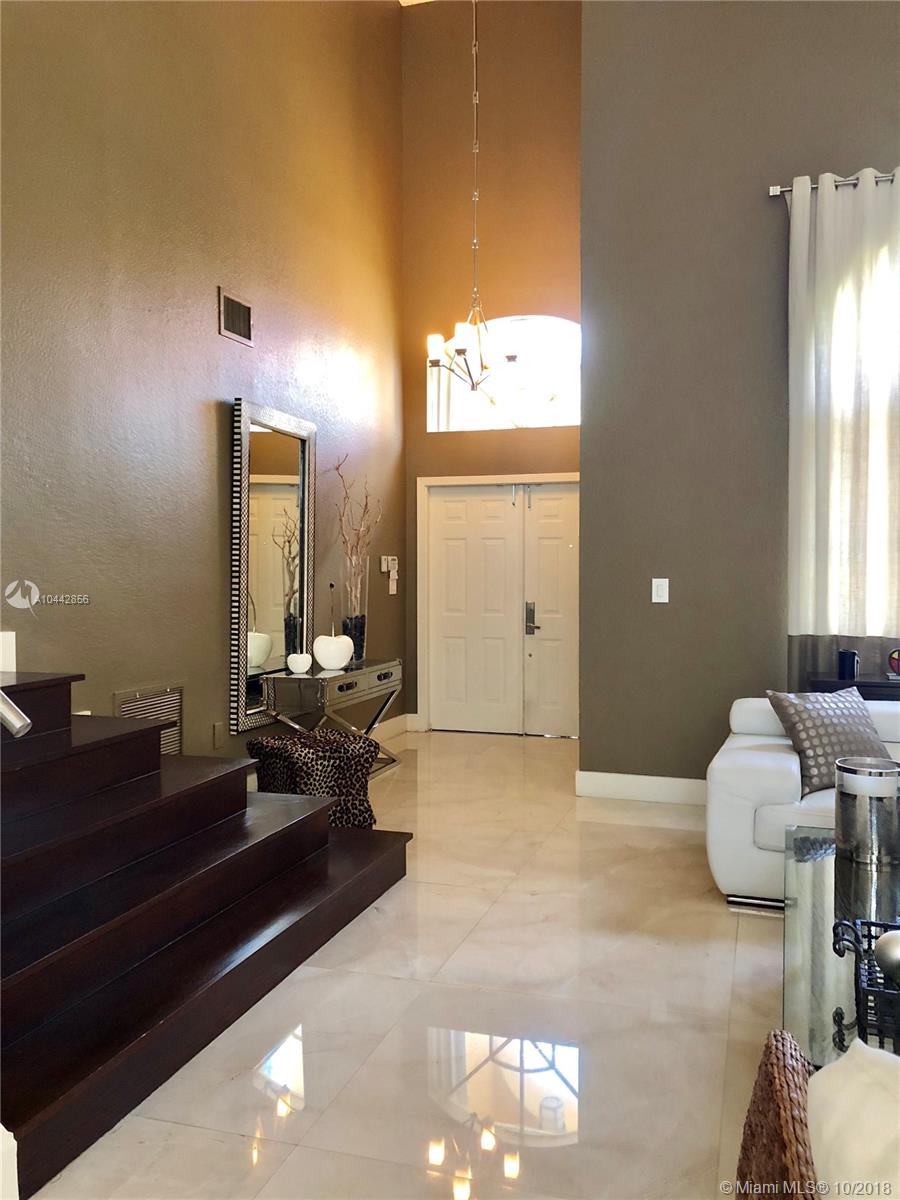 Must see property!Stunning two story house in beautiful Doral Isles. Thousands of dollars in upgrades: large format marvel throughout the first floor, wood throughout the second floor. Spectacular stairs to the second floor with amazing large glass and stainless steel rails. Remodeled walls and structure with linear modern lines. Tinted windows, hurricane shutters. Wire ready for surrounding system in the family. Huge back yard with travertine throughout the whole backyard, beautiful lighted gazebo. Precious landscaping in the front yard and backyard. Two garage spots. Floor of the garage with special coating with closets for everything needed to store.