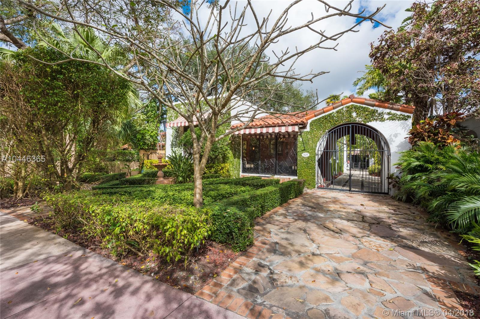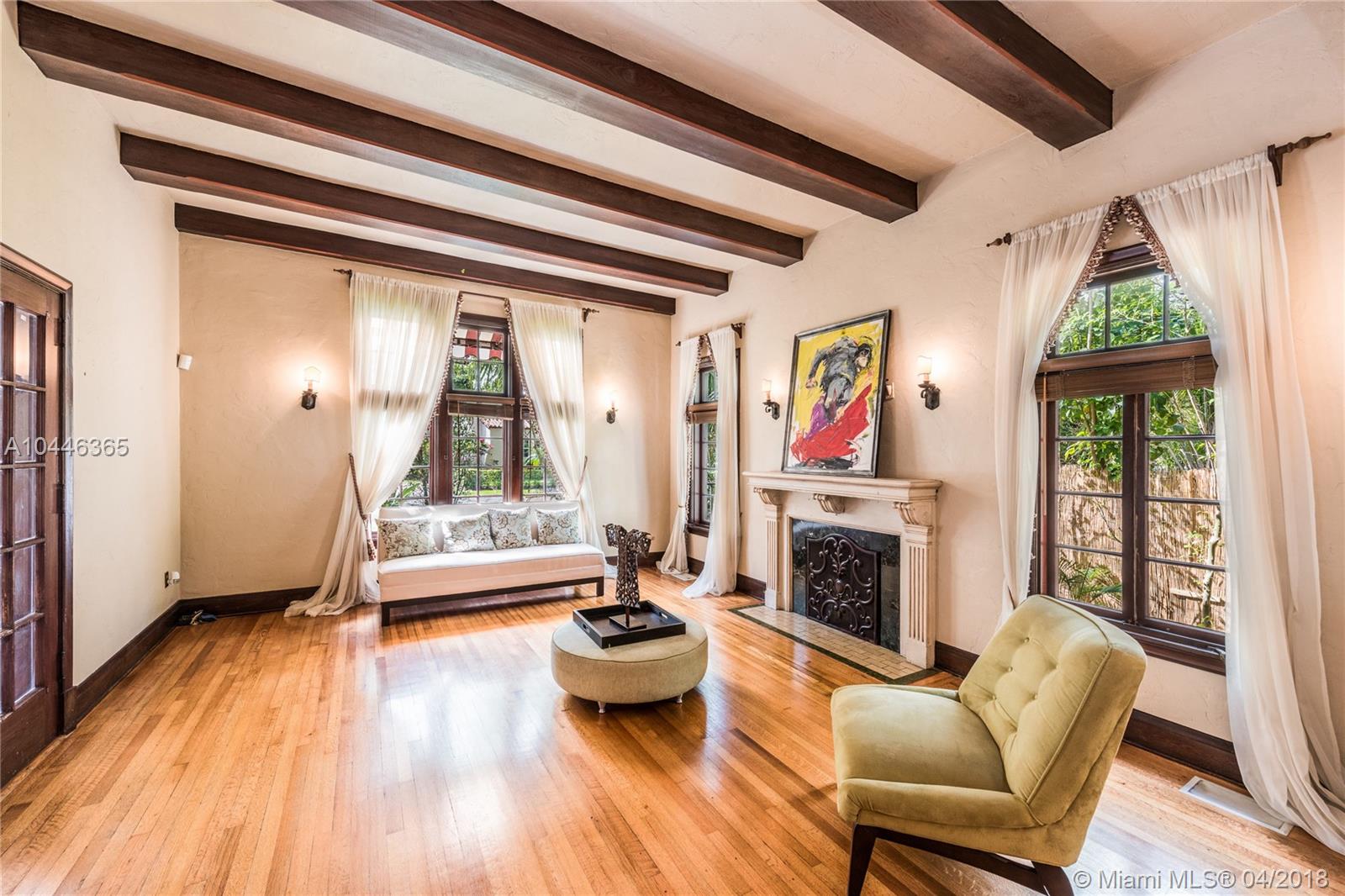 This architecturally unique Spanish home with 2,338 Adj. Sq. Ft. sits on a 7,267 sq. ft. lot and has been lovingly restored. It features 3 bedrooms and 2 bathrooms, formal dining room and eat-in kitchen with stainless steel appliances. The Living Room boasts high, wood beam ceilings and a fireplace. Spacious master bedroom & bath, claw foot tub & bidet. French doors from the kitchen lead to a spacious patio and a charming cottage with bedroom and bath. Impact windows and carport. Electric car charger available on the property. Prime location just blocks to Granada Golf Course & Miracle Mile. Firm Price